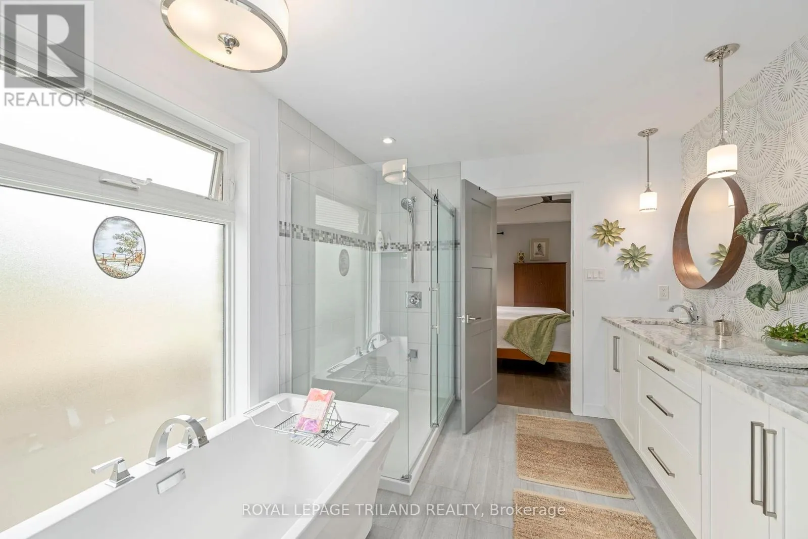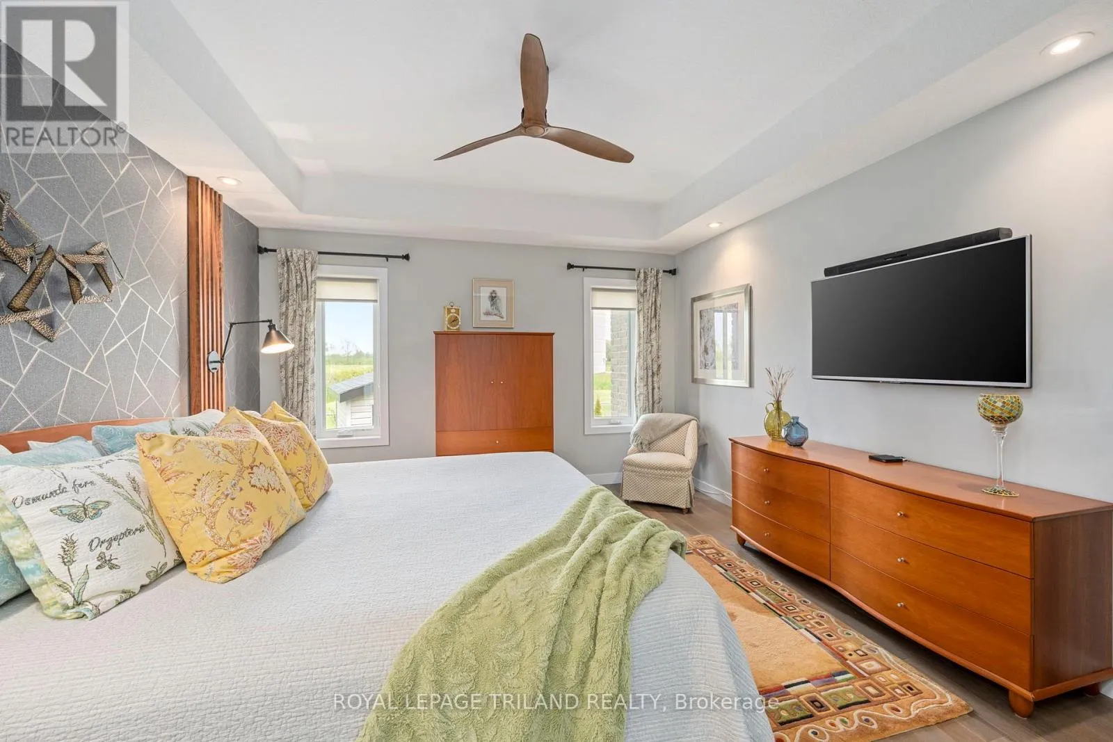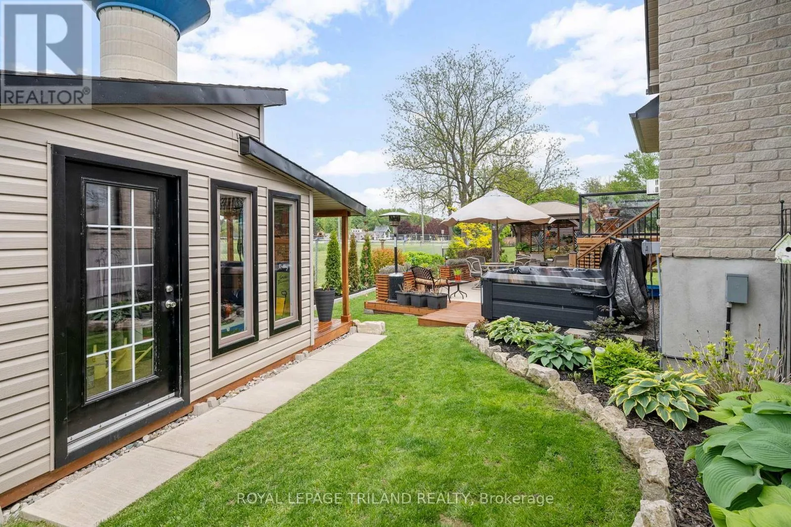 Cross Streets: East x Hill. ** Directions: East Rd to Hill to Larry to Emery. Situated on a quiet street with no rear neighbours, your new home is a 2019 built Don West bungalow that strikes the perfect balance between form and function. With its smart floor plan, carefully selected finishes, and beautifully manicured grounds, this home is anything but ordinary. Inside, the main level features 10 ft ceilings, hardwood flooring throughout, two spacious bedrooms, and a brand new custom-designed kitchen that has barely had time to see a splash of tomato sauce. The open-concept living and dining area is anchored by a stunning gas fireplace, while the primary suite impresses with a five-piece ensuite and an oversized walk-in closet built for real wardrobes, not just seasonal coats and regret purchases. Downstairs, the fully finished lower level offers high ceilings throughout, a large rec room, additional bedroom, full bath, and ample storage perfect for guests, hobbies, or a very lucky teenager. Outside, the attention to detail continues: perfectly curated landscaping including specially selected ornamental trees, a covered rear deck with glass railing, garden shed, and extensive concrete work including triple-wide parking and side steps. The fully fenced yard completes the package, offering privacy without the maintenance headaches. Built just a few years ago and immaculately kept, this home offers turnkey living in one of Port Stanley's most desirable enclaves: close to the lake, yet comfortably tucked away from the noise. (id:27476)