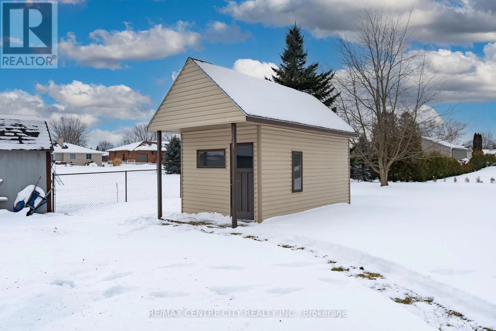 Cross Streets: Elm St. ** Directions: Head south on Centennial Ave from Talbot St. Destination on the right. Set on a rare 0.81 acre lot in St. Thomas' desirable southeast end, this inviting bungalow offers the space, privacy, and ease of living today's buyers crave. Picture slow mornings with coffee in the garden/sunroom, summer evenings hosting friends on the patio, and an expansive backyard with endless possibilities; room for a pool, a basketball court, a large play structure, or simply a hot tub tucked under the stars for winding down at the end of the day. Inside, the home flows effortlessly with a bright, open living and dining area and three comfortable bedrooms on the main floor. Perfect for families wanting everyone close, or downsizers who appreciate the ease of having everything on one level. The finished basement adds flexible space for family time, hobbies, or visiting guests, while large windows throughout fill the home with natural light and connect indoor spaces to the expansive outdoor setting.Outside, the generous yard is complemented by two sheds, including one with a convenient rolling door, ideal for storage, projects, or outdoor gear. With a double-car garage, ample parking, a cozy kitchen, and a low-maintenance brick and cement board exterior, this home is as practical as it is welcoming.Tucked into a quiet, mature neighbourhood close to parks, walking paths, and everyday amenities, yet just minutes to downtown St. Thomas, the 401, and an easy commute to London. This is where city living is done right. (id:27476)