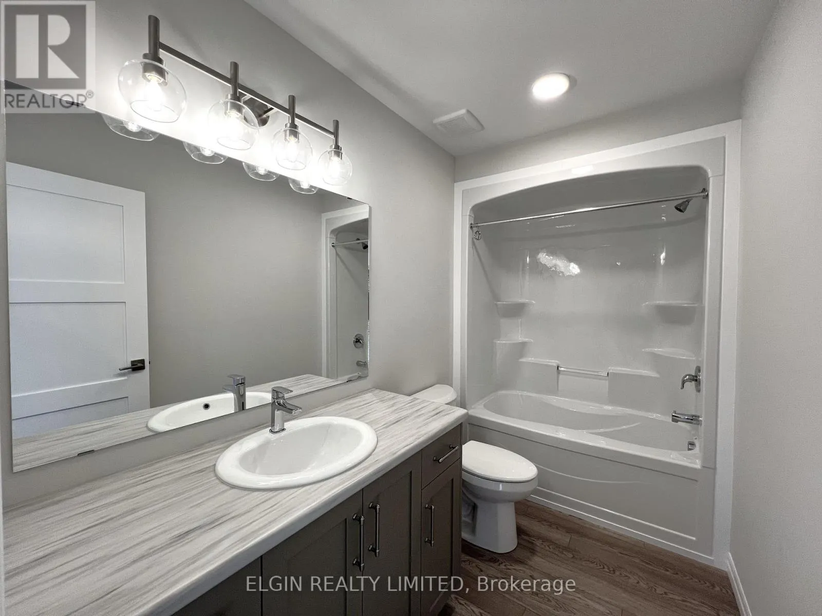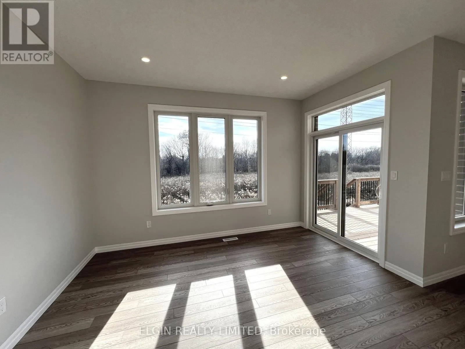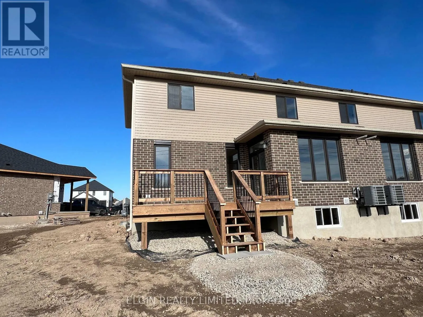 Cross Streets: Wellington Rd & McBain Line. ** Directions: Wellington Rd to McBain Line, right on Watson Cres., left on Freeman Line, left on McBain, right on Horizon Court - builder sign on. Move-in ready, this beautifully designed two-storey semi-detached home by Hayhoe Homes offers 3 bedrooms, 2.5 bathrooms, and an attached single-car garage, set on a pie-shaped lot at the end of a cul-de-sac backing onto green space. The open-concept main floor features 9' ceilings and luxury vinyl plank flooring throughout, highlighted by a designer kitchen with quartz countertops, tile backsplash, cabinet-style pantry, and a large central island that flows seamlessly into the great room and dining area with a patio door leading to a rear deck overlooking the backyard. Upstairs, the spacious primary suite includes a walk-in closet and private 4-piece ensuite with double sinks and a walk-in shower, complemented by two additional bedrooms, a full bath, and a convenient second-floor laundry room. The unfinished basement offers excellent development potential for a future family room, additional bedroom, and bathroom. Additional highlights include a covered front porch, central air conditioning, HRV system, Tarion New Home Warranty, and numerous upgrades throughout. Located in the sought-after Lynhurst community, just minutes to London and the amenities of St. Thomas. Taxes to be assessed. (id:27476)
