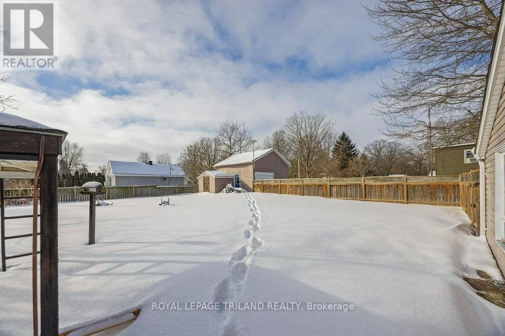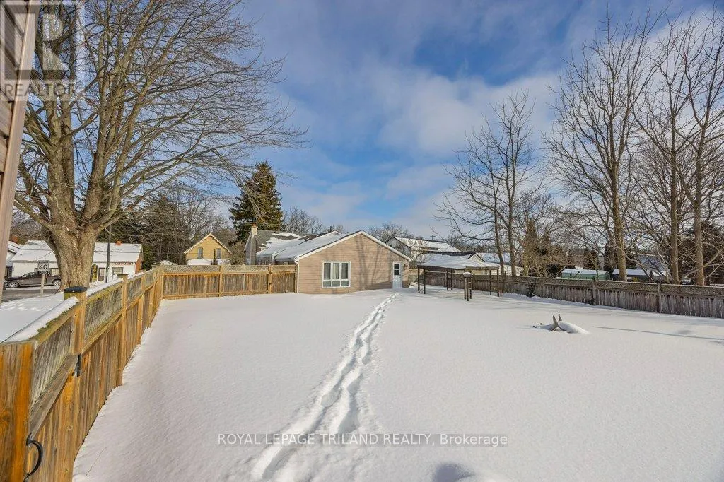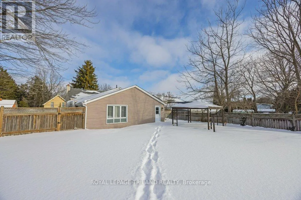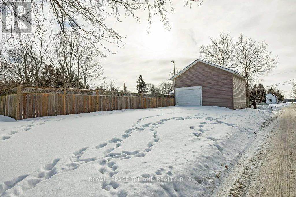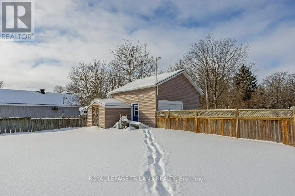 Cross Streets: Quaker Road. ** Directions: South on Quaker Rd to Sparta Line, turn right, property on Southside. Come live in the quaint historical Sparta. This 1.5 storey home with a detached garage sits on a large corner lot. Main level entails a large living room with a gas fireplace, eat-in kitchen, large primary bedroom, second bedroom (this has floor access to the part basement and on demand hot water heater is in the closet), updated 4pc bathroom, laundry area and a mudroom with access to the rear yard, patio area, gazebo sitting on a deck and fully fenced rear yard. Moving to the second floor is a very large third bedroom. Some updates over the years are: siding, fascia, eavestroughs, front door, some windows, recently most of the interior freshly painted. Parking and access to the garage is off Hiram Smith Lane. Great retirement or starter home! A pleasure to show! (id:27476)