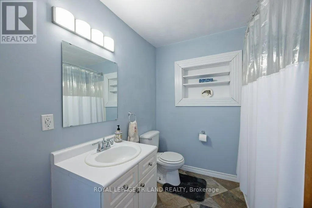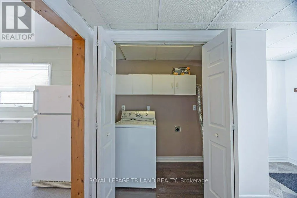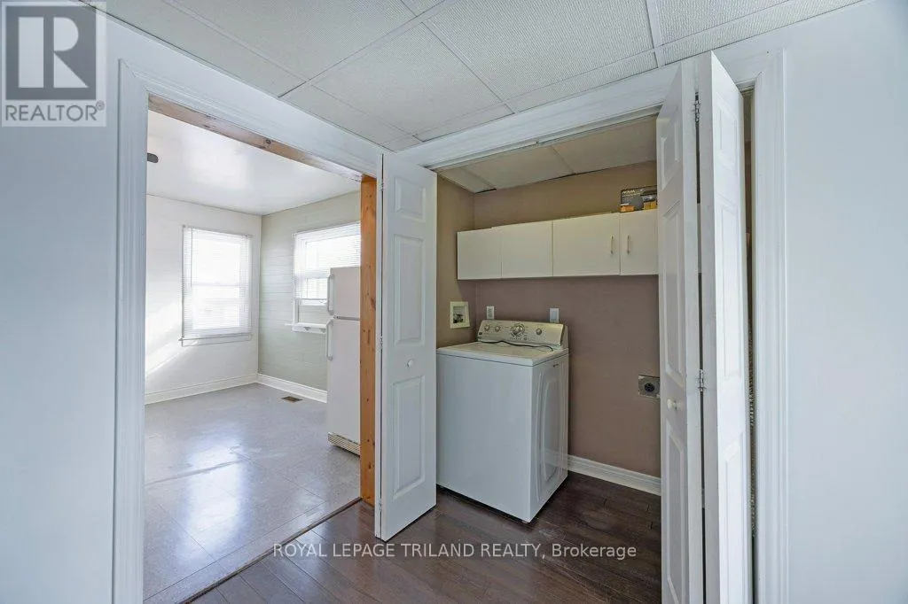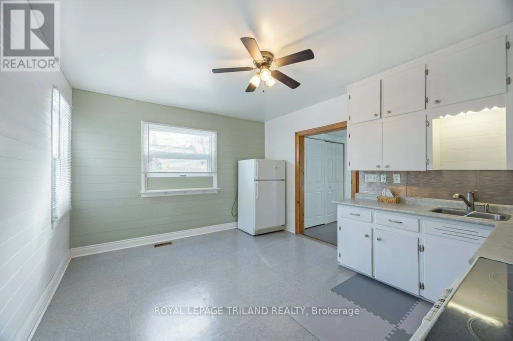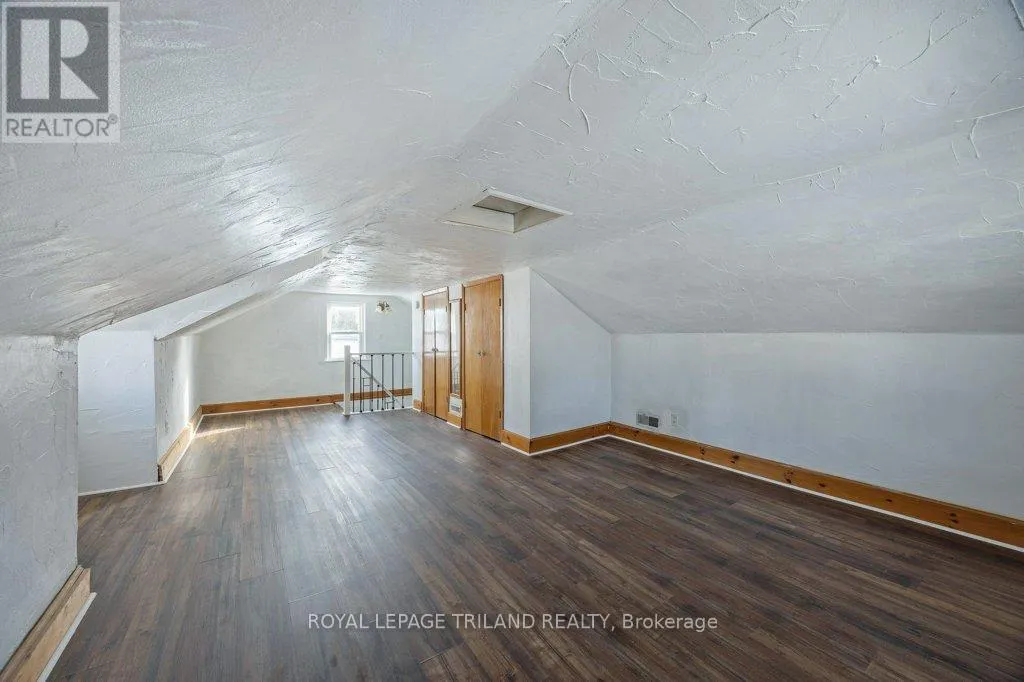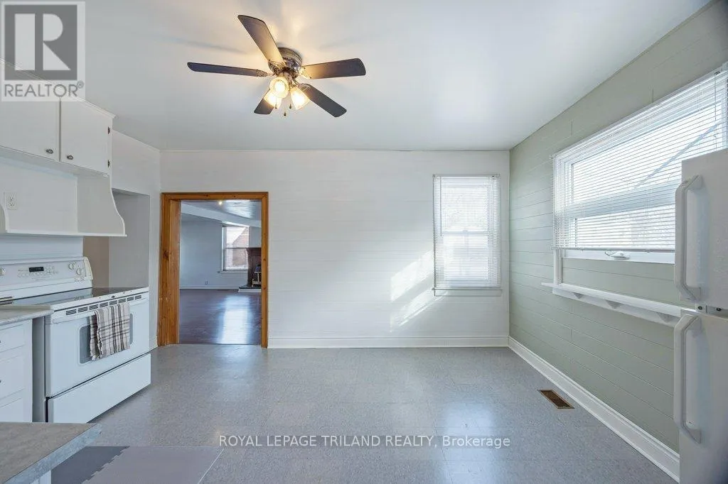 Cross Streets: Quaker Road. ** Directions: South on Quaker Rd to Sparta Line, turn right, property on Southside. Come live in the quaint historical Sparta. This 1.5 storey home with a detached garage sits on a large corner lot. Main level entails a large living room with a gas fireplace, eat-in kitchen, large primary bedroom, second bedroom (this has floor access to the part basement and on demand hot water heater is in the closet), updated 4pc bathroom, laundry area and a mudroom with access to the rear yard, patio area, gazebo sitting on a deck and fully fenced rear yard. Moving to the second floor is a very large third bedroom. Some updates over the years are: siding, fascia, eavestroughs, front door, some windows, recently most of the interior freshly painted. Parking and access to the garage is off Hiram Smith Lane. Great retirement or starter home! A pleasure to show! (id:27476)