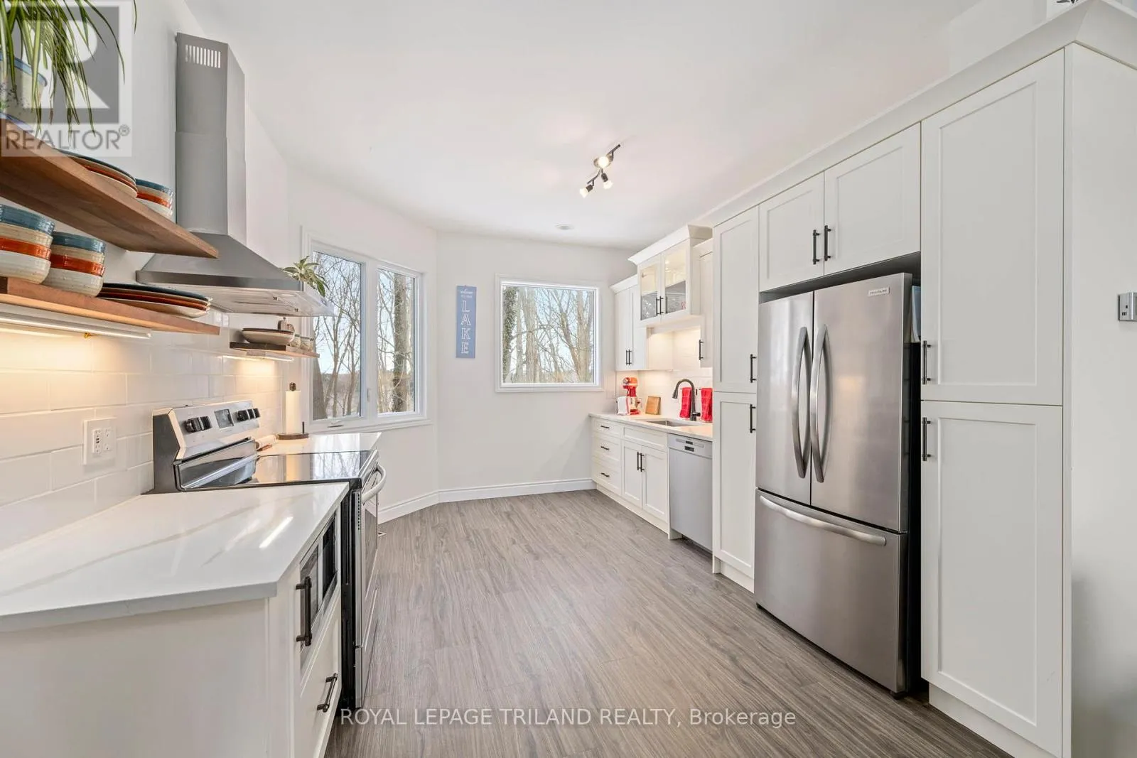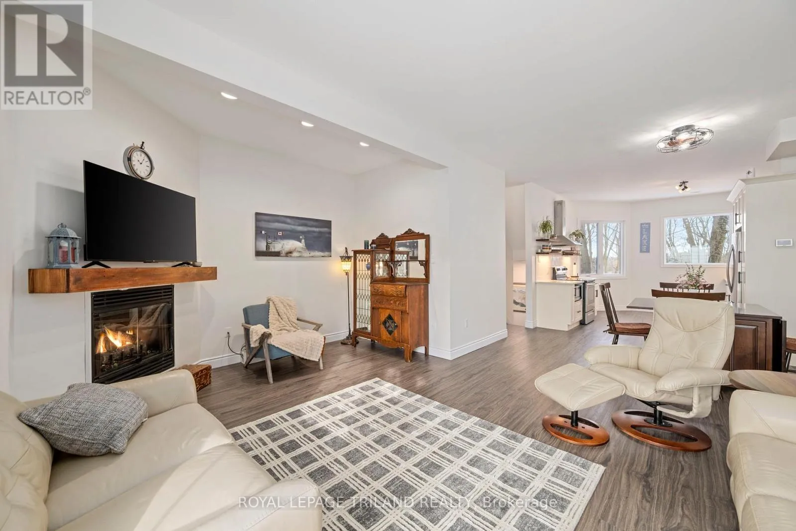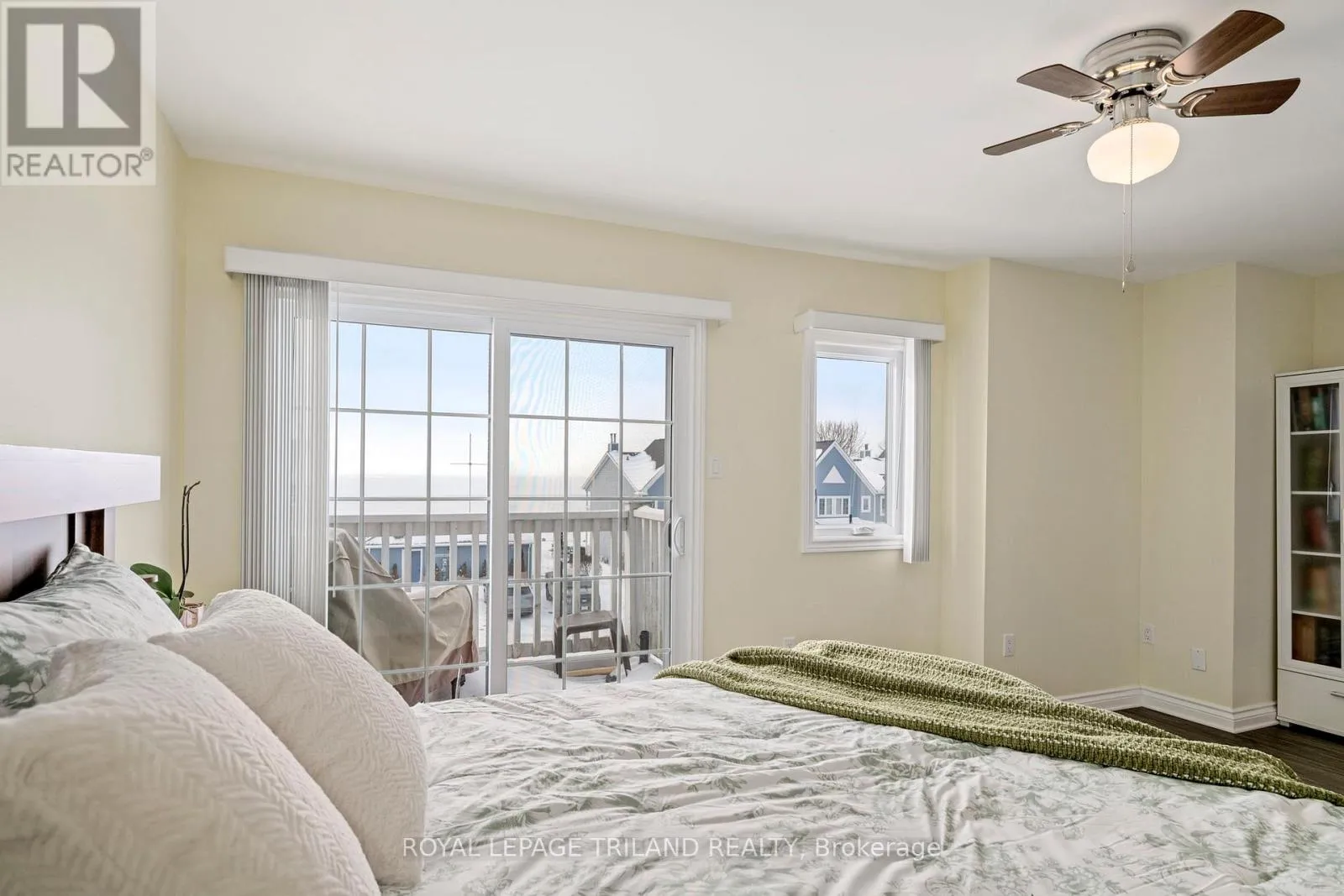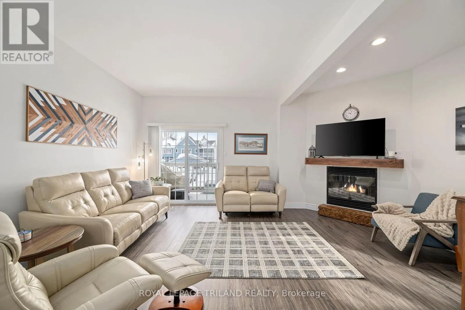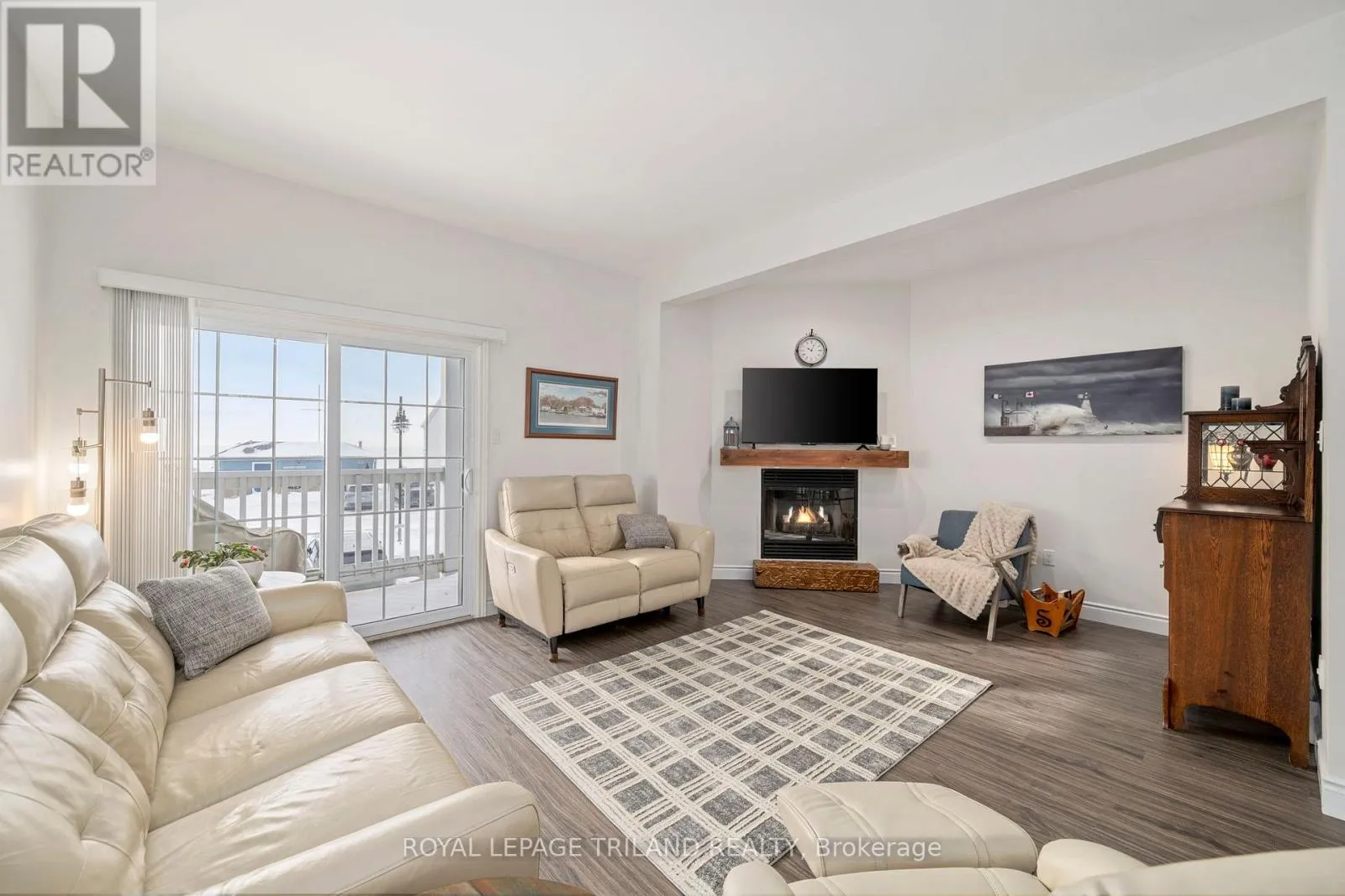 Cross Streets: George St. ** Directions: FROM GEORGE X FRONT STREET, GO UP THE HILL, COMPLEX ON THE LEFT. Close the laptop. Step onto your balcony. Let the lake reset your day.Welcome to Mariner's Bluff in Port Stanley - where everyday life feels like an escape. This beautifully updated townhouse condo offers a 3-bedroom layout, perfect for remote professionals, outdoor lovers, or anyone ready to trade congestion for fresh air, water views, and space to breathe.With 3 bedrooms, 1.5 bathrooms, and a single car garage, this home offers a rare setting with open lake views at the front and peaceful ravine privacy at the rear - giving you the best of both worlds.The main living level is bright, open, and built for real life. The kitchen flows seamlessly into the dining and living space, centred around a gorgeous gas fireplace with custom mantel. Step onto the lake-facing balcony for morning coffee before work, midday fresh-air breaks, or evenings watching the water and sunsets roll in. Upstairs, the primary bedroom features a large closet and private lakeview balcony - a space that quickly becomes your favourite place in the home. Additional bedrooms offer flexibility for guests, home office space, or growing lifestyle needs.Extensive updates provide true move-in confidence, including newer flooring, fresh paint, heat pump (2023), rental water heater (2023), custom blinds (2024), washer and dryer (2023), dishwasher (2025), updated lighting, and newer garage door opener with exterior keypad (2025).The community pool sits directly across from the unit overlooking the lake, adding to the everyday resort-style feel of the neighbourhood.If you've been waiting for a lifestyle upgrade that still feels attainable - a place where you can work, live, recharge, and enjoy the outdoors without compromise - this is it. This is a lifestyle upgrade that is actually within your reach. (id:27476)