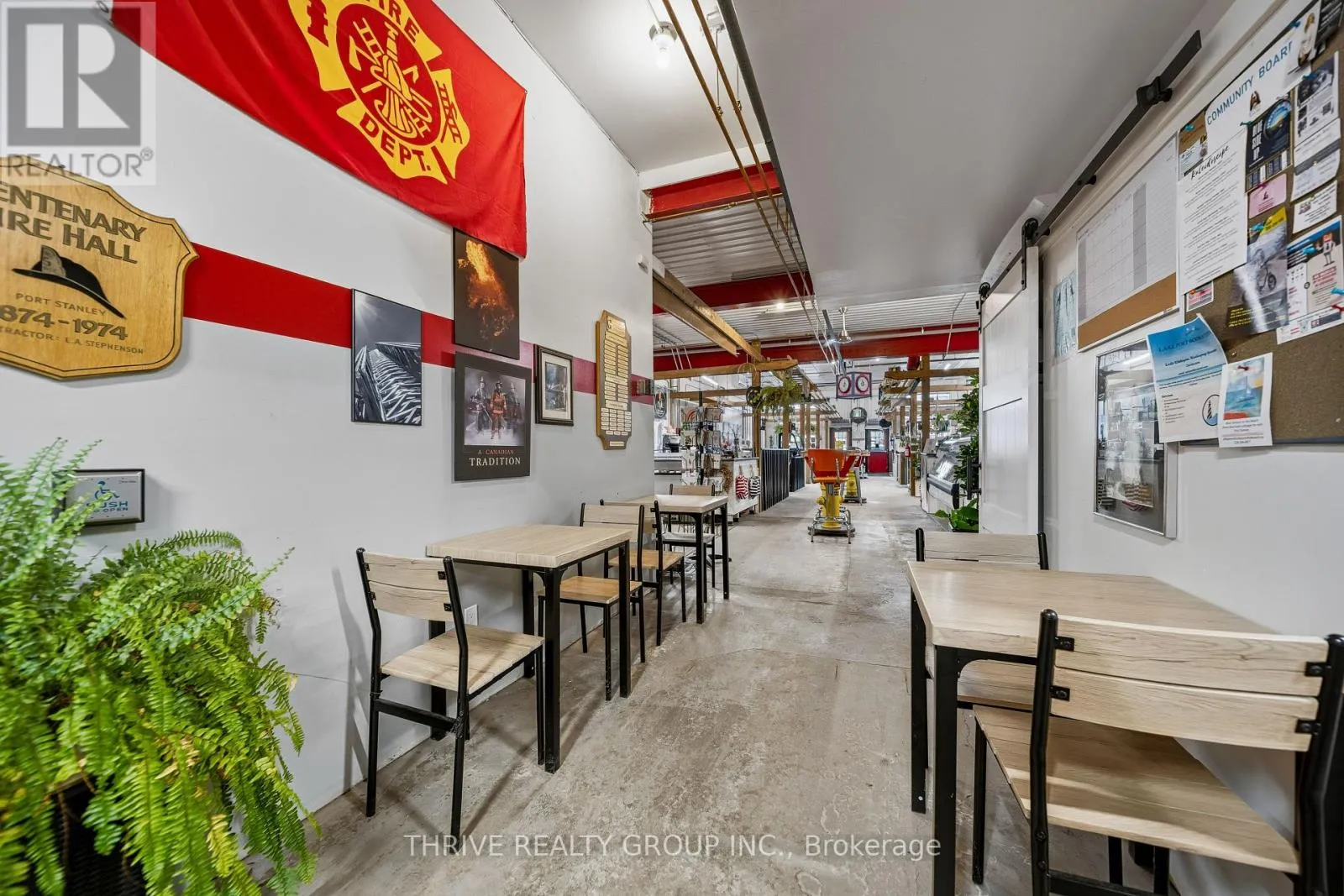 Cross Streets: JOSEPH STREET & COLBORNE STREET. ** Directions: LOCATED AT THE CORNER OF COLBORNE STREET & JOSEPH STREET. Rare opportunity to acquire a landmark, income-producing property in the heart of Port Stanley's downtown core. The former Port Stanley Fire Hall has been extensively redeveloped into a modern commercial marketplace with an executive residential apartment above, creating a unique and diversified investment asset.The building comprises approximately 4,548 sq. ft., including 3,019 sq. ft. of main-floor commercial space and a 1,529 sq. ft. two-bedroom residential apartment on the second level. Originally constructed in 1974, the property has undergone over $1,000,000 in recent capital improvements, effectively replacing all major building components and delivering a near-new condition asset.The main floor is 100% leased as a curated marketplace, featuring a central corridor layout with multiple vendor stalls, excellent pedestrian flow, providing walk-up access, and upgraded common areas including men's and women's washrooms. The space has been thoughtfully designed to support long-term tenancy, flexibility, and strong foot traffic.The upper-level apartment offers two bedrooms, two bathrooms, an open-concept kitchen with island, quality appliances, living area, private entrance, gas fireplace and a private outdoor terrace with gas BBQ. Finishes are modern and professional, suitable for executive or long-term rental occupancy. Mechanical and electrical upgrades include 400-amp service, multiple hydro meters, generator, new HVAC systems, new roof, new plumbing, accessibility improvements, and new stormwater pipe. The property is zoned B1 (Business Zone) and benefits from exceptional exposure to both pedestrian and vehicular traffic in Port Stanley's central business district.This is a stabilized, income-generating investment with additional upside through tenant turnover, rental optimization, and long-term appreciation in one of Southwestern Ontario's most sought-after waterfront communities. Financial information available upon execution of a confidentiality agreement. (id:27476)