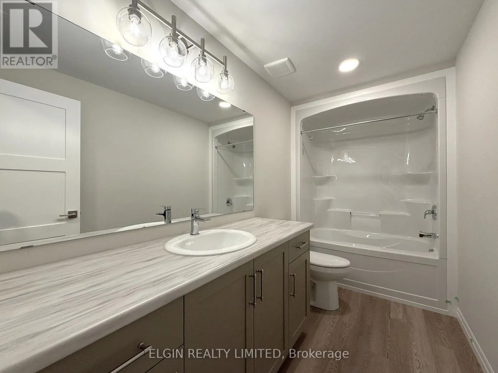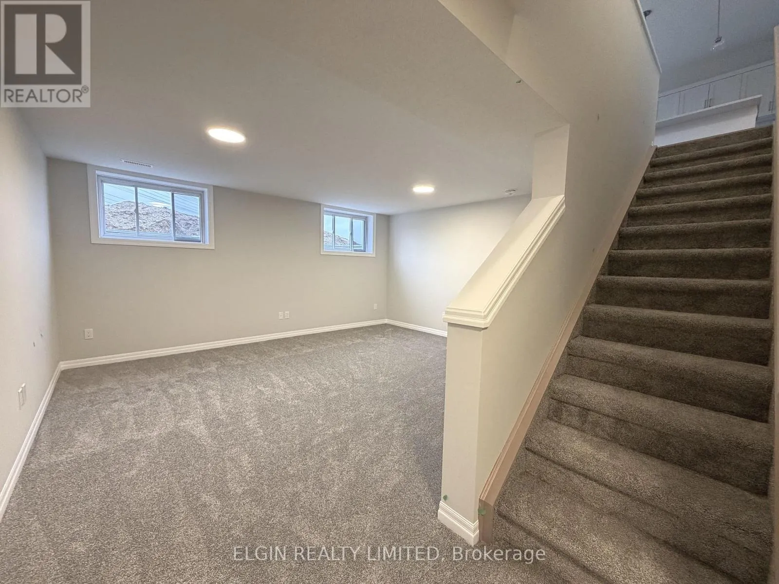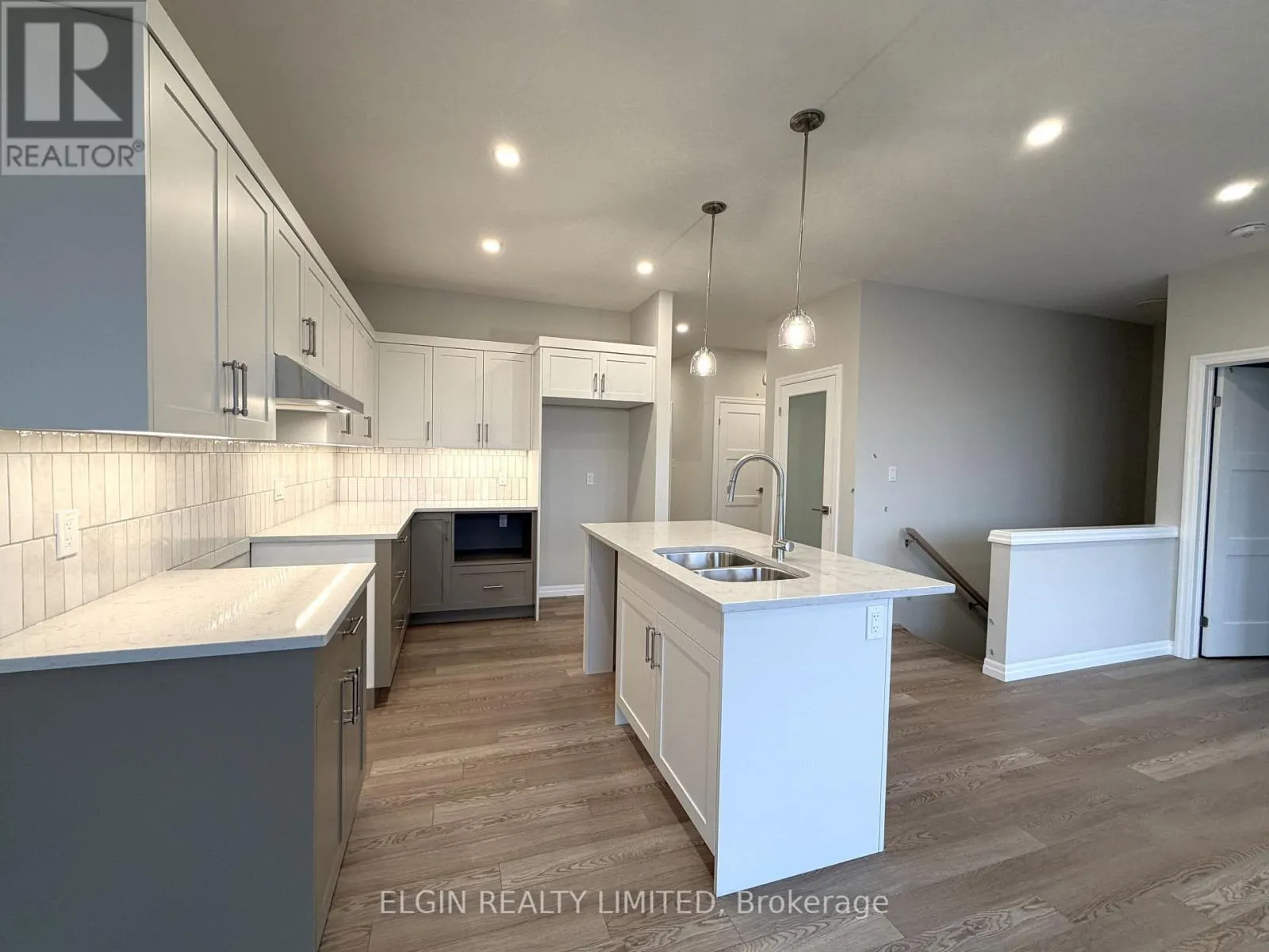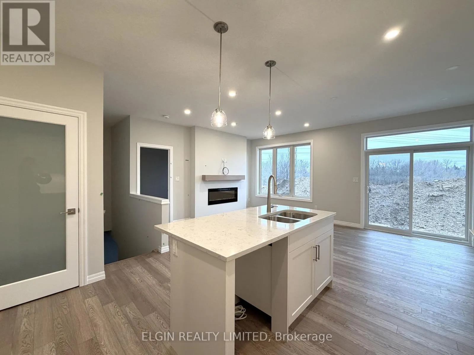 Cross Streets: Wellington Rd & McBain Line. ** Directions: Wellington Rd to McBain Line, right on Watson Cres., left on Freeman Line, left on McBain, right on Horizon Court - builder sign on. Move-in ready, this beautifully designed bungalow semi-detached home by Hayhoe Homes offers 4 bedrooms (2+2), 3 bathrooms, and an attached 2-car garage, set on a pie-shaped lot on a cul-de-sac. The open-concept main floor features 9' ceilings and luxury vinyl plank flooring throughout, highlighted by a designer kitchen with quartz countertops, tile backsplash, pantry, and a central island that flows seamlessly into the great room with fireplace and dining area with a patio door leading to a rear deck overlooking the backyard. The spacious primary suite includes two closets (walk-in & standard) and private 3-piece ensuite with walk-in shower, complemented by an additional bedroom, a full bath, and convenient main floor laundry. The finished basement offers additional living space with a finished family room, 3rd & 4th bedrooms and bathroom. Additional highlights include a covered front porch, central air conditioning, HRV system, Tarion New Home Warranty, and numerous upgrades throughout. Located in the sought-after Lynhurst community, just minutes to London and the amenities of St. Thomas. Taxes to be assessed. (id:27476)