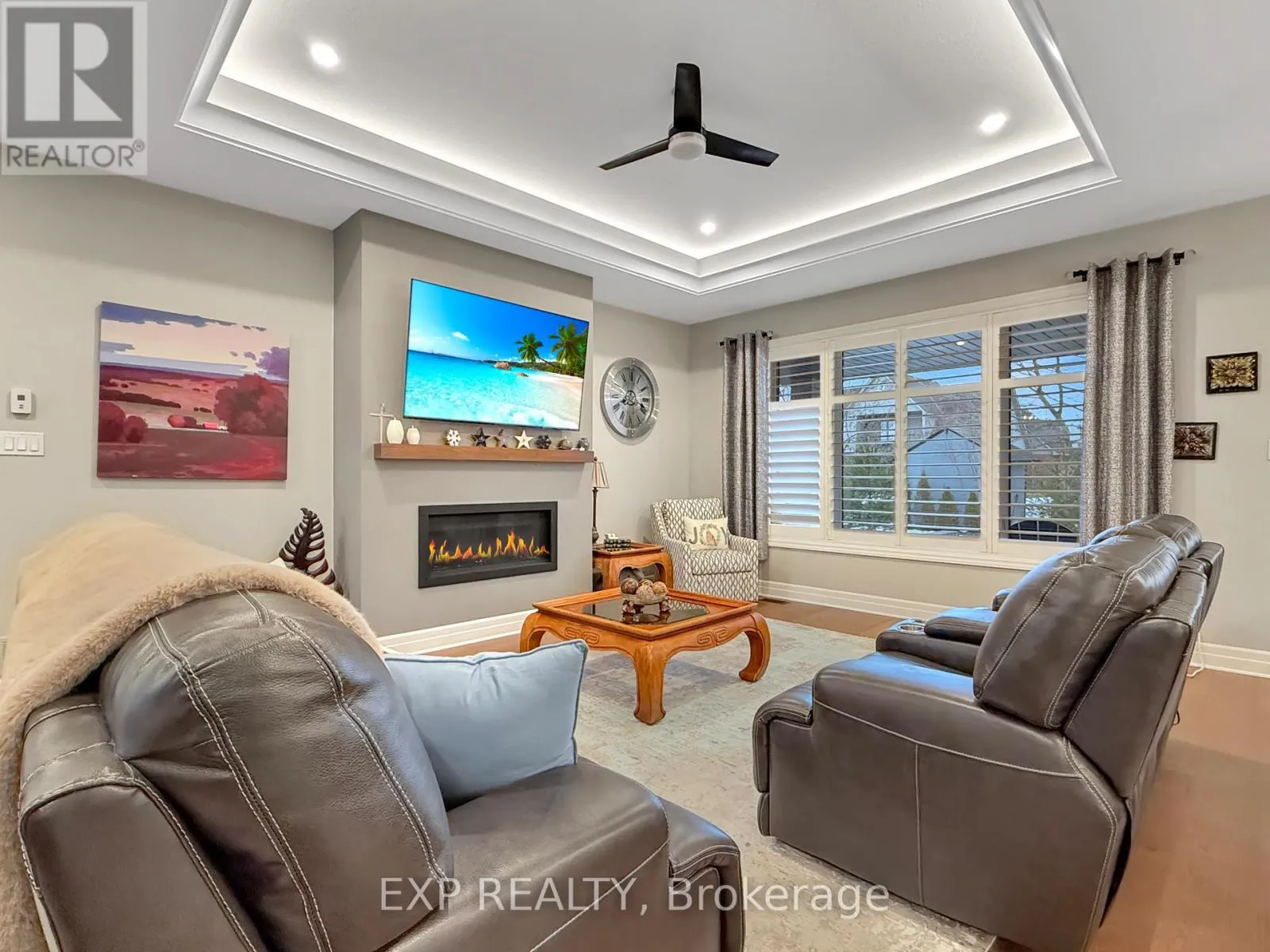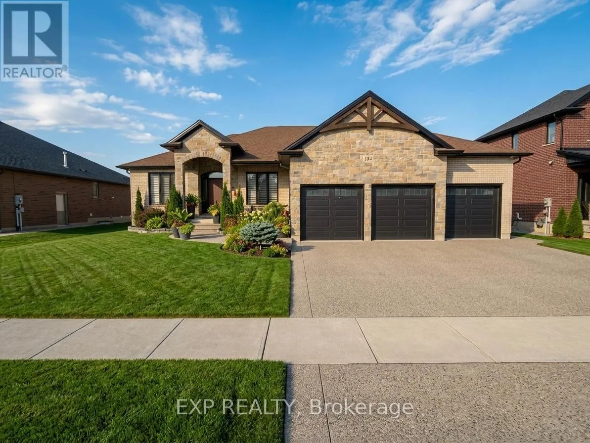 Cross Streets: Kettle Creek Dr and Ramona Lane. ** Directions: From Seventh Ave turn South onto Kettle Creek Dr and the home will be down the road and around the bend!. Welcome to 184 Kettle Creek Drive, a spectacular, nearly-new bungalow nestled in the charming community of Belmont, offering the perfect blend of small town tranquility and quick access to London and Highway 401. This exceptional 3+1 bedroom, 2+1 bathroom home boasts a beautifully designed, open-concept main floor highlighted by a cozy natural gas fireplace and a convenient main floor primary suite. The striking brick exterior is complemented by a highly sought after 3-car attached garage and a sprawling private driveway with ample parking. Downstairs, the large, partially finished basement provides incredible bonus space to suit your family's needs and room to grow. Eco-conscious buyers will love the innovative rainwater collection tank, perfect for maintaining your lawn and washing vehicles along with modern upgrades like an ERV system, central air, and a water softener. Situated on a generous lot in a family friendly neighborhood, this move in ready gem is an absolute must see! (id:27476)