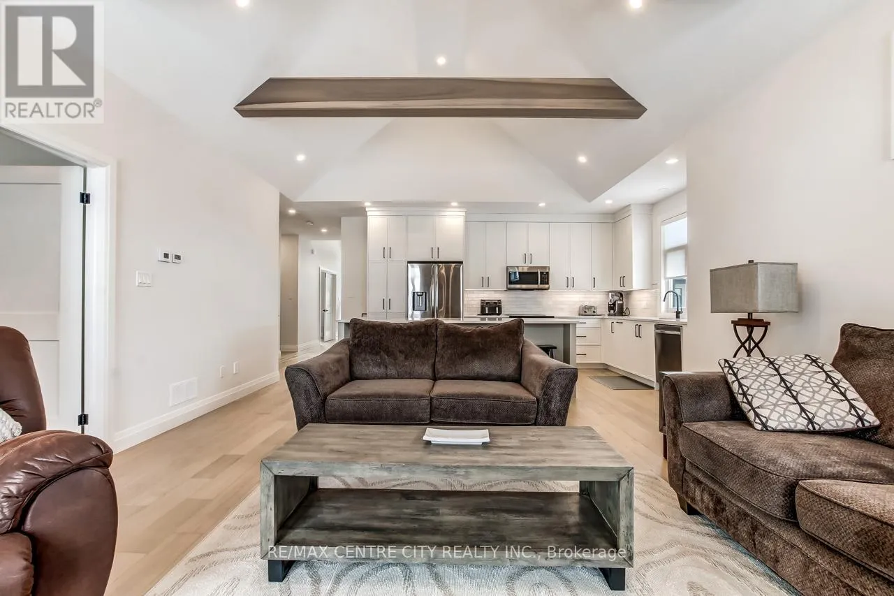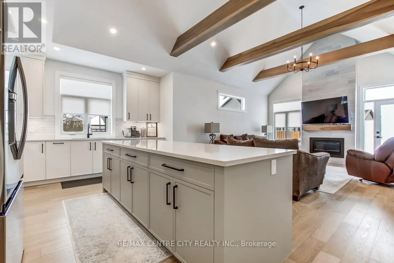 Cross Streets: EAST ROAD. ** Directions: HEADING SOUTH ON SUNSET DR, TURN LEFT ONTO EAST ROAD, THEN RIGHT ONTO COMPASSTRAIL. THE CONDO COMPLEX WILL BE ON YOUR RIGHT. Welcome to 63 Compass Trail, Unit 35, a newly completed condo development where you can move in immediately without the hassle or delays of construction. This sought-after location offers walking distance to the beach, downtown amenities, parks, and paved walking paths, making everyday living both convenient and enjoyable. A welcoming foyer sets the tone as you enter the home. Just off the entrance is a bright first bedroom or home office, highlighted by a large south-facing window. Continuing down the hallway, you'll find a 4-piece bathroom and direct access to the attached double-car garage. The heart of the home is a showstopper - an open-concept living space with vaulted ceilings and exposed beams, creating a bright and airy atmosphere. The oversized kitchen island with breakfast bar anchors the space and is ideal for hosting family and friends. The kitchen is finished with floor-to-ceiling cabinetry, quartz countertops, and ample prep and storage space. The adjoining living room includes a gas fireplace and opens to the back patio with a gas BBQ hookup, extending your living space outdoors. The primary bedroom is conveniently located on the main floor, complete with a walk-in closet and a 4-piece ensuite bathroom. A main-floor laundry room adds everyday convenience, making this home especially appealing for those seeking main-floor living. The finished basement offers additional living space, including a third bedroom, 2-piece bathroom, and a recreation room perfect for relaxing or entertaining. There is also ample storage in the utility room, with the potential to create a fourth bedroom if desired. Step outside to enjoy your personal patio space, ideal for unwinding or entertaining. Residents of this well-maintained condo complex also enjoy access to an outdoor swimming pool and ample visitor parking. A bright, modern home in a fantastic location-move-in ready and waiting for you. (id:27476)