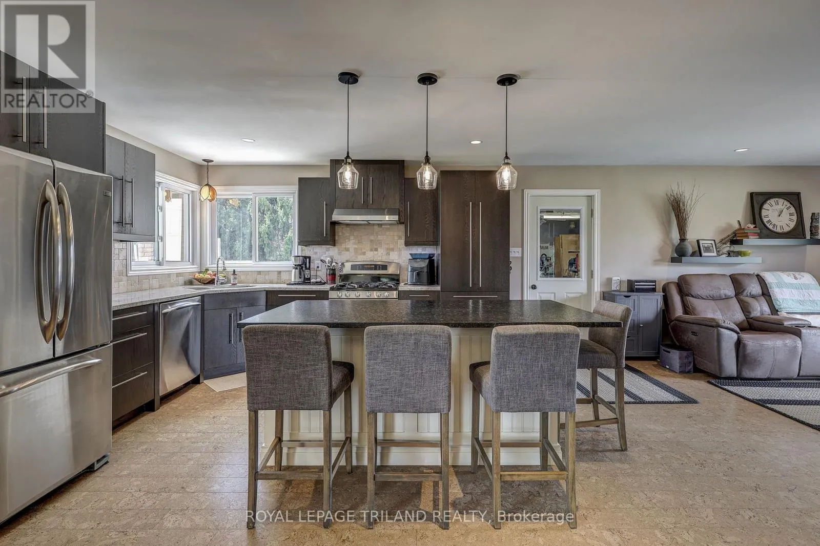 Cross Streets: SPARTA LINE / QUAKER ROAD. ** Directions: FROM QUAKER ROAD, HEAD EAST ON SPART LINE. Set on 1.38 acres overlooking beautiful scenic countryside, this fully renovated 1627 square foot bungalow offers the kind of space and flexibility that's getting harder to find. The main floor has been opened up to create a functional, easy-flow layout between the kitchen, dining, and living areas, ideal for both daily life and hosting. With 3 bedrooms and 2 updated bathrooms, it's move-in ready with nothing to work away at. The kitchen is well thought out, with quality cabinetry, pull-out storage, cork flooring, and a large quartz island that becomes the natural gathering point of the home. Downstairs, the walk-out basement gives you options. Whether you need extra living space, room for extended family, or are thinking about an in-law setup, it's already finished with a gas fireplace, wet bar, and a large laundry area. There's also direct access to a lower-level garage great for equipment storage or a workshop setup. The attached main garage is fully usable year-round with a wood stove, making it a solid space for projects or keeping things warm in the winter. Outside is where this property separates itself. You've got open space, privacy, and room to grow-whether that's a future shop or pool. The upper deck includes spectacular views and a hot tub, and the lower patio area with pergola and fire pit gives you a great spot to unwind or entertain. Located just 15 minutes to Port Stanley and within easy reach of some great local spots, you get the quiet of the country without feeling disconnected. If you're looking for a property that offers space, flexibility, and real usability-this one delivers. (id:27476)