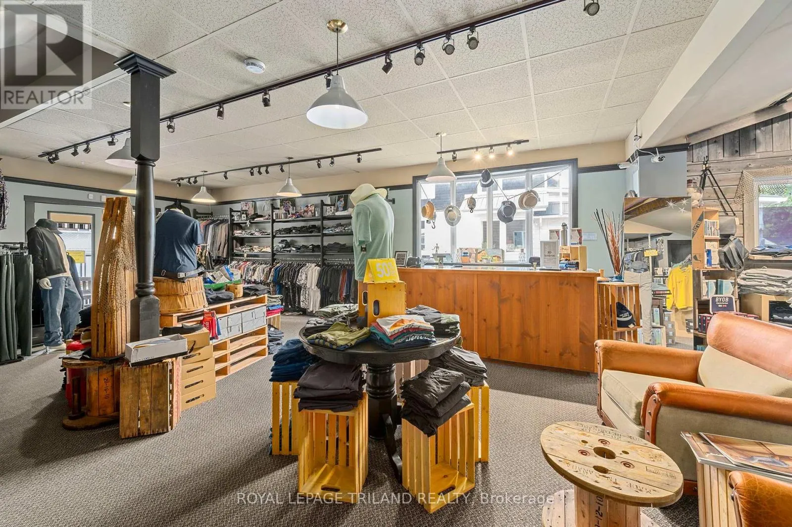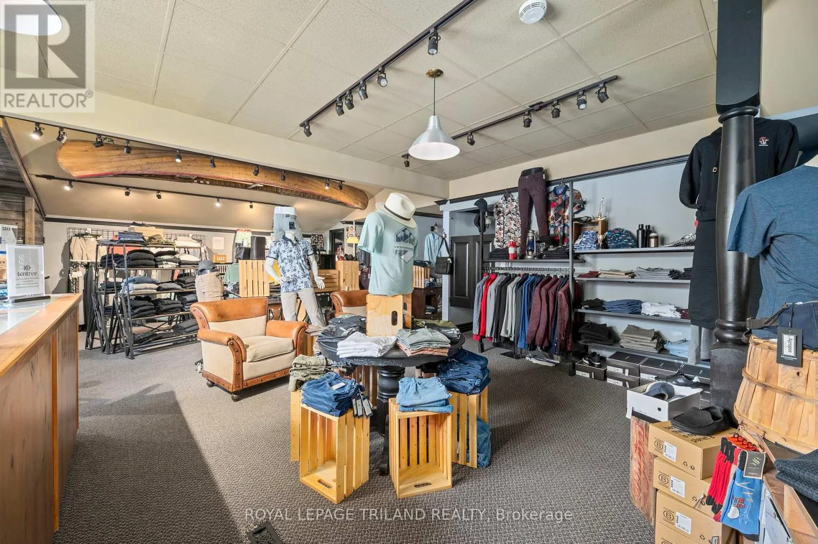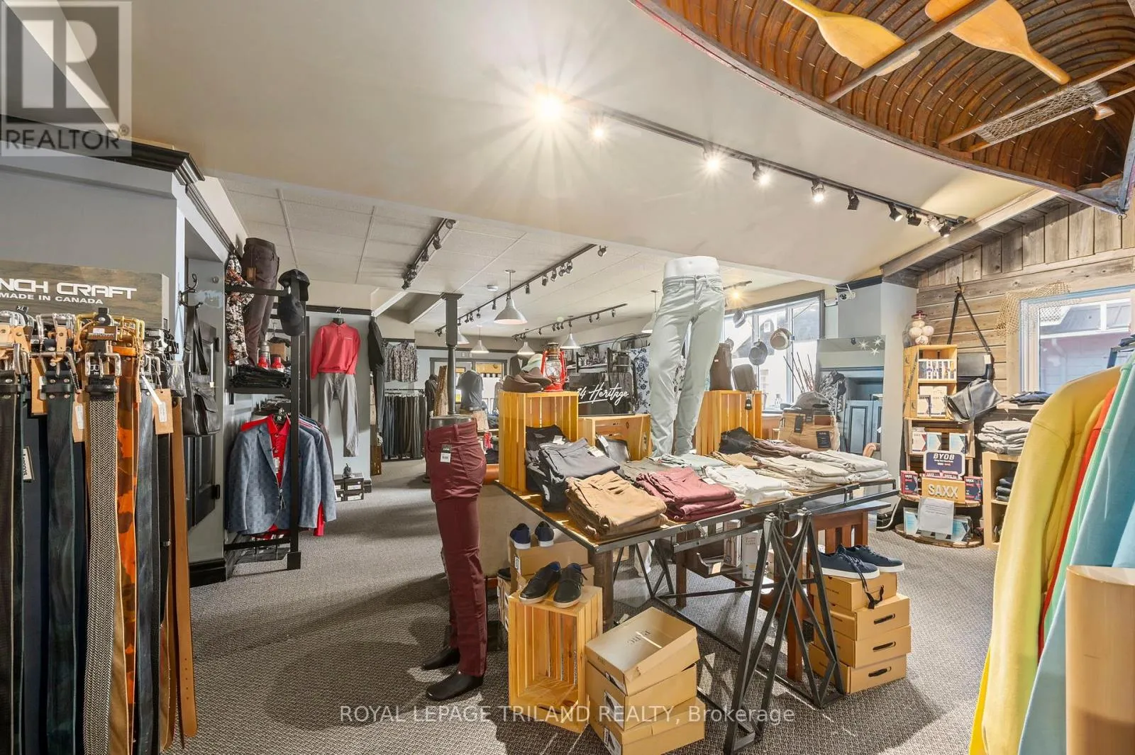 Cross Streets: BRIDGE/JOSEPH. ** Directions: SUNSET TO COLBORNE. This is a rare opportunity to acquire a landmark mixed-use investment property spanning two adjoining downtown storefront buildings in one of Port Stanley's most visible and heavily trafficked commercial corridors. Connected internally by a small bridge but presenting as two distinct street-facing buildings, the property offers exceptional frontage, strong signage exposure, and long-term leasing flexibility at a signalized intersection along a high-traffic county roadway with consistent pedestrian activity.The property includes multiple commercial units plus a highly sought-after downtown residential apartment, totaling over 4,000 square feet of rentable area. The building is currently transitioning through an anchor tenant changeover, creating a unique opportunity for an incoming owner to secure a new flagship commercial tenant or reconfigure the space to maximize future rental income. Downtown Port Stanley continues to experience strong demand for well-located commercial space driven by tourism, population growth, and expanding regional employment opportunities.There is also an optional opportunity to acquire the established Apropos retail business alongside the real estate. Apropos is a recognized Port Stanley boutique brand with longstanding community presence, strong repeat clientele, and significant transferable goodwill.Flexible permitted uses under current zoning provide multiple pathways for future repositioning or value-add strategies. With continued regional economic expansion anticipated alongside the Volkswagen EV Gigafactory development, Port Stanley is positioned for sustained commercial and residential demand growth.Opportunities to control this level of downtown frontage, scale, and visibility are limited, making this an ideal acquisition for investors or owner-operators seeking long-term upside in one of Southwestern Ontario's most desirable lakefront markets. (id:27476)