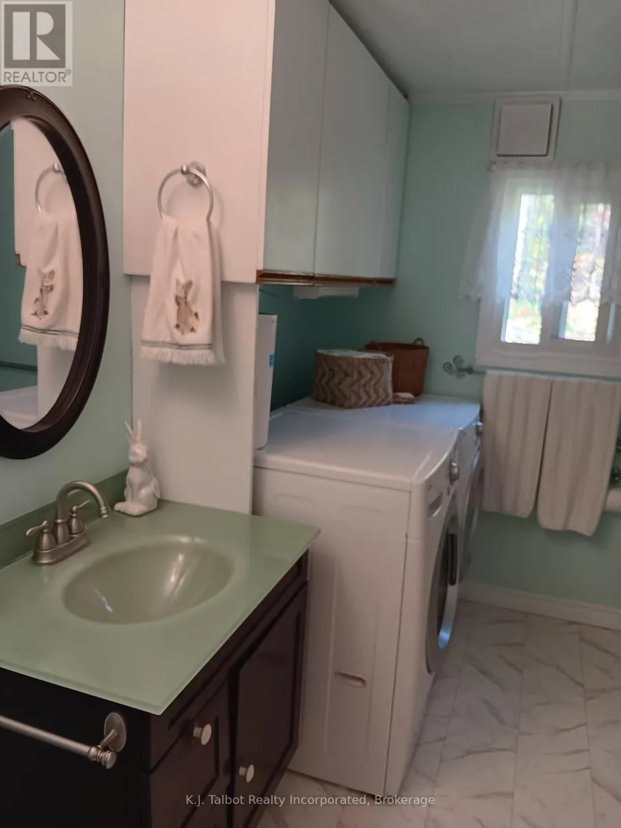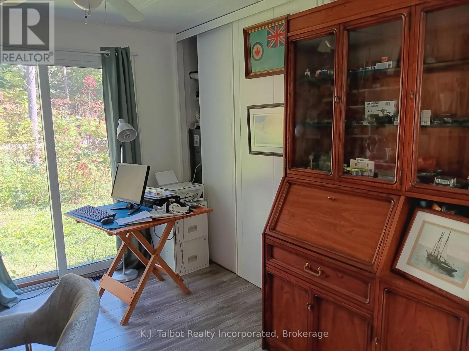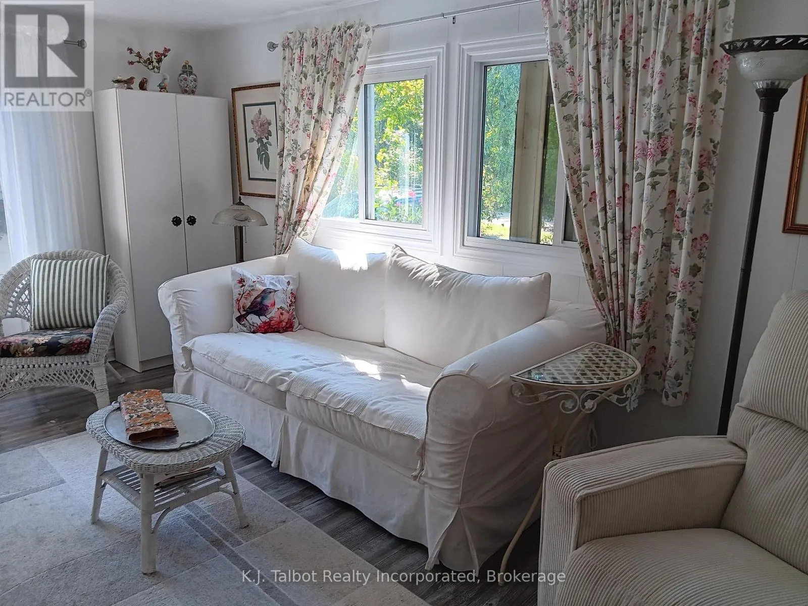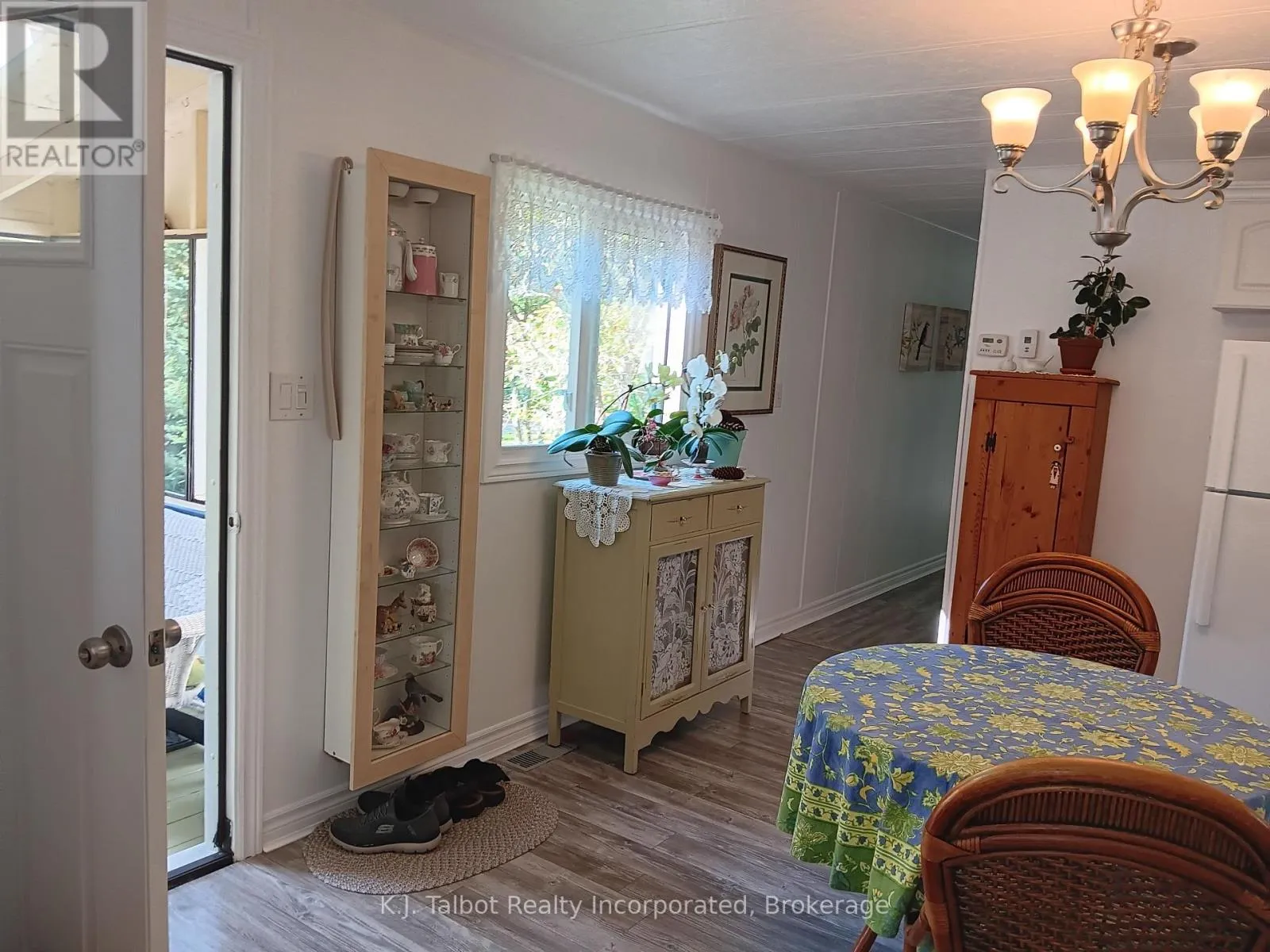 Cross Streets: Bayfield River Road & Pines entrance. ** Directions: from hwy 21 head east on Bayfield River Road, Bayfield Pines is on the right hand side of the road. it's time to relax and enjoy the relaxed lifestyle this property offers. This sought after Community has always been desirable and the season just makes it all the more enticing. Private natural landscaping is the dream of many looking to retire and enjoy a slower pace in an area known for its quit embracing of all that is nature. This bright an airy home is a delight to see - the sophisticated yet calming interior is like a warm embrace. The updated colors and open area combined Kitchen/living/dining area give you the opportunity to engage everyone at once or the set up also allows for quiet corners to read or reflect. The Main bedroom is a calming space with warm colors to embrace your quiet time. The second bedroom has been turned into a flex space for work, crafts and library with patio doors leading to the private low maintenance yard, mother nature has done work.. The bath/laundry room was recently updated to include a large glass walk-in shower. So many updates are here that you really MUST see it. Upgraded window's, doors, furnace and shingles (from the original domed roof) a front porch leads the way to a welcoming 3 season sunroom that just begs you to enjoy morning coffee or an evening beverage complete the home. a 1 1/2 car garage and work space are the icing on the cake. This truly a retirement dream come true. Land lease is $440.16 per month & water testing (id:27476)