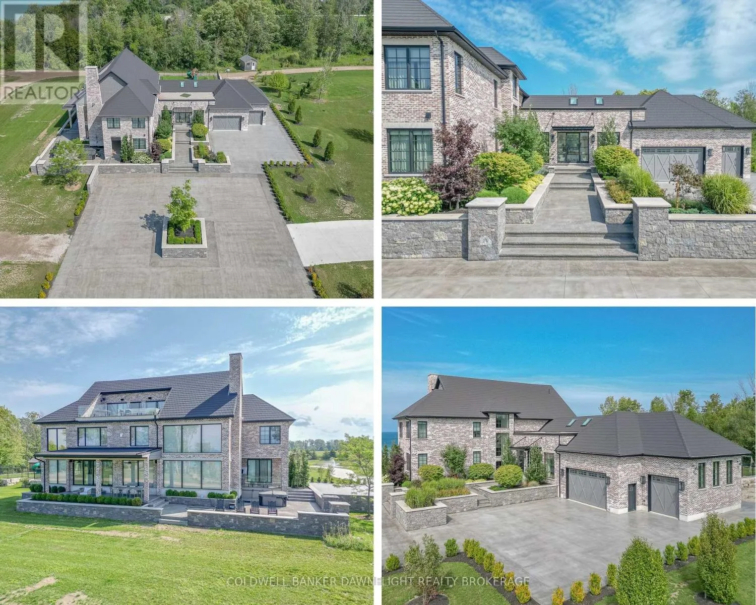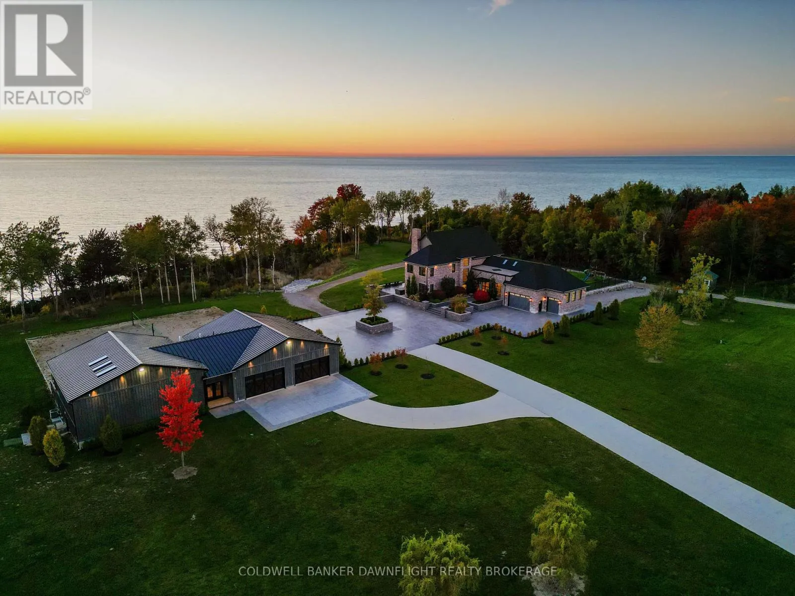 From Hwy 21 - turn onto Blacks Point Rd, turn left onto Cottage Dr. Property is on your right. Indulge in luxury at this 13 acre Lake Huron estate, where meticulous craftsmanship and attention to detail converge to create an unparalleled retreat. The house boasts a main floor with two bedrooms, including a 3-piece en suite and a walkout to the patio/hot tub; complemented by an additional 2-piece bathroom, and lakeside windows offering breathtaking views. Enter the open-concept kitchen, dining, and living room; soaring to the ceiling of the second story, with second-level windows overlooking the lake; further enhanced by a butler's pantry, grand piano, office, and laundry/mudroom. Ascend to the second level, where four bedrooms, each boasting lake views, await; accompanied by a 4-piece bath with heated floors. The primary bedroom stands as a sanctuary, featuring a self-contained laundry room, retractable TV, gas fireplace, and expansive walk-in closet with built-ins. Even more impressive is the 6-piece en suite, offering floor-to-ceiling windows, heated floors, a tub, a bidet toilet with a heated seat, and a shower that doubles as a steam room. The third level boasts a 3-piece bath, storage room, and a fully equipped bar; while the rooftop patio offers unparalleled views of Lake Huron. The basement, an entertainment haven, features four bunk beds, an entertaining/ games area, hockey shooting room, a 3-piece bath, bar area, wine room, and a theatre room. The guest house features two full-sized change rooms doubling as luxurious bathrooms, a commercial-sized gym fully equipped with top-of-the-line fitness amenities, and a separate living area with two double beds and bunk beds. The patio has composite decking, and offers views of the beach volleyball courts, Lake Huron, and the outdoor kitchen; while the garage provides ample space for vehicles or recreational toys. Two golf greens, a private road to the beach, and extreme erosion protection add to the appeal of this incredible property. (id:27476)