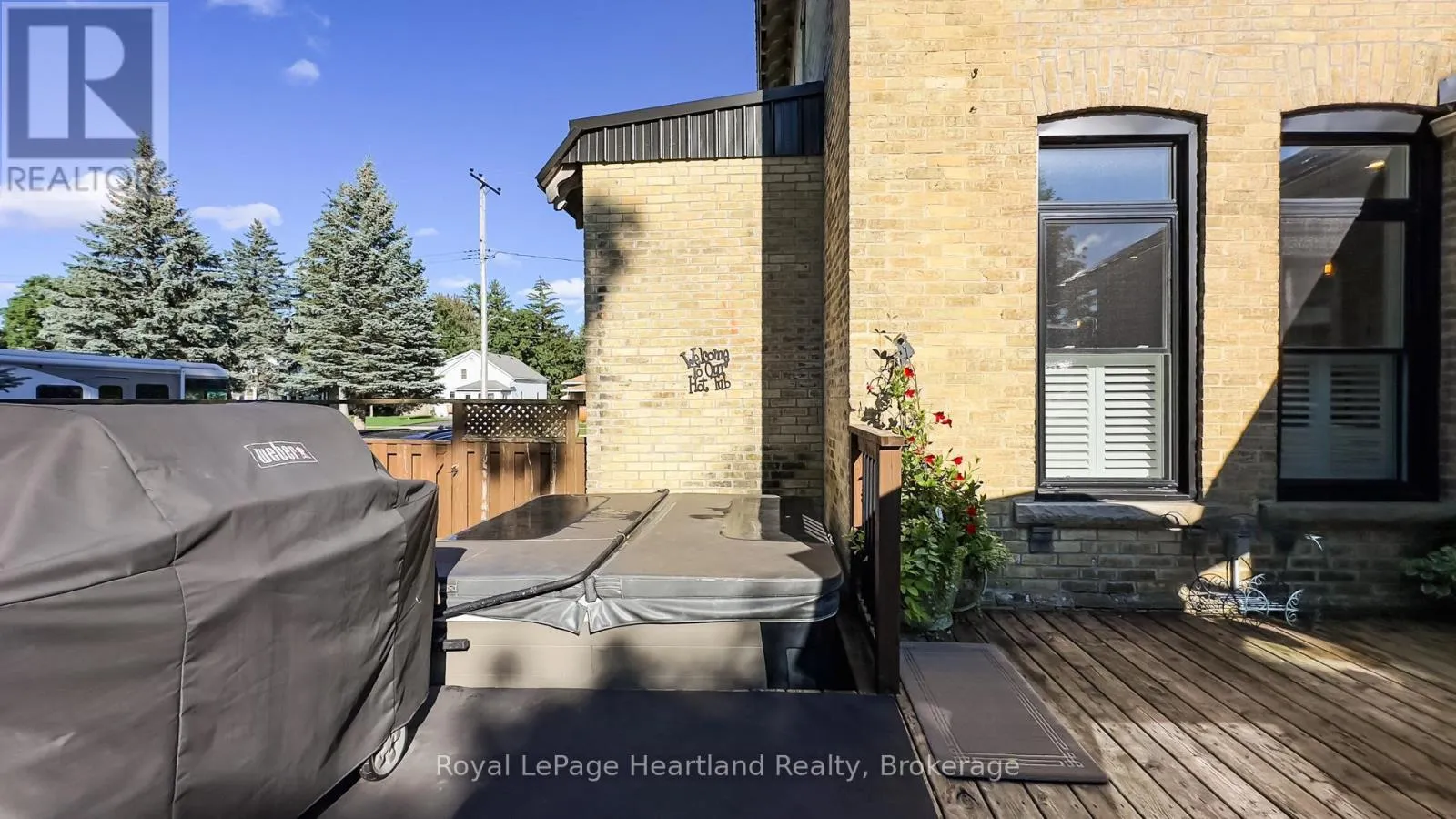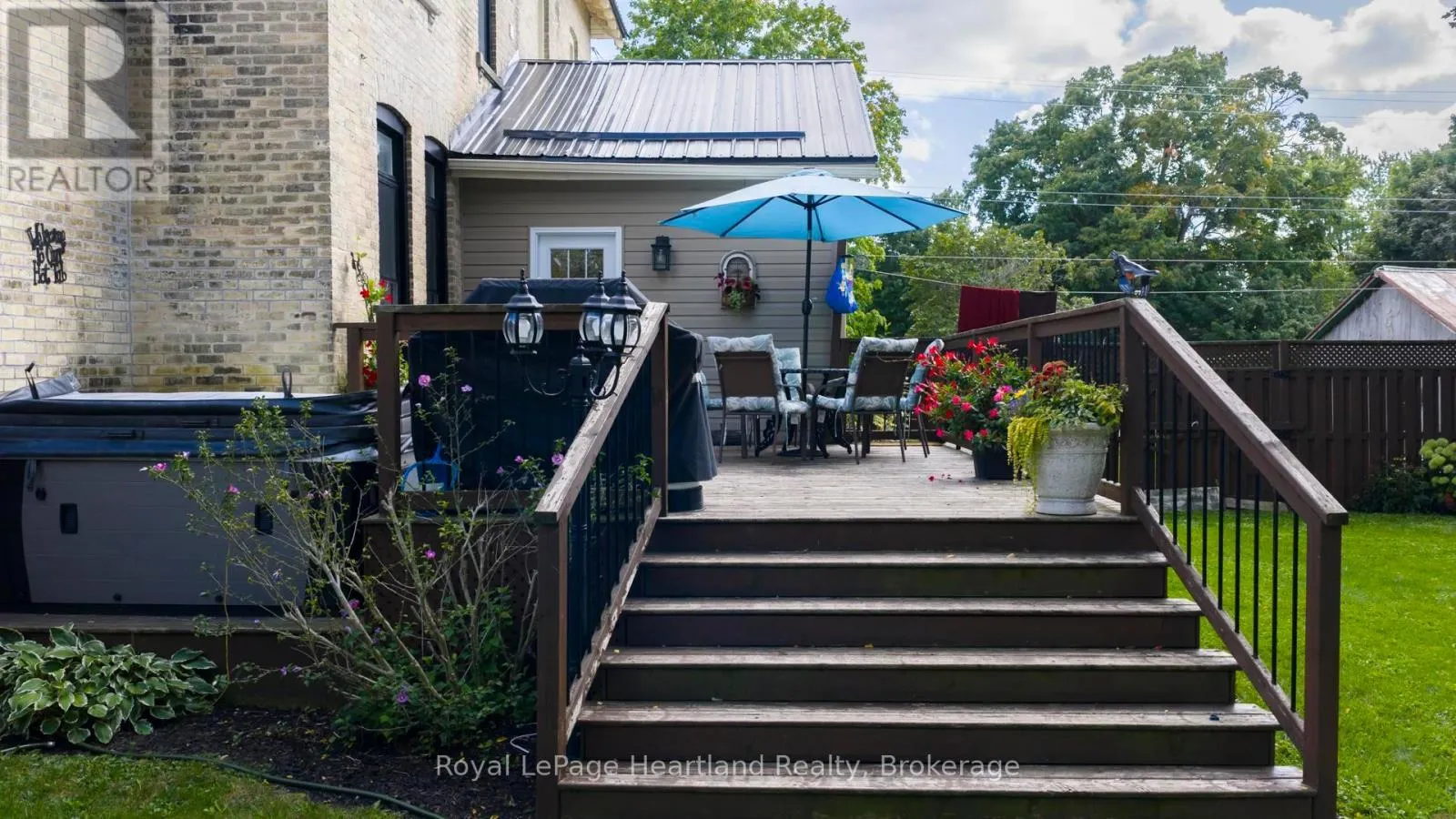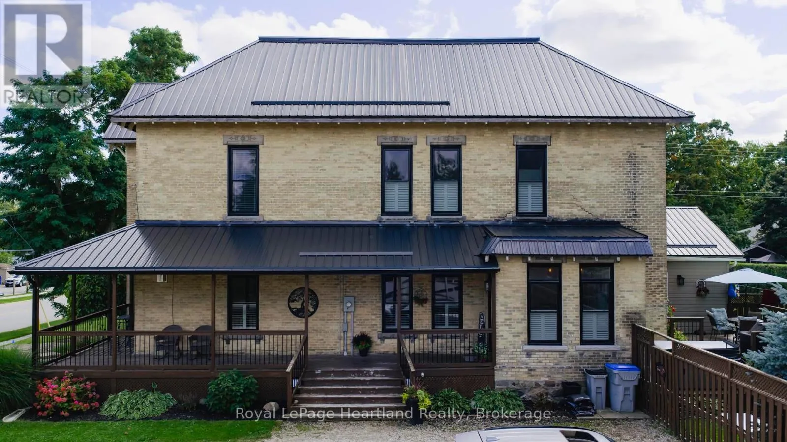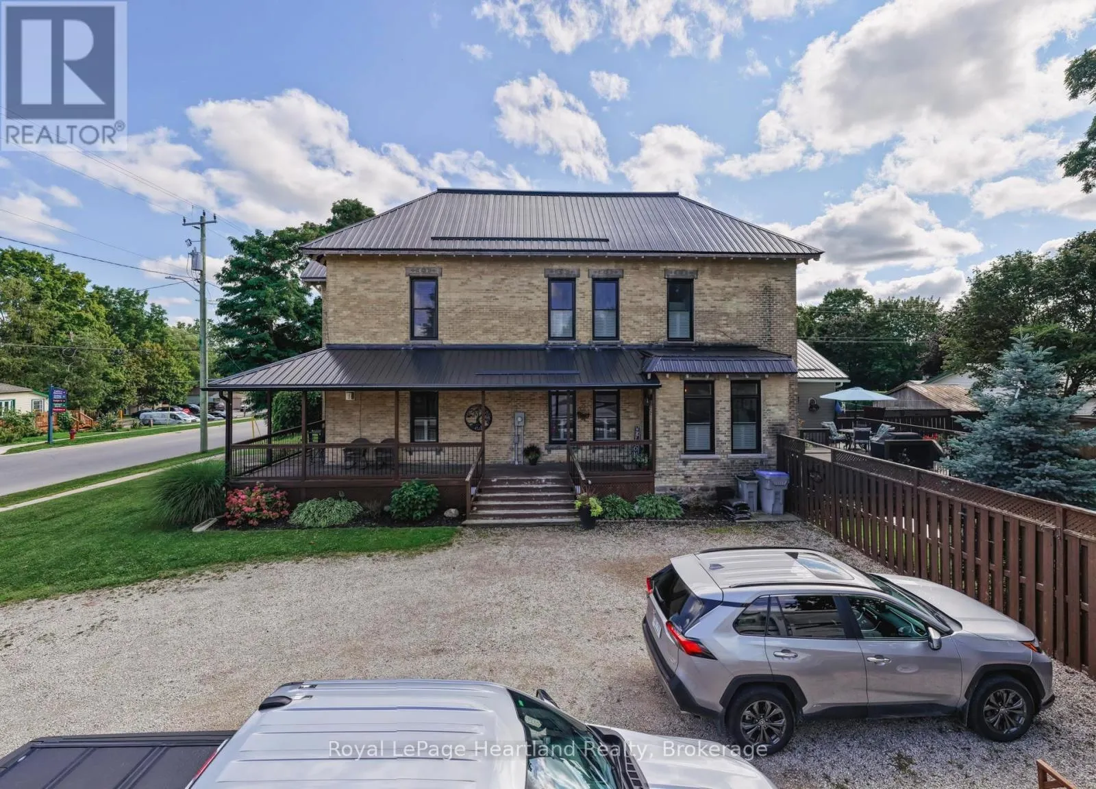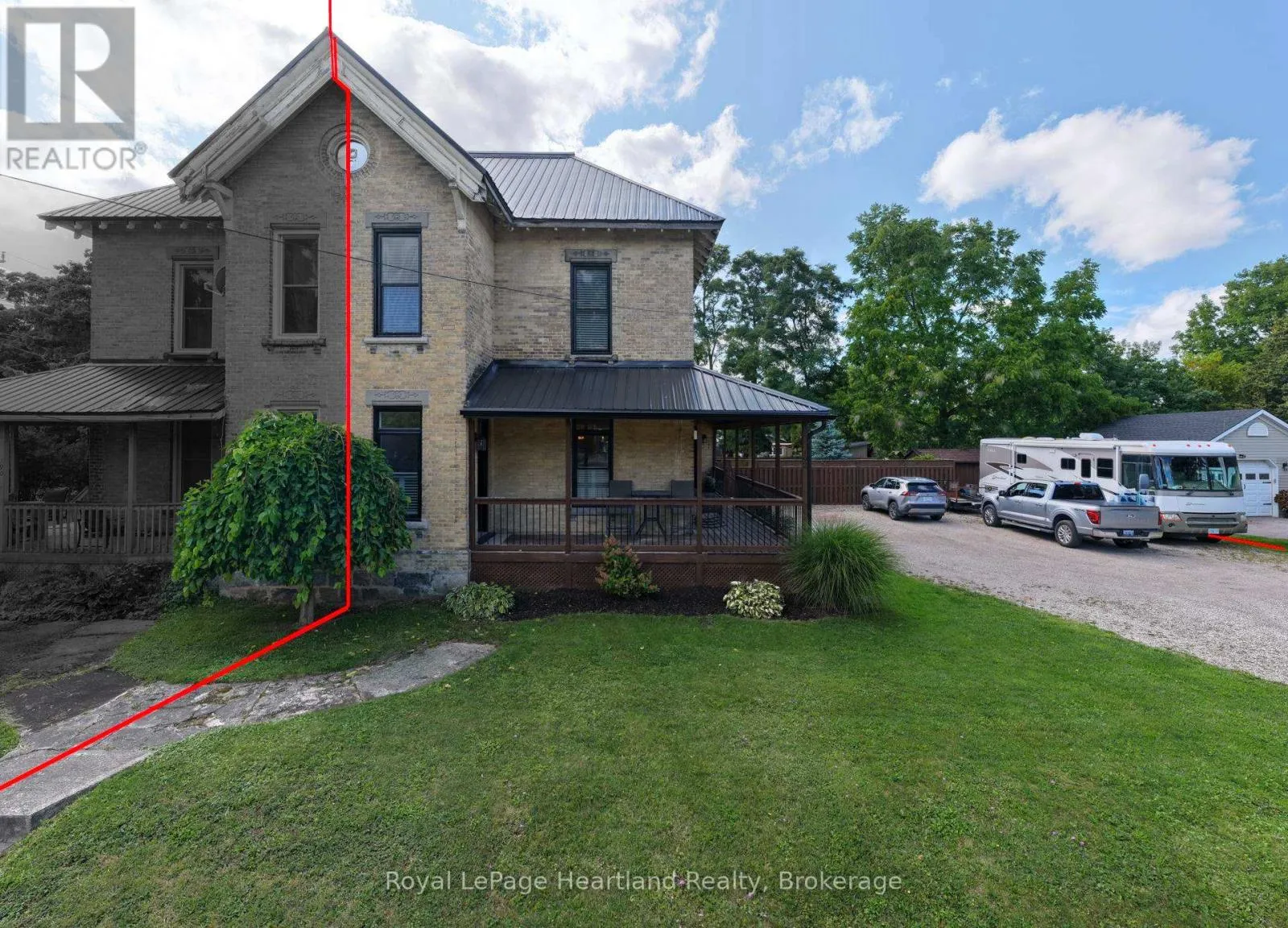 Cross Streets: Whitehead and Albert. ** Directions: Hwy 4 north of lights in Clinton, property on the west side at John St/Whitehead St corners. Get the best of both worlds with this completely redone Victorian Semi-Detached home on a very large 82.5' x 132' lot with a fenced rear, beautifully landscaped yard, rear deck & hot tub. A covered wrap-around front porch and ample parking spaces, including space for a large RV Trailer/motorhome/transport truck, make this property unique. This home was completely renovated in 2023, including windows, wiring, plumbing, flooring throughout, drywall/insulation, new furnace, air exchangers, trim, a huge open kitchen (quartz counters) into a dining and living area featuring luxury vinyl plank flooring, living room with gas fireplace, lots of counter and cupboard space, and a 2 pc bathroom at the rear of the main floor. Upstairs features 3 bedrooms, including a primary bedroom with a large walk-in closet and cheater suite access to a 4 pc bathroom/laundry with a custom walk-in shower and separate soaker tub. There is also stairwell access to a huge attic space that has the potential to be converted to living space. California Shutters are on every window. If you're looking for the charm of a Victorian home on a very large lot with the conveniences of a new/updated living space, then check this home out! (id:27476)
