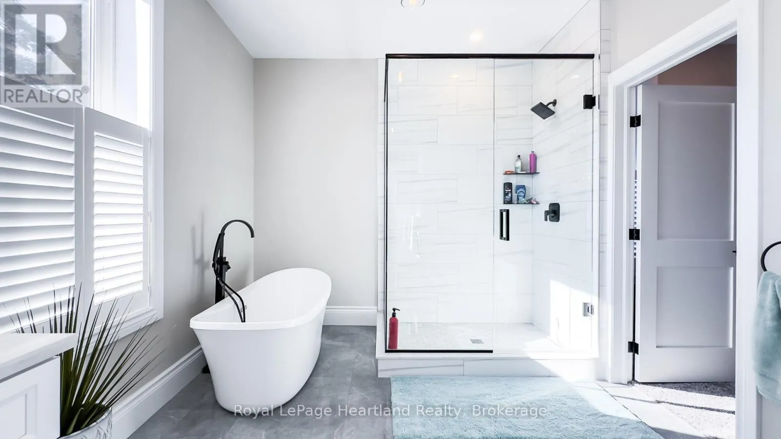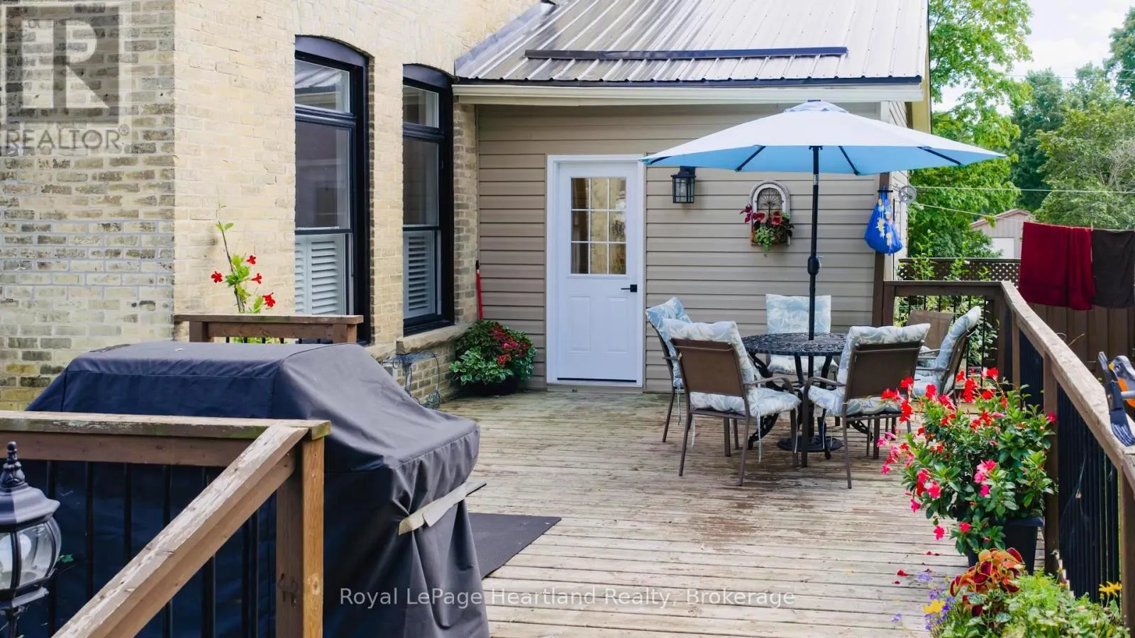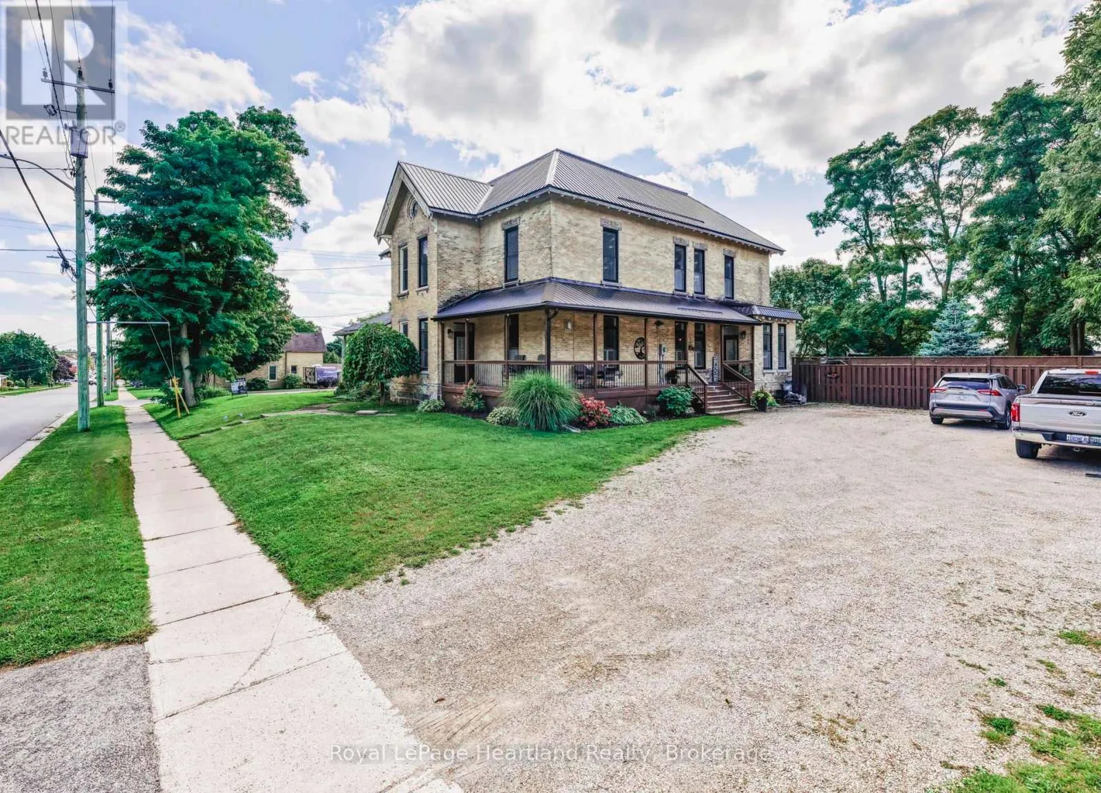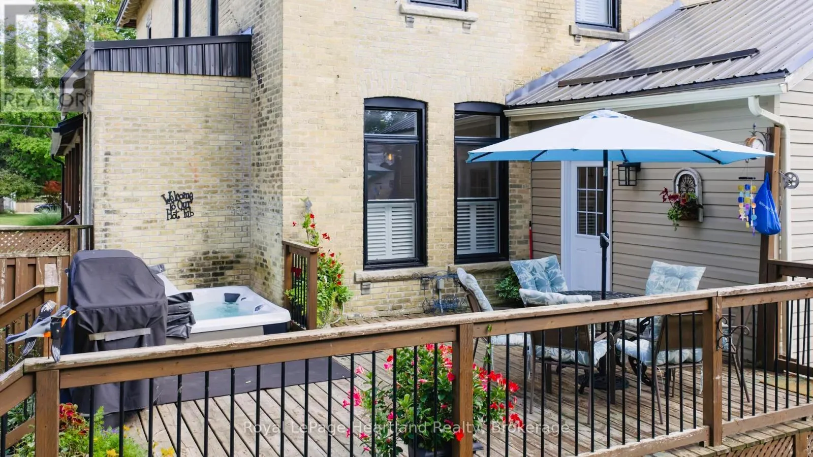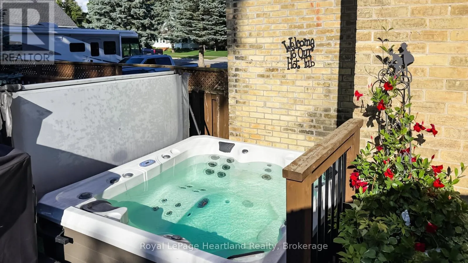 Cross Streets: Whitehead and Albert. ** Directions: Hwy 4 north of lights in Clinton, property on the west side at John St/Whitehead St corners. Get the best of both worlds with this completely redone Victorian Semi-Detached home on a very large 82.5' x 132' lot with a fenced rear, beautifully landscaped yard, rear deck & hot tub. A covered wrap-around front porch and ample parking spaces, including space for a large RV Trailer/motorhome/transport truck, make this property unique. This home was completely renovated in 2023, including windows, wiring, plumbing, flooring throughout, drywall/insulation, new furnace, air exchangers, trim, a huge open kitchen (quartz counters) into a dining and living area featuring luxury vinyl plank flooring, living room with gas fireplace, lots of counter and cupboard space, and a 2 pc bathroom at the rear of the main floor. Upstairs features 3 bedrooms, including a primary bedroom with a large walk-in closet and cheater suite access to a 4 pc bathroom/laundry with a custom walk-in shower and separate soaker tub. There is also stairwell access to a huge attic space that has the potential to be converted to living space. California Shutters are on every window. If you're looking for the charm of a Victorian home on a very large lot with the conveniences of a new/updated living space, then check this home out! (id:27476)