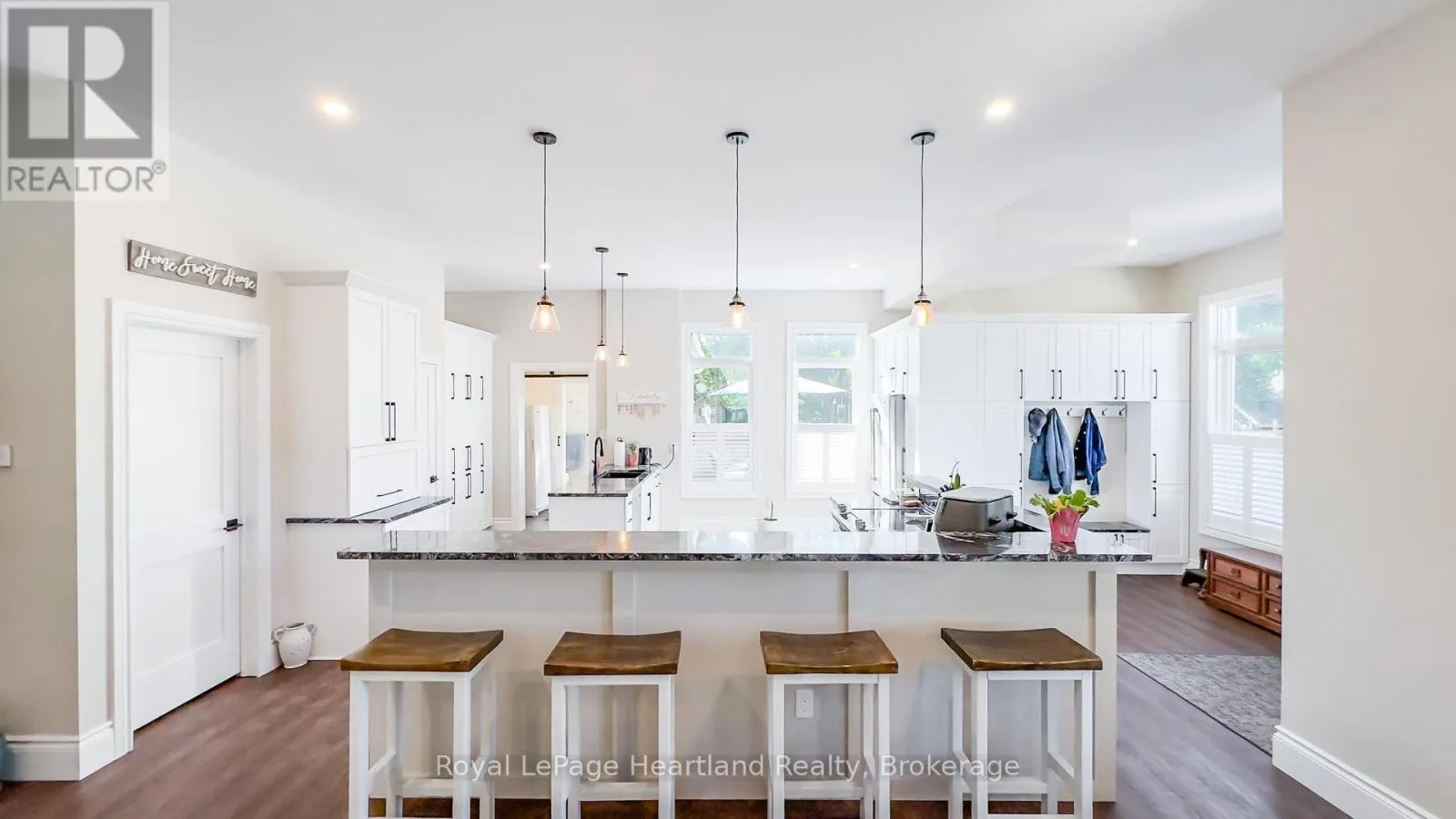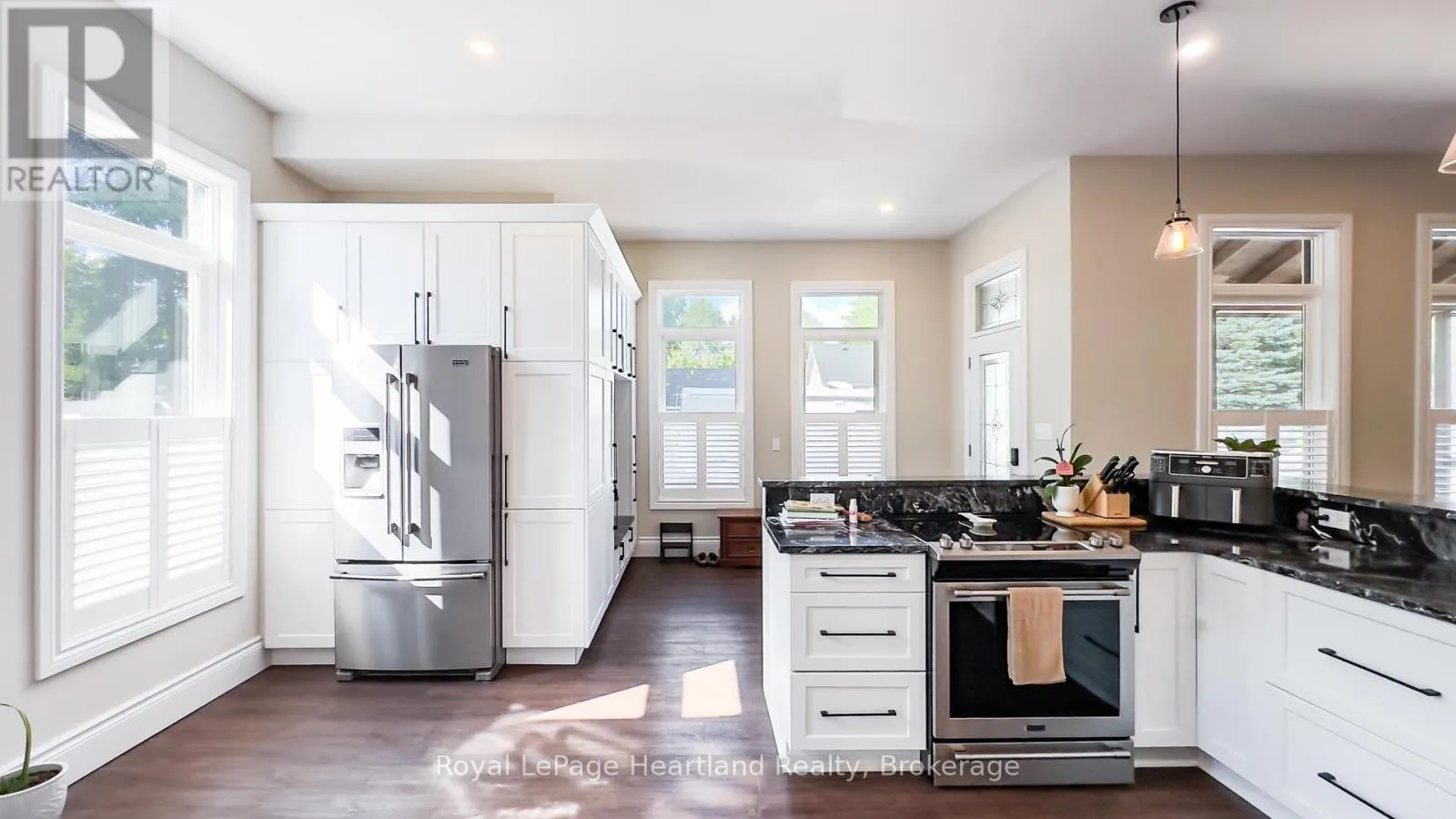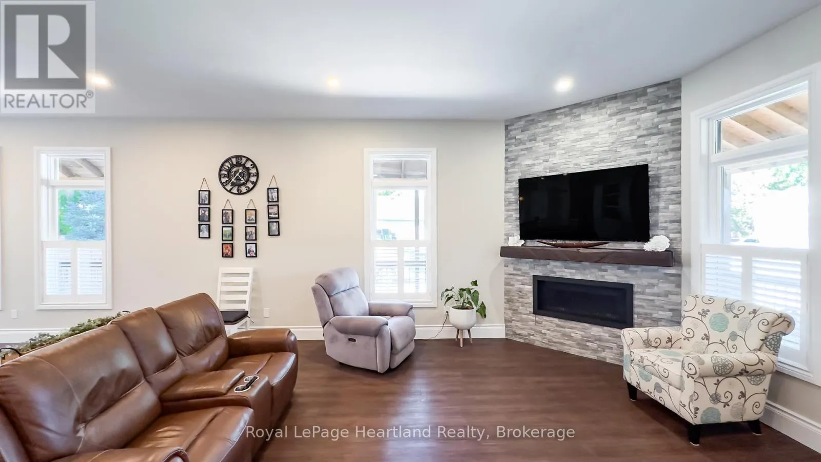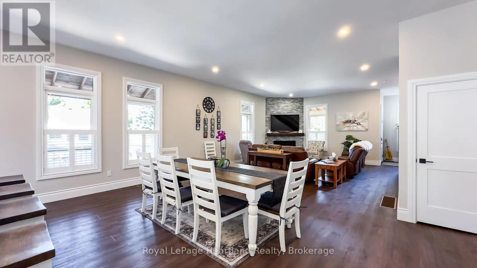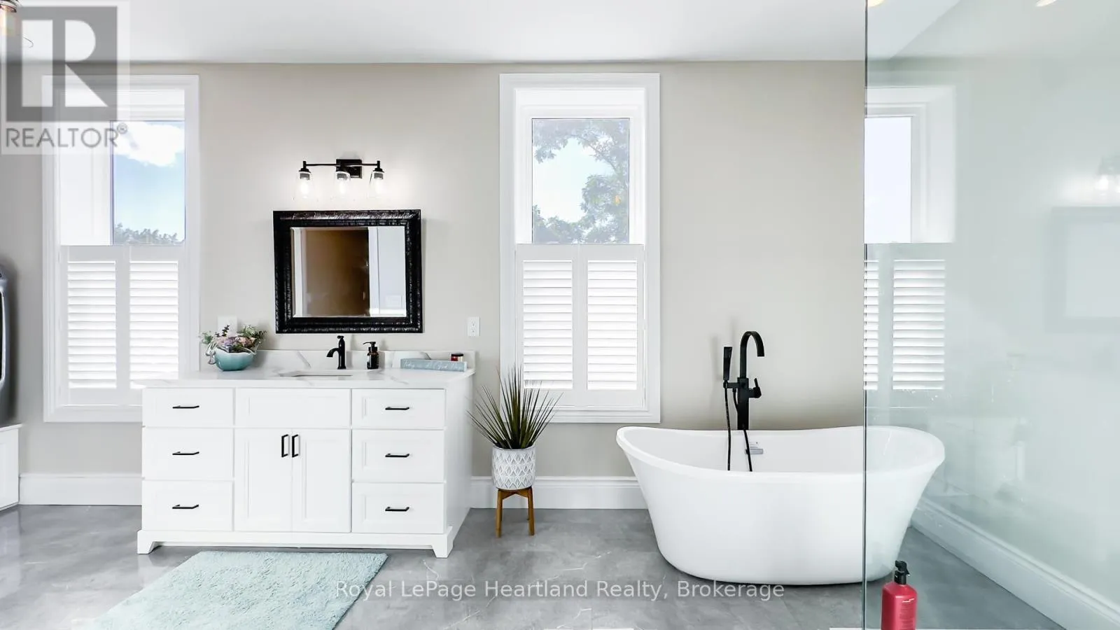 Cross Streets: Whitehead and Albert. ** Directions: Hwy 4 north of lights in Clinton, property on the west side at John St/Whitehead St corners. Get the best of both worlds with this completely redone Victorian Semi-Detached home on a very large 82.5' x 132' lot with a fenced rear, beautifully landscaped yard, rear deck & hot tub. A covered wrap-around front porch and ample parking spaces, including space for a large RV Trailer/motorhome/transport truck, make this property unique. This home was completely renovated in 2023, including windows, wiring, plumbing, flooring throughout, drywall/insulation, new furnace, air exchangers, trim, a huge open kitchen (quartz counters) into a dining and living area featuring luxury vinyl plank flooring, living room with gas fireplace, lots of counter and cupboard space, and a 2 pc bathroom at the rear of the main floor. Upstairs features 3 bedrooms, including a primary bedroom with a large walk-in closet and cheater suite access to a 4 pc bathroom/laundry with a custom walk-in shower and separate soaker tub. There is also stairwell access to a huge attic space that has the potential to be converted to living space. California Shutters are on every window. If you're looking for the charm of a Victorian home on a very large lot with the conveniences of a new/updated living space, then check this home out! (id:27476)