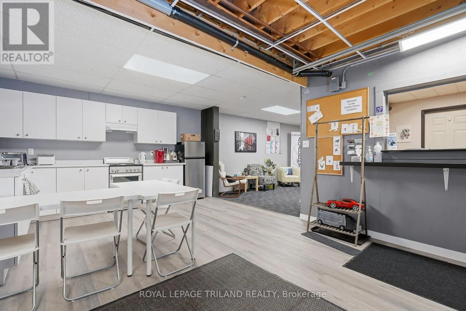 Cross Streets: Princess St W. ** Directions: Between Princess St W and Rattenbury St E. Position your business for success in this charming and well-located commercial space in the heart of downtown Clinton. Situated within a historic building rich in character, this exceptional leasing opportunity offers a refined and versatile layout suited to a variety of professional or boutique uses. The property features approximately 810 square feet of prominent front retail space, 1,258 square feet of expansive main studio space, and an additional 1,258 square foot lobby and office area, creating an ideal balance of visibility, functionality, and flow. A welcoming reception presence at the front enhances client experience while the generous studio and office areas allow for seamless operations. The space may be leased in its entirety by a single tenant seeking a distinguished downtown presence, or the landlord is open to curated subleasing arrangements on a fixed-term or hourly basis. Please note that a small storage room and basement storage area are excluded from the leased premises. This is a rare opportunity to establish or expand your business in a prime central location with flexible occupancy options tailored to your operational needs. Gas and electricity are separately metered and not included in the lease rate. (id:27476)