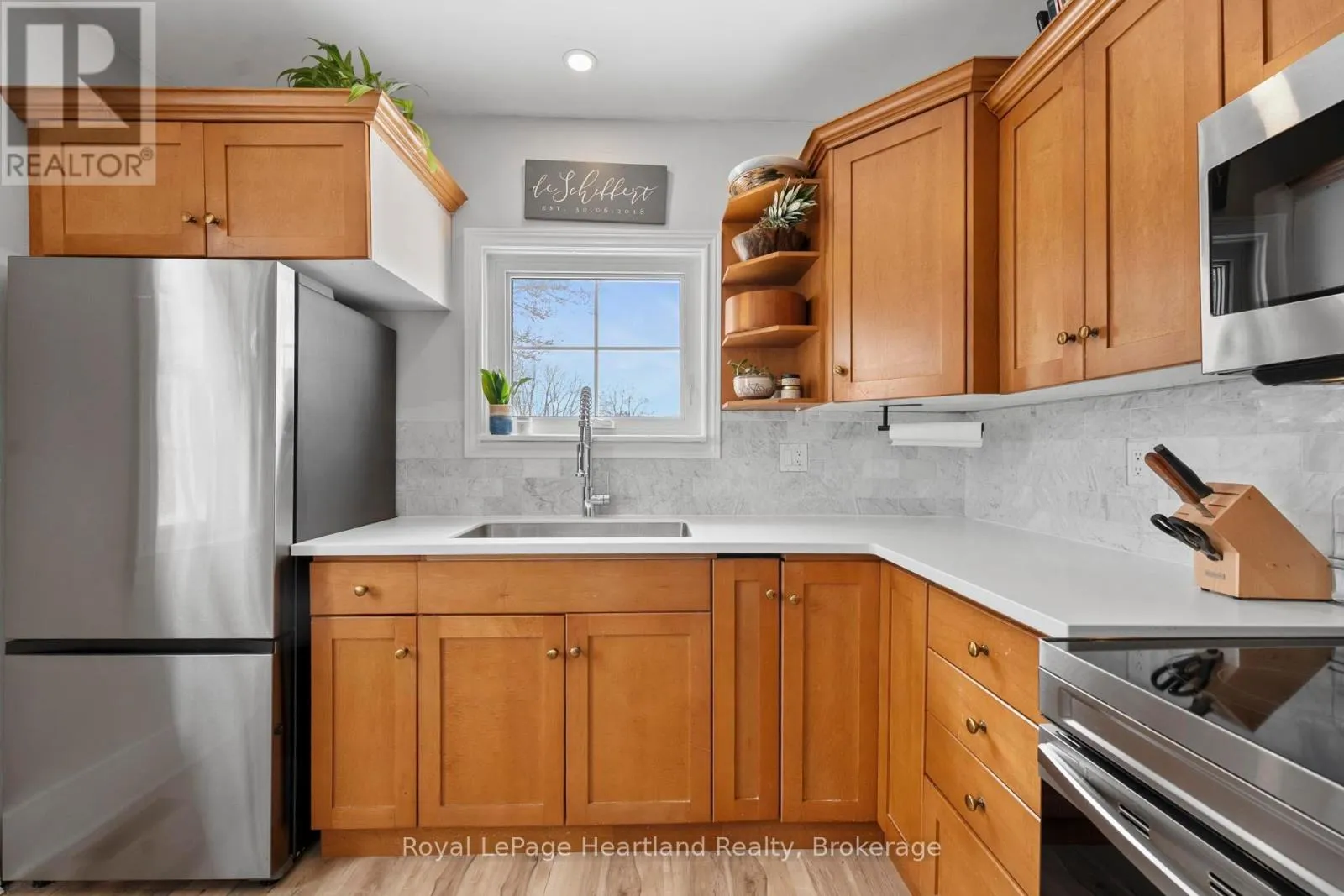 Cross Streets: Albert/Mill. ** Directions: Driving North on Hwy 4 through lights in Clinton, property on West side of Albert Street, across from Mill St. Welcome to 108 Albert Street, Clinton - a three-bedroom brick home with stunning Tudor style architecture. This home features the charm of a 1942 build, with modern updates throughout for comfortable living. Original flooring, trim and doors paired with updated windows, electrical, plumbing and a beautifully renovated custom kitchen with new appliances - this home is a unique gem in the heart of Huron County. The main floor features a sizeable entryway/coatroom and an open-concept dining and living space, with ample natural light. You will also find a bedroom and full bathroom for convenient main floor living. Upstairs, there are two more sizeable bedrooms with ample closet space, and a balcony off the second bedroom. The full, partially finished basement has been recently renovated (2025), providing another living space/rec-room, or office to suit your needs. The basement offers ample storage space and many mechanical upgrades, such as a new hot water heater. The home's exterior is just as impressive, featuring beautifully landscaped gardens, a detached garage and two driveways for ample parking. The large backyard features a newly poured pad for backyard hangouts, a blooming magnolia tree in the spring and a new fence. Located in the quaint town of Clinton, just 15 minutes from Lake Huron and an hour from London, this home is ready for its next owners. Don't hesitate to check this one out! (id:27476)