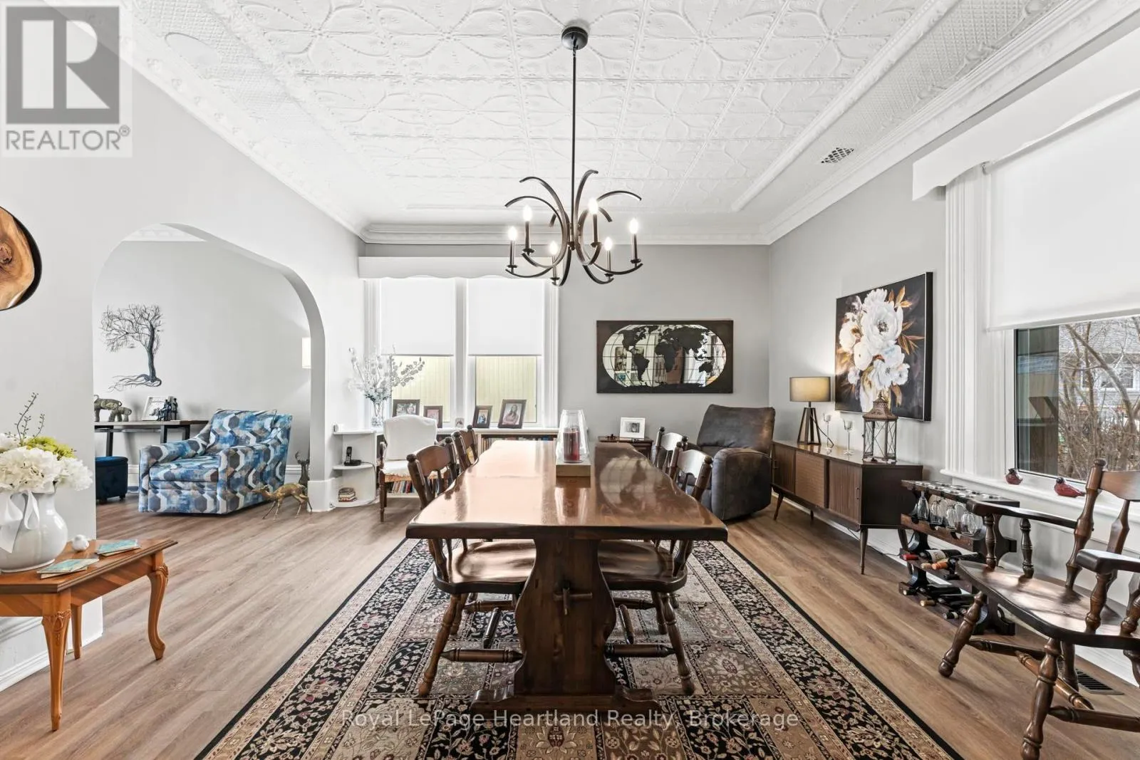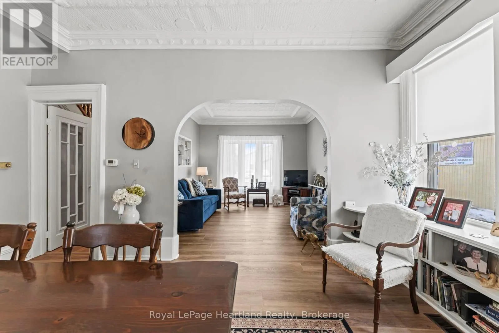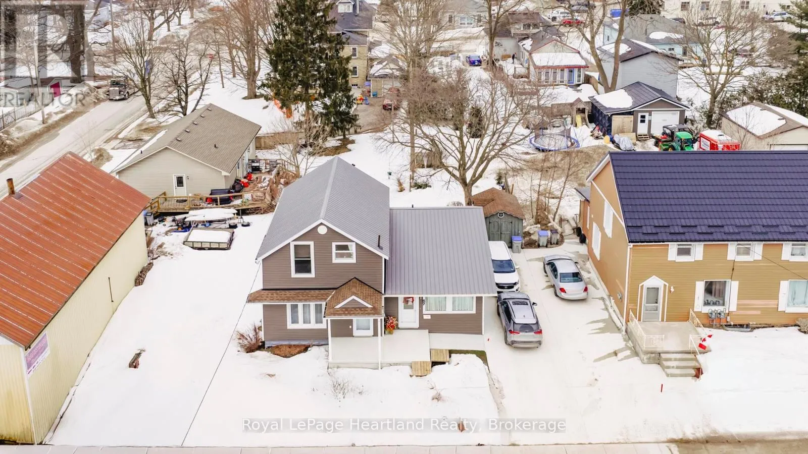 Cross Streets: Huron Street and Orange Street. ** Directions: Go west from main intersection in Clinton on Huron St. property on right in 1st block. Historic Charm Meets Modern Comfort in the Heart of Clinton! Perfectly situated just one block from the downtown shopping district, this stunning 3-bedroom home offers a rare blend of preserved history and modern functionality. The moment you step into the formal living and dining rooms, you are greeted by the beauty of the original decorative tin ceilings, a timeless detail that adds immense character to the home. The main floor transitions seamlessly into a spacious open-concept heart of the home, featuring a large kitchen with oak cabinetry, a functional island, and a dedicated TV room. Cooking is an experience here with the built-in Jenn-Aire countertop stove and BBQ, complemented by a wall oven and garburator, the balance of the appliances and portable generator are negotiable. The second floor serves as a private retreat with three bedrooms and a well-appointed bathroom featuring a relaxing whirlpool tub. Outside, the property is designed for those who love to entertain, offering both a ground-level rear deck and a second-story deck for elevated views. The exterior is further enhanced by a recently poured cement driveway with parking for three vehicles, a welcoming front porch, and a dedicated cement pad perfect for a fire pit. Complete with a walk-out unfinished basement and a handy storage shed, this vinyl-clad gem is ready for its next chapter. (id:27476)
