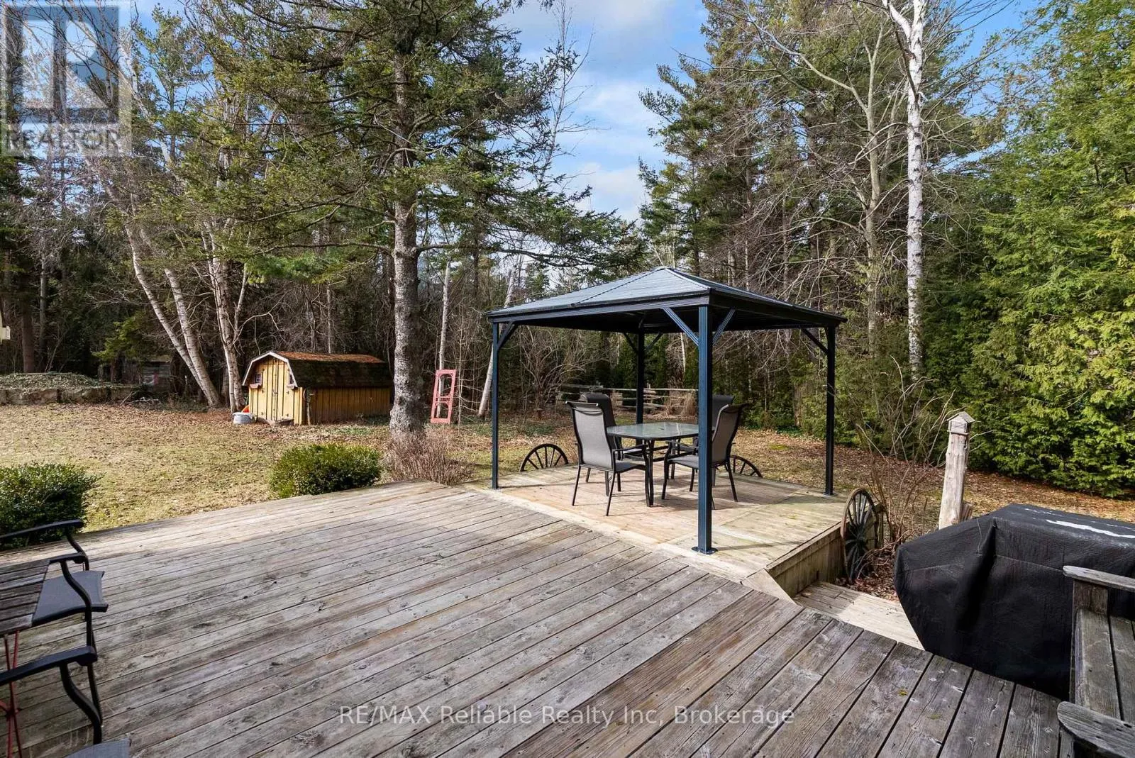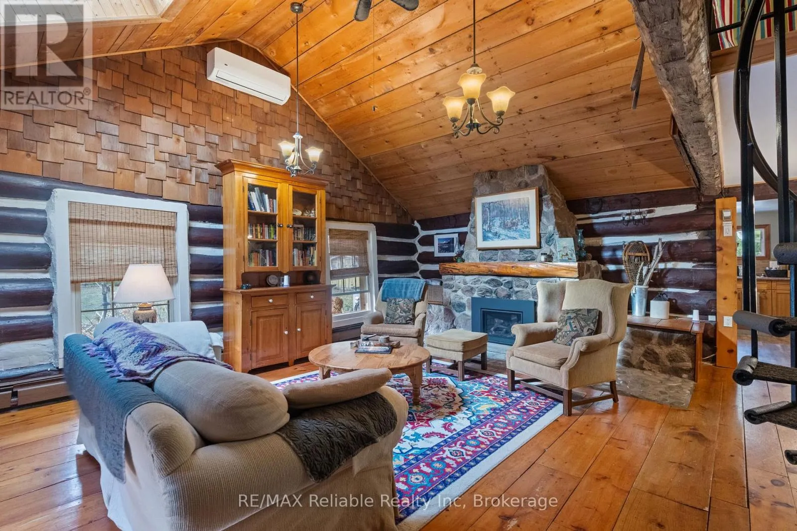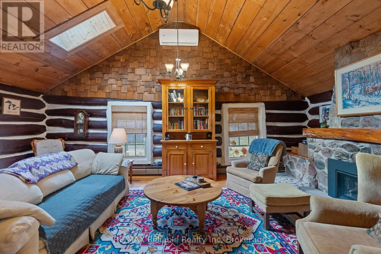 Cross Streets: Blacks Point Rd. ** Directions: Turn west off of Bluewater Hwy (21) on to Blacks Point Rd. Turn north (right) on to Watson Dr. Property is on west side (left). Tucked among the trees in a peaceful, private setting, this charming log cabin is looking for its new owners. It's the kind of place where mornings begin with coffee on the porch and end beside a crackling fire under quiet, star-filled skies. Set on a generous 0.682 acre lot, this log cabin and large detached garage could be used as a year round home, cottage or income property. The layout is both functional and full of original character. There is plenty of sleeping quarters with 2 spacious main floor bedrooms and an additional loft bedroom, that is accessed by a wrought iron spiral staircase. The main living room showcases a cathedral ceiling, skylight and a natural gas fireplace (2024) that is framed by a beautiful stone hearth and wood mantel. The back addition boasts a roomy kitchen and dining nook that offer a place to gather while visiting with family and friends. Off the kitchen, the 4 pc bathroom includes laundry and a bathtub surround that was updated in 2023. There is a cozy wood stove in the sunroom, that has access to the deck. The backyard is complete with a gazebo, a natural gas BBQ hookup and garden shed. A large detached garage offers incredible versatility - ideal for storage, a workshop or the ultimate hangout space with its bar & loft area. There is a circular driveway and ample parking. Additional features include a durable metal roof, drilled well and an Ecoflo septic system. Heat pumps that were recently installed in both the cabin and the detached garage provide additional, efficient heating and cooling. This property has been very well maintained and updated over the years. Move-in ready and including all appliances and most furnishings. Located just minutes south of Goderich and a short drive to Bayfield, you will enjoy easy access to shopping, dining and a short distance (walk or drive) to Lake Huron's stunning shoreline & sunsets. This one-of-a-kind property delivers comfort and convenience in a truly serene setting. Call today! (id:27476)