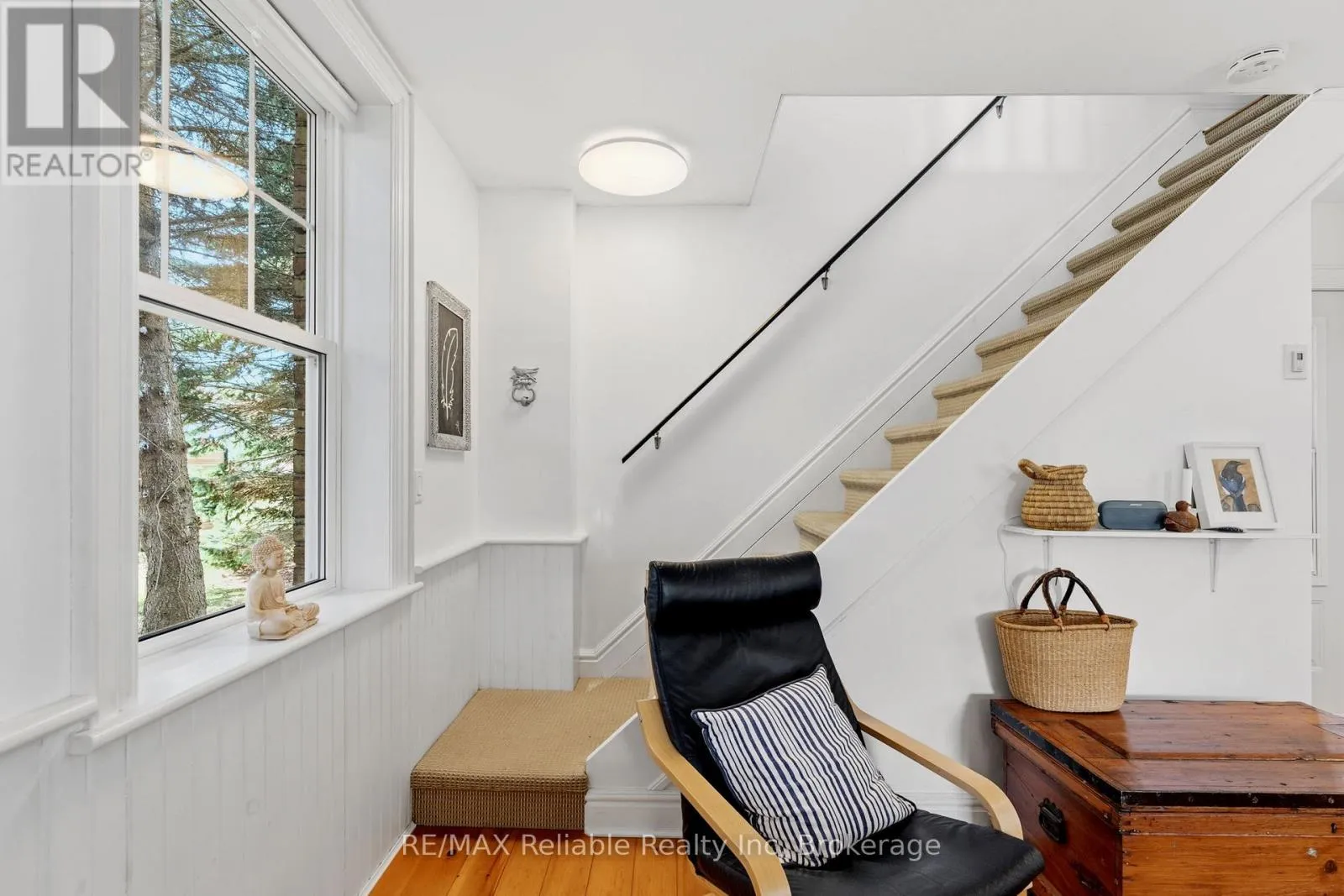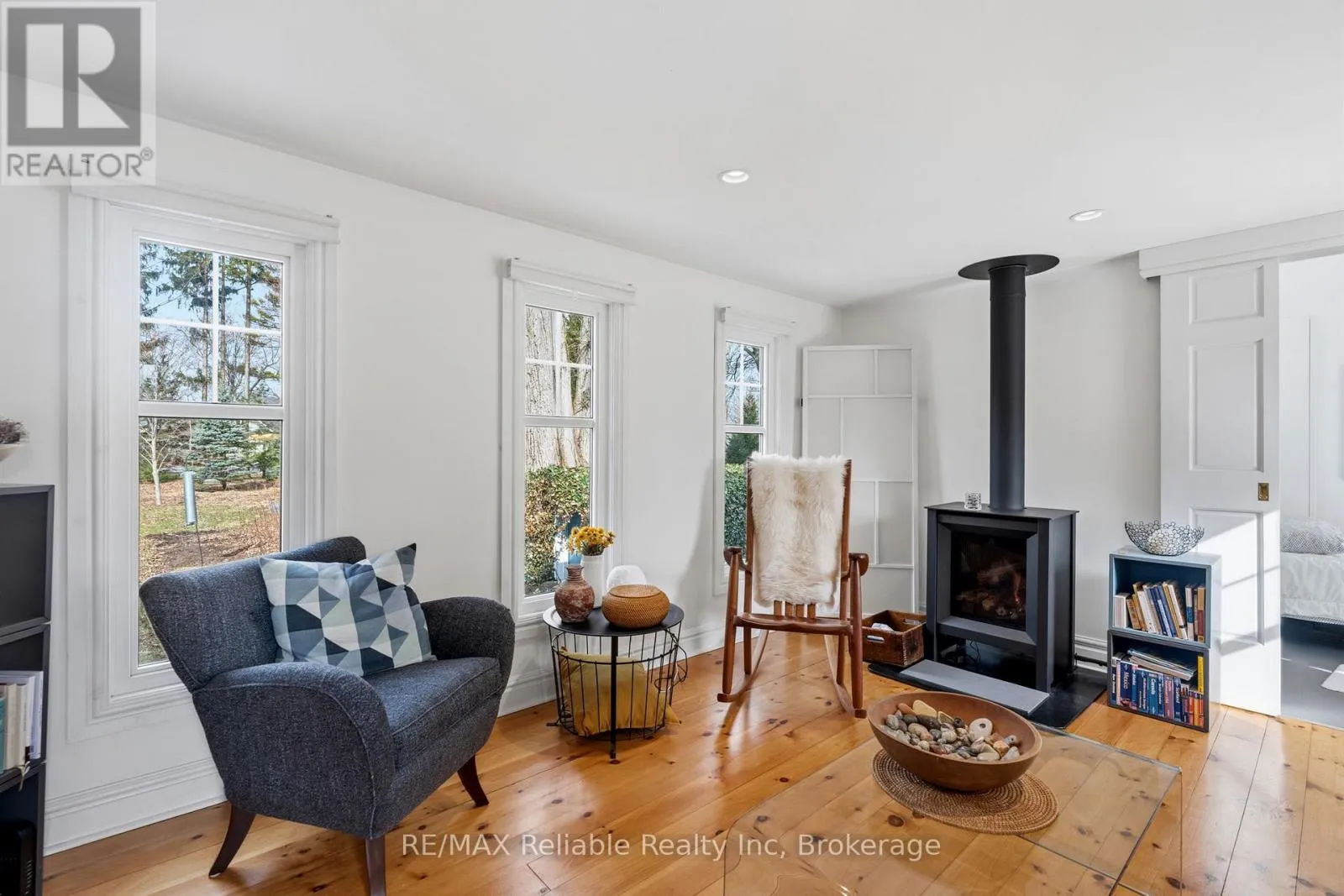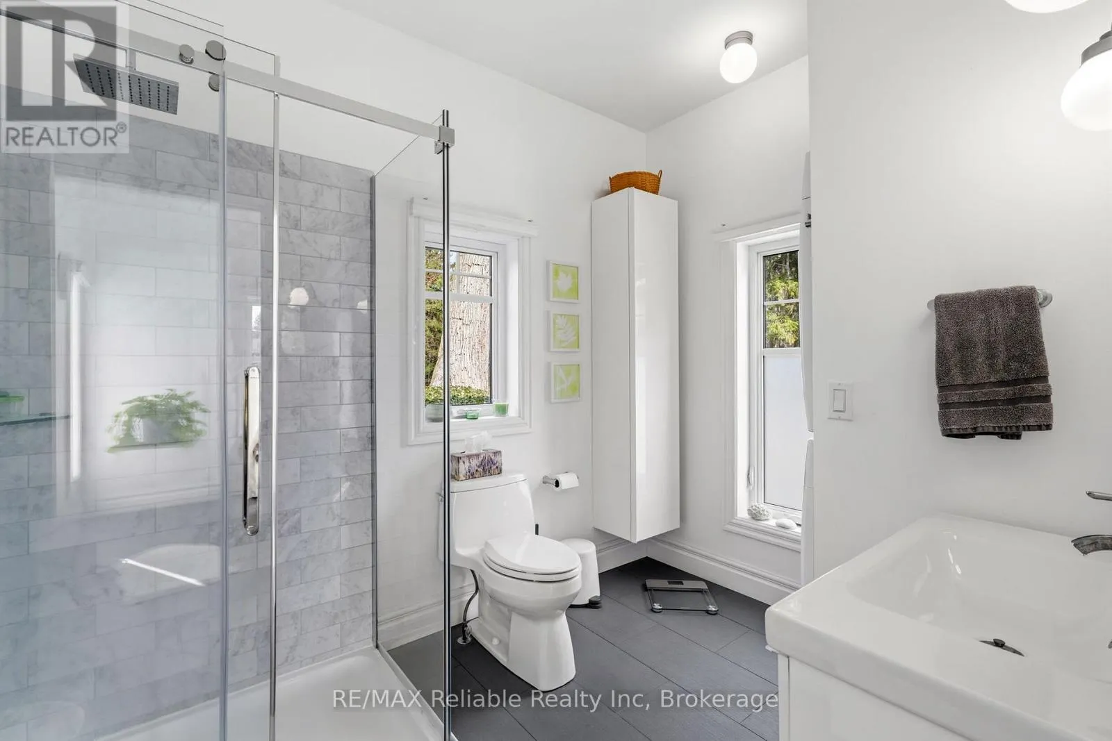 Cross Streets: Bluewater Highway and Bayfield Road. ** Directions: Bluewater Highway north of Bayfield Road. Tucked away in a peaceful setting well back from the highway, this charming 2 bedroom, 2 bathroom home offers privacy and tranquility just steps from Lake Huron and within walking distance to the Bluewater Golf Course. Originally a century yellow-brick farmhouse, this one-of-a-kind residence has been extensively renovated over the past10 years, with major updates including wiring, plumbing, HVAC, joists, and framing - blending timeless character with peace of mind. The bright, contemporary main floor features beautiful pine flooring throughout and a newly renovated Scandinavian-inspired kitchen and sitting area, complete with a walkout to an east-facing deck, perfect for enjoying morning coffee. Additional main floor highlights include a welcoming living room with a new gas stove, a guest bedroom with a stylish ensuite featuring a glass shower and integrated laundry. Upstairs, the spacious and private primary bedroom serves as a relaxing retreat, complete with its own 3-piece ensuite. Significant exterior upgrades include a new roof, vinyl siding, soffit, fascia, and eaves. The beautifully maintained grounds offer a thoughtful blend of manicured landscaping and naturalized areas, best enjoyed from the charming west-facing covered porch. Set on approximately 1.1 acres, the property also features a concrete parking pad and provides ample space for future expansion or the addition of a detached garage. Whether you're seeking a full-time residence, a weekend getaway, or an investment opportunity, this property is exceptionally affordable to maintain, with current all-in costs of approximately $7,300 per year. Minutes to Bayfield Main Street shops and restaurants. (id:27476)