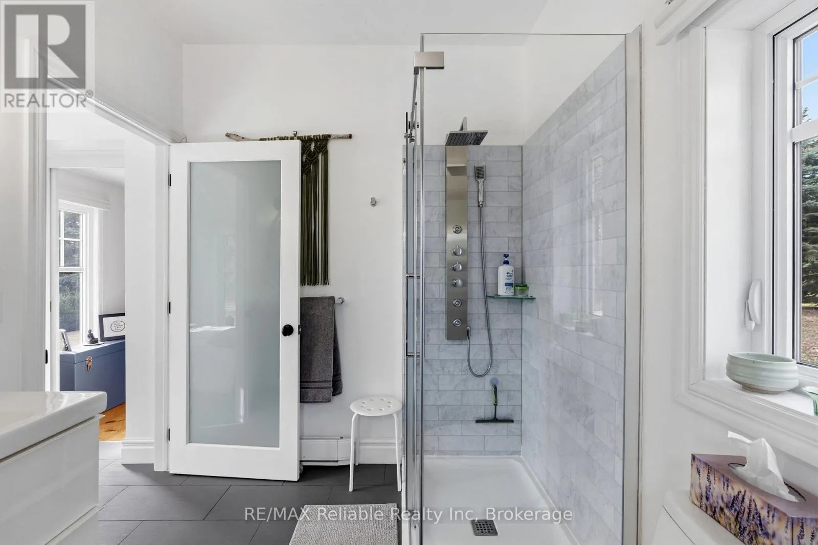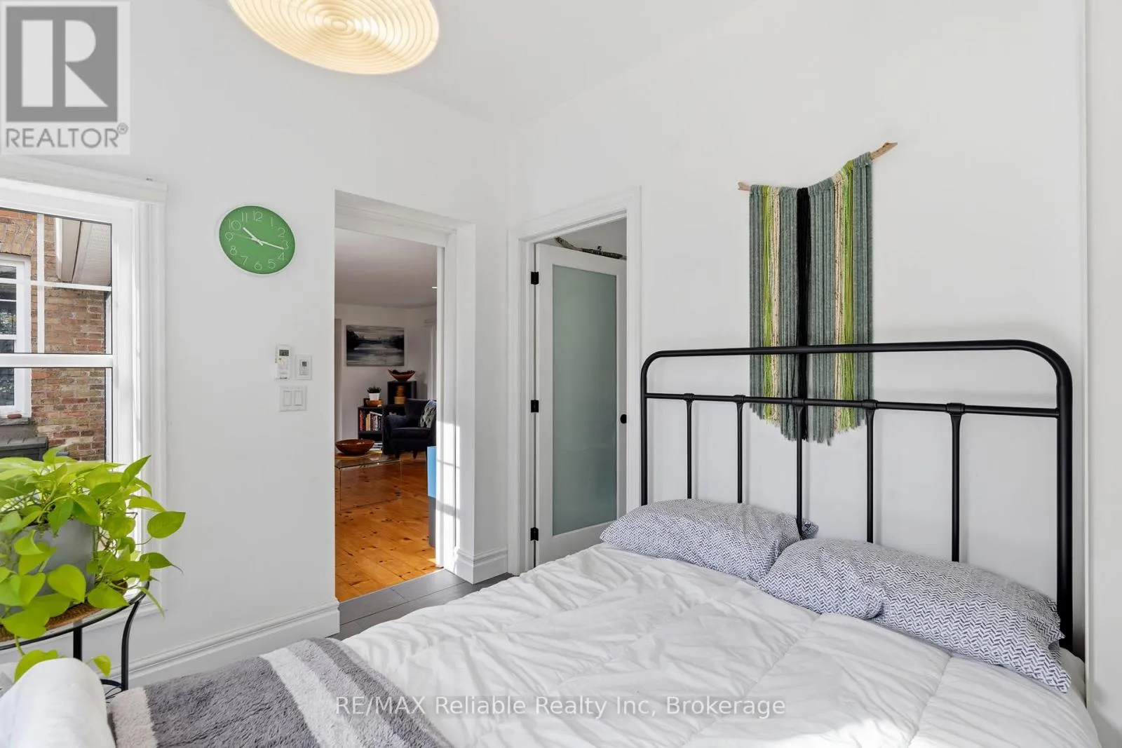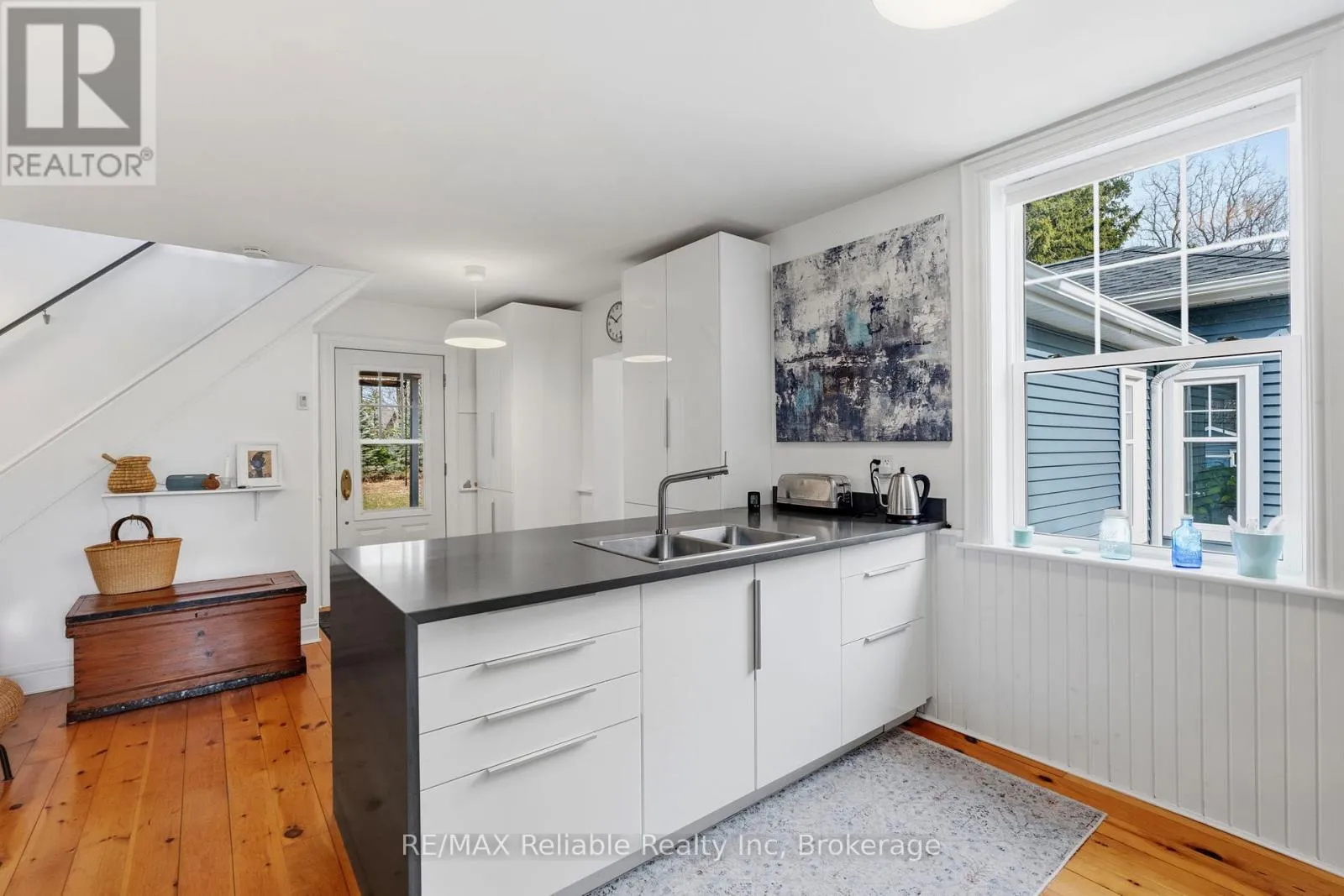 Cross Streets: Bluewater Highway and Bayfield Road. ** Directions: Bluewater Highway north of Bayfield Road. Tucked away in a peaceful setting well back from the highway, this charming 2 bedroom, 2 bathroom home offers privacy and tranquility just steps from Lake Huron and within walking distance to the Bluewater Golf Course. Originally a century yellow-brick farmhouse, this one-of-a-kind residence has been extensively renovated over the past10 years, with major updates including wiring, plumbing, HVAC, joists, and framing - blending timeless character with peace of mind. The bright, contemporary main floor features beautiful pine flooring throughout and a newly renovated Scandinavian-inspired kitchen and sitting area, complete with a walkout to an east-facing deck, perfect for enjoying morning coffee. Additional main floor highlights include a welcoming living room with a new gas stove, a guest bedroom with a stylish ensuite featuring a glass shower and integrated laundry. Upstairs, the spacious and private primary bedroom serves as a relaxing retreat, complete with its own 3-piece ensuite. Significant exterior upgrades include a new roof, vinyl siding, soffit, fascia, and eaves. The beautifully maintained grounds offer a thoughtful blend of manicured landscaping and naturalized areas, best enjoyed from the charming west-facing covered porch. Set on approximately 1.1 acres, the property also features a concrete parking pad and provides ample space for future expansion or the addition of a detached garage. Whether you're seeking a full-time residence, a weekend getaway, or an investment opportunity, this property is exceptionally affordable to maintain, with current all-in costs of approximately $7,300 per year. Minutes to Bayfield Main Street shops and restaurants. (id:27476)