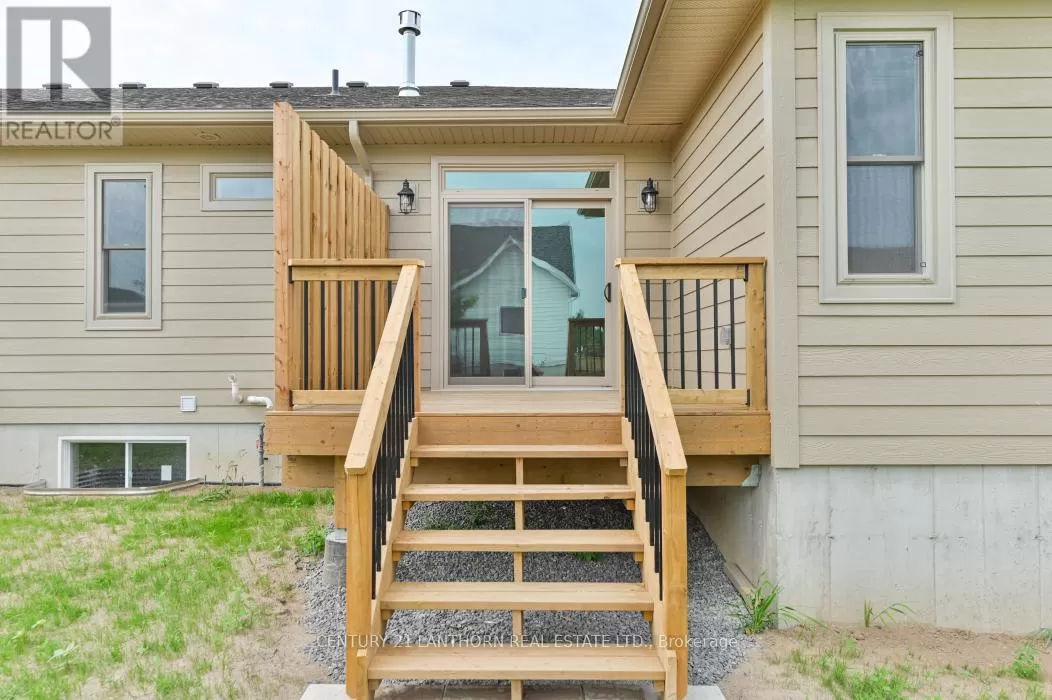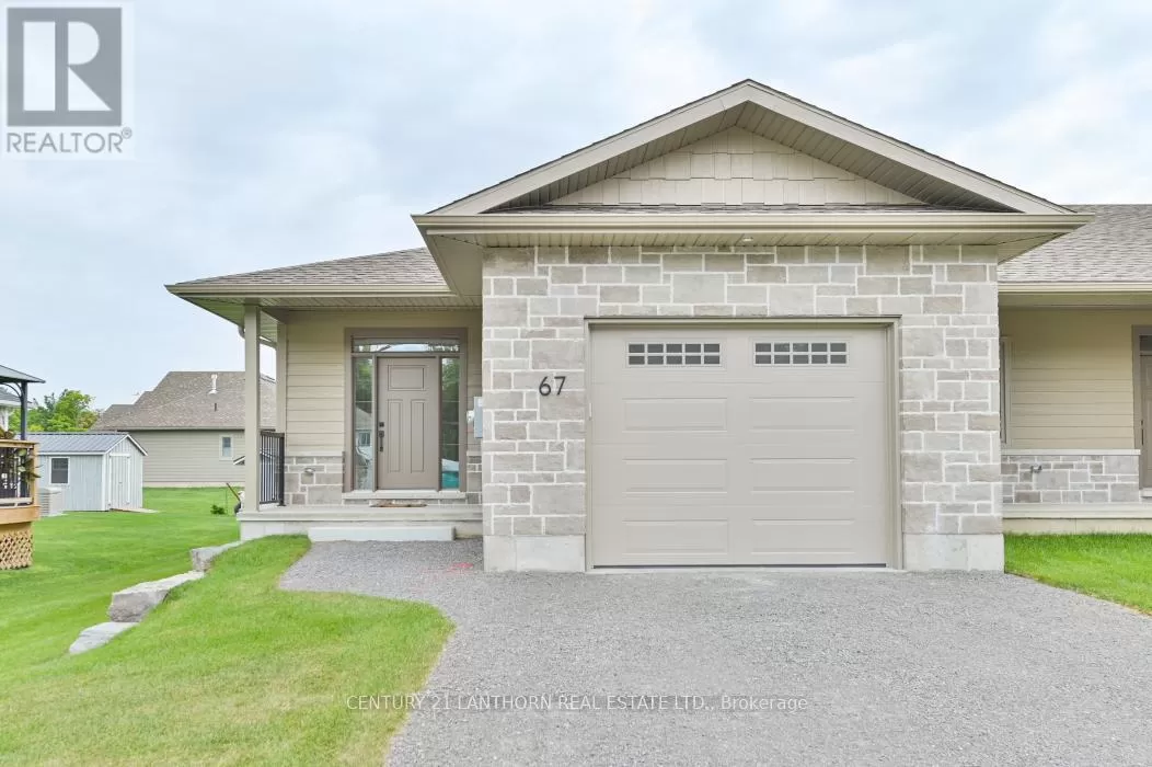 Cross Streets: Hwy 62/Seymour Street West. ** Directions: Hwy 62 to Seymour Street West. Welcome to 67 Seymour St. This end-unit townhouse is part of DeerCreek Homestead, Madoc's newest subdivision, and it boasts both charm and practicality. Spanning approximately 1200 sq ft on the main floor, this residence offers a perfect blend of modern amenities and cozy comforts. The covered front porch and insulated garage provides access directly into the house, ensuring ease and security. A bright, spacious, full unfinished basement awaits below, complete with a rough-in for a 4-piece bathroom and ample space for future expansion, whether it be additional bedrooms, a family room, or an office. Inside, on the main floor, the airy ambiance is accentuated by the 9-foot ceilings throughout, enhancing the feeling of openness. The heart of the home is the great room, boasting a cathedral ceiling and a gas fireplace, perfect for gatherings and relaxation. Engineered hardwood floors flow seamlessly, complemented by ceramic or porcelain tile in the bathrooms and laundry room. The gourmet kitchen is a chef's delight, featuring custom cabinetry and solid surface countertops. Whether preparing everyday meals or hosting dinner parties, this kitchen is as functional as it is stylish. The main floor also hosts a convenient laundry room, eliminating the hassle of trips to the basement. Retreat to the master bedroom, complete with an ensuite 3-piece bath featuring a custom glass-enclosed tiled shower. A guest bedroom and another bathroom provide additional comfort and privacy for family or visitors. Outside, a 10 x 10 pressure-treated deck offers a serene spot for enjoying morning coffee or evening sunsets. And with a high-efficiency forced air natural gas furnace, central air conditioning, and HVAC system, comfort is assured year-round, no matter the weather. In summary, this townhouse unit embodies the perfect fusion of modern convenience and timeless elegance, offering a welcoming retreat to call home. Covered by a Tarion New Home Warranty and ready for occupancy. (id:27476)