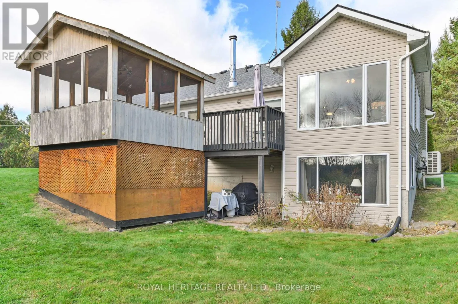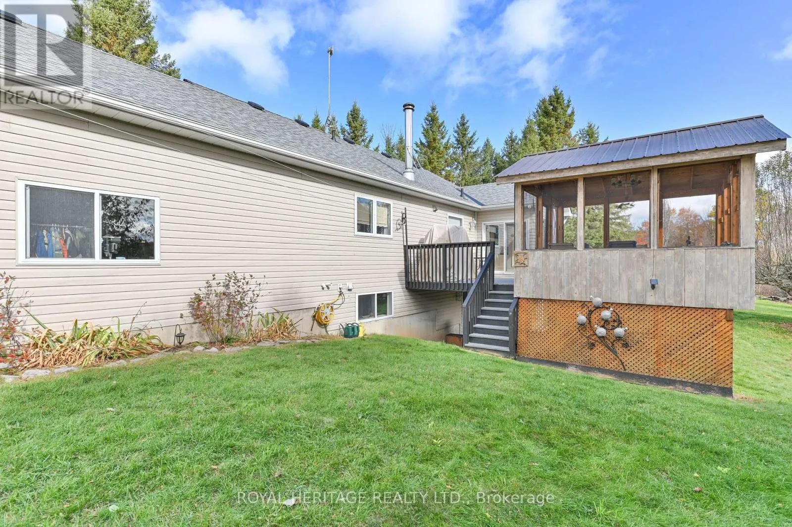 Cross Streets: Highway 62 north and Ray Road. ** Directions: Highway 401 to 62 North of Belleville, left onto Ray Road to property on south side. Nestled among mature trees and rolling hills, this custom-built bungalow offers the perfect blend of comfort, privacy, and natural beauty on over 5.5 scenic acres. Step inside to a bright, vaulted great room featuring gleaming hardwood floors, a spacious dining area ideal for family gatherings, and a large entertainer's island overlooking the inviting sunroom lounge. Enjoy your morning coffee or evening stargazing from the deck and screened gazebo-a serene escape surrounded by nature. The main floor features a spacious primary bedroom with double closets, a beautifully appointed shared main bath, and a generous second bedroom. Convenient main floor laundry and mudroom provide direct access to the oversized, insulated garage-perfect for hobbyists or extra storage. The finished lower level offers incredible flexibility with in-law or guest suite potential. The L-shaped family room includes a sunny sitting area and a walkout to the yard, plus a third bedroom with ensuite access to a full 3-piece bathroom. A large storage room and utility space complete this level. There are 4 outbuildings: great for storing riding mower, ATV or snowmobile and includes a tool shed. Outside, enjoy your own private retreat with mixed woodlands, a meandering creek, and endless opportunities to explore. The area offers beautiful trails for walking, ATVing, or snowmobiling, as well as nearby lakes and rivers perfect for boating, canoeing, and kayaking. (id:27476)