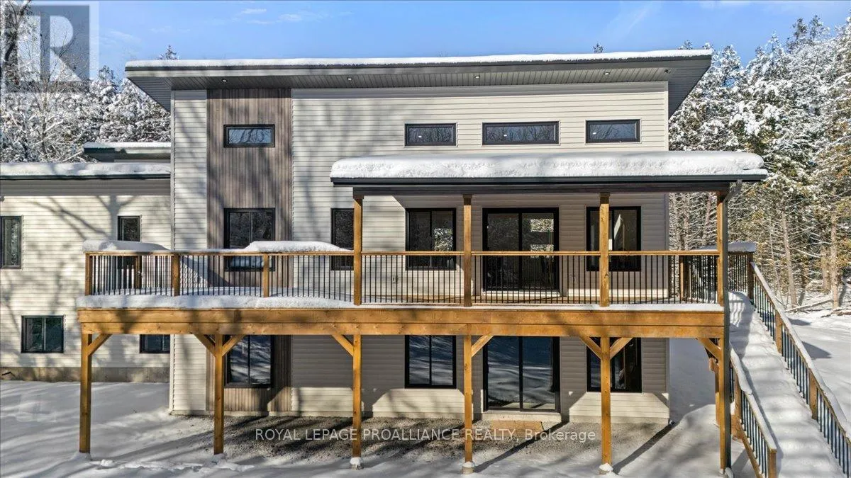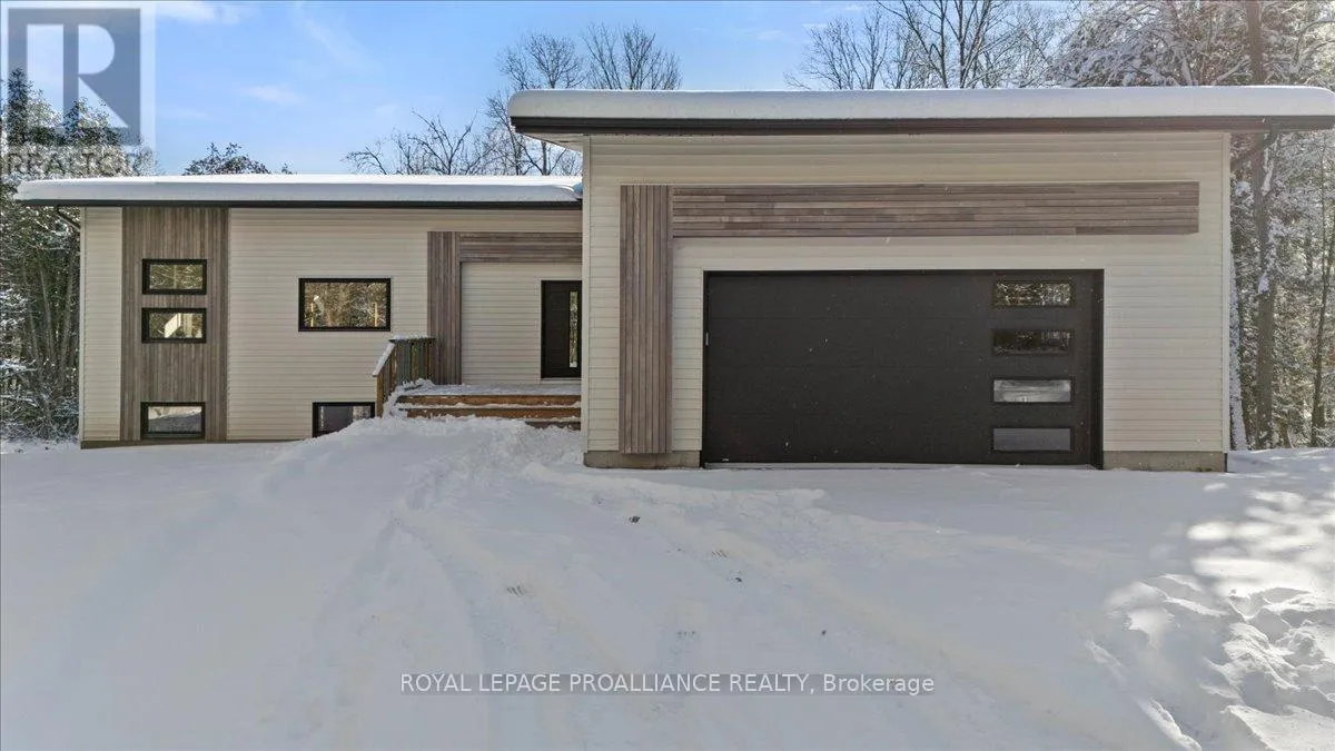 Cross Streets: Hwy 62. ** Directions: Take Hwy 62 to Slab St. Welcome to this bright, spacious and contemporary bungalow, perfectly set on a stunning wooded 1.93 acre lot in one of the areas most sought after neighborhood's. This brand-new build combines modern design with high-quality finishes and the peaceful charm of a private, treed setting. The home features an open-concept floor plan with soaring vaulted ceilings and beautiful hardwood flooring throughout the main level. Large windows fill the space with natural light, while the spacious living and dining areas flow seamlessly to the kitchen and out to the large covered rear deck ideal for relaxing and entertaining while surrounded by nature. Offering 2 bedrooms and 2 bathrooms (there is also a 3rd bath plumbed in the basement), including a luxurious ensuite, this home is thoughtfully designed for comfort and style. The full walkout basement provides excellent potential for additional living space, hobbies, or storage. You will be wowed by the beautiful bright and spacious attached two-car garage. Opportunity to enjoy contemporary living in a private, wooded setting this home is move-in ready and has a full Tarion Warranty. If Modern Country Hideaway is your vibe - it is here - waiting for you!! (id:27476)