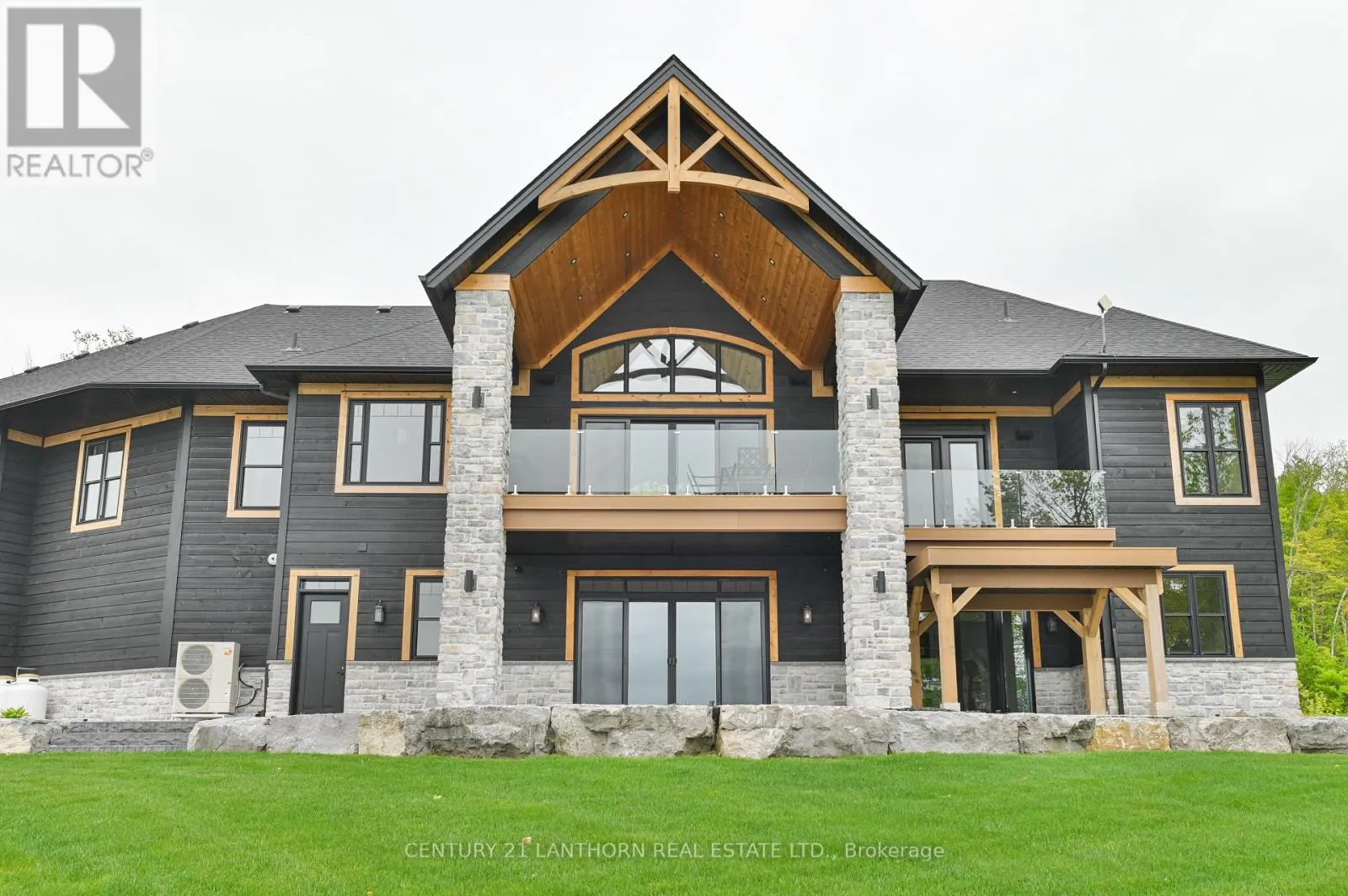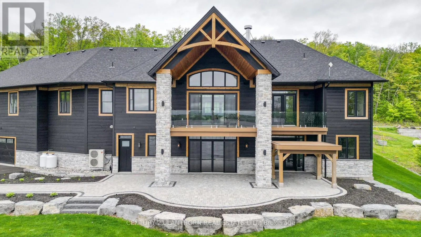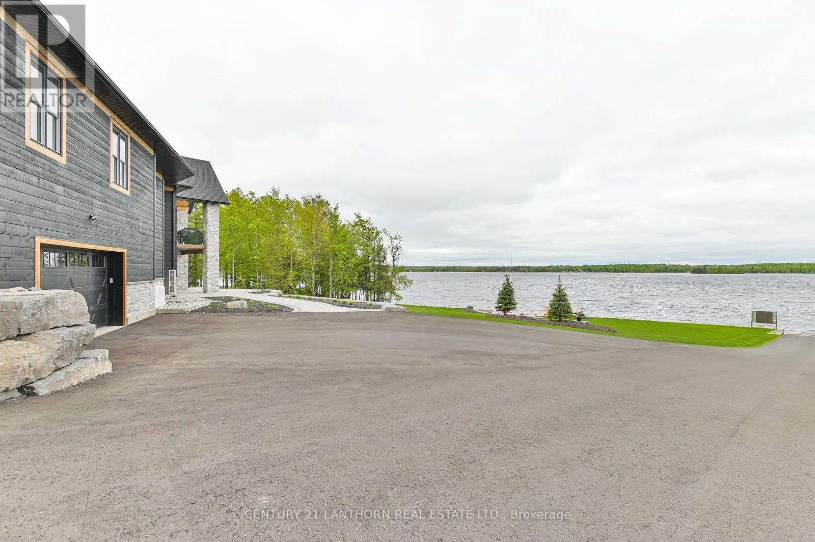 Cross Streets: Quin-Mo-Lac Rd/Mile Pt Lane. ** Directions: HWY 62 to Quin-Mo-Lac Rd to Mile Point Lane. Lake life at its finest! Check out this exceptional 4-bedroom, 5-bath waterfront home located on the highly sought-after south shore of Moira Lake, and offering over 4,800 sq. ft. of beautifully finished living space with unobstructed lake views. Located in an area of newer customs homes and offers immaculate landscaping, a private boat launch, and hard-bottom shoreline make this a rare and impressive offering. A paved circular driveway leads to a triple garage with epoxy floors, plus a bonus lower-level garage with access all the way down to the water. Smart home technology throughout both levels provides modern convenience. A stone-pillared entrance welcomes you into a vaulted foyer that opens to the great room, where breathtaking lake views take center stage. Wide-plank flooring throughout adds timeless sophistication, while a custom stone wood-burning fireplace anchors the open-concept kitchen and living area, featuring matching stonework and a large center island-ideal for entertaining. A spacious formal dining room with an office area completes the main living space. The main level includes two bedrooms, highlighted by a luxurious primary suite with private deck access and a spa-like 5-piece ensuite with soaker tub and walk-in shower. The fully finished walkout lower level offers a large rec room with propane fireplace, bar rough-in, games room suitable for a pool table or golf simulator, theatre room, 10'x16' cold room, two additional bedrooms, two baths, and access to a finished patio overlooking the waterfront. Professionally landscaped grounds include an irrigation system, stamped concrete firepit area at the water's edge with stone island and bar fridge, an aluminum docking system with depth to dive in for a dip to cool off, finished with armor stone break wall and erosion-proof river stone. Enjoy excellent boating and fishing, with close proximity to the Heritage Trail for ATV and snowmobile use. No expense spared. Approx. 2 hours to Toronto or Ottawa. (id:27476)