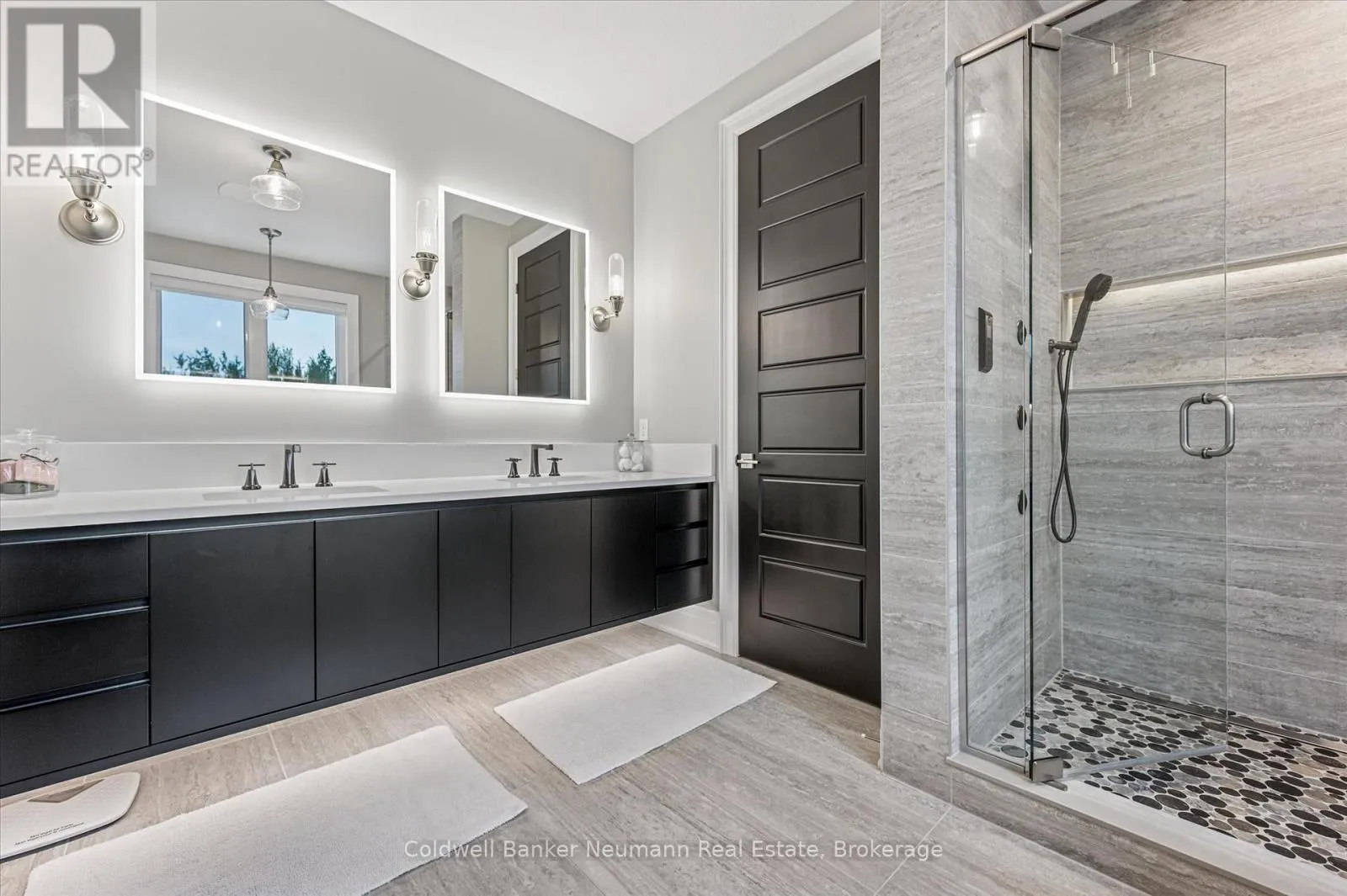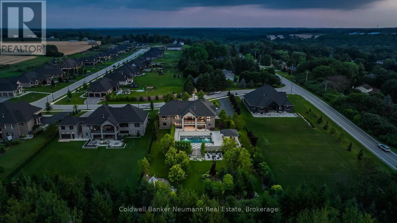 Side Rd 4 and Wellington Rd 21 Nestled on a pristine 3/4 acre lot in the coveted Swan Creek Estates community, this exquisite all-stone bungalow redefines luxury living. With over 5,000 sq ft of masterfully crafted space, every detail of this ENERGY STAR certified residence speaks to sophistication and comfort. From the moment you enter through handcrafted Canadian mahogany doors, you're enveloped in architectural grandeur vaulted ceilings, 8' doors, and expansive windows that bathe the interiors in natural light. The open-concept design flows seamlessly through curated living spaces, featuring custom millwork, a sleek linear fireplace, and heated polished concrete floors on the lower level. The gourmet kitchen is a culinary showpiece, complete with integrated high-end appliances, bespoke cabinetry, a generous prep island, and a butlers pantry designed for effortless entertaining. Five bedrooms and four spa-inspired bathrooms including a serene primary ensuite with in-floor heating offer a retreat-like ambiance throughout. Step outside to discover a private oasis. The resort-style grounds showcase award-winning landscaping, a custom year-round pool with tanning ledges and ambient lighting, a charming Muskoka playset, and a built-in fire pit perfect for twilight gatherings. A cedar-lined pool house with private change rooms and an outdoor shower adds a touch of rustic luxury. This is more than a home its a lifestyle of elegance, comfort, and connection to nature. Schedule your private showing today and experience it for yourself. (id:27476)