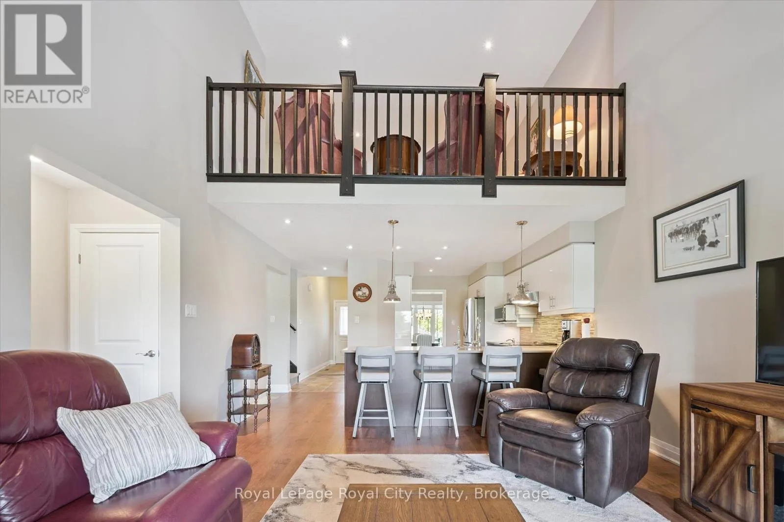 Cross Streets: MCQUEEN BLVD AND ABERDEEN ST. ** Directions: MCQUEEN TO ABERDEEN. PROPERTY ON THE LEFT SIDE. This gorgeous and spacious executive bungaloft townhome in Centre Wellington is truly one of a kind. Built in 2017, this home provides an exceptional blend of luxury and functionality with over 2300 sq ft of living space. The main floor boasts an open-concept layout with a soaring vaulted ceiling in the living area. The large primary bedroom is a serene retreat, complete with an ensuite and a walk-in closet. A convenient main-floor laundry room adds to the ease of single-level living. Step outside from the living room onto the covered and upgraded composite deck, where you can enjoy the peaceful backdrop. The amazing loft level features a large family room, another spacious bedroom, and a full bathroom. The finished walkout lower level is an incredible bonus, offering a huge recreation room, another full bathroom, and workshop/storage space. The lower level walkout opens onto a private patio with a view of the serene greenspace and pond. This property stands out with its unique two-car garage, which includes a hobby mezzanine level AND a separate lower storage level which opens to the backyard as well. Located in a desirable south-end location, you are just minutes away from all the amenities you need and have the perfect commuting location. This is a truly special home that must be seen to be appreciated. Explore the online floorplans and virtual tour, and then book your private viewing today. (id:27476)
