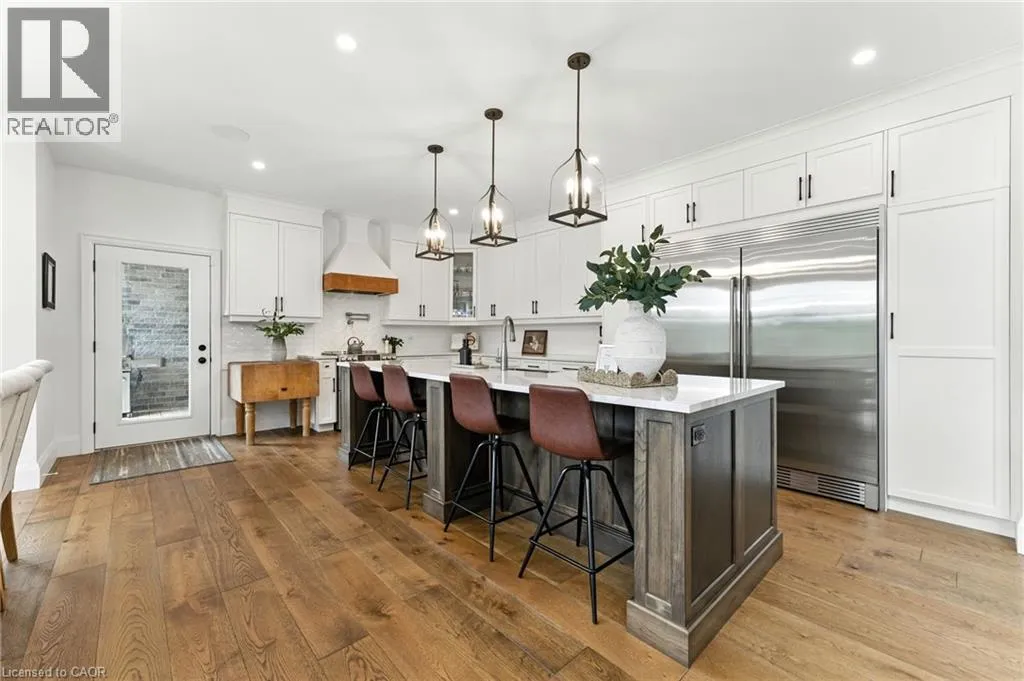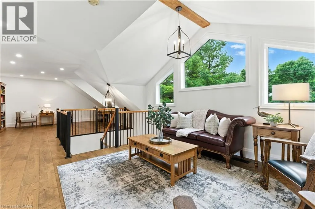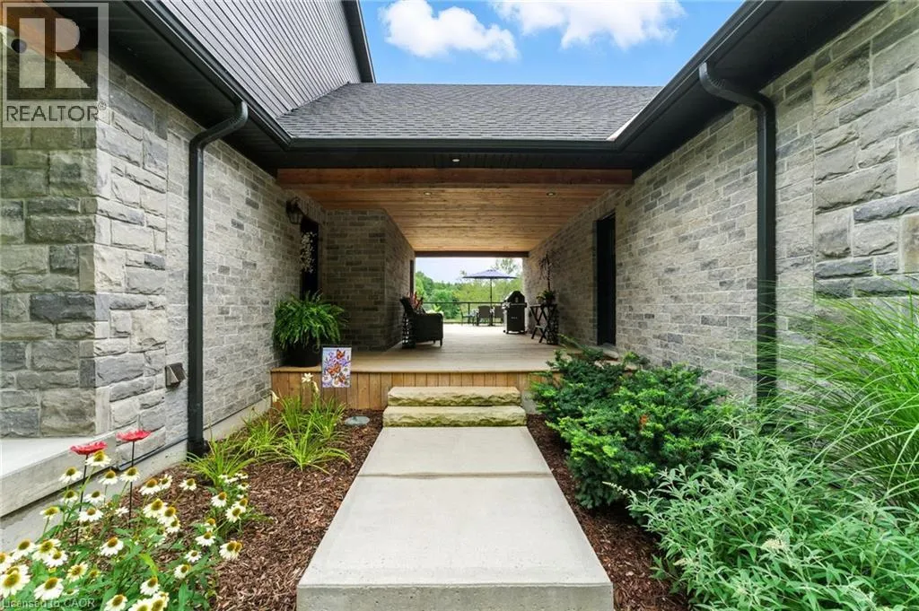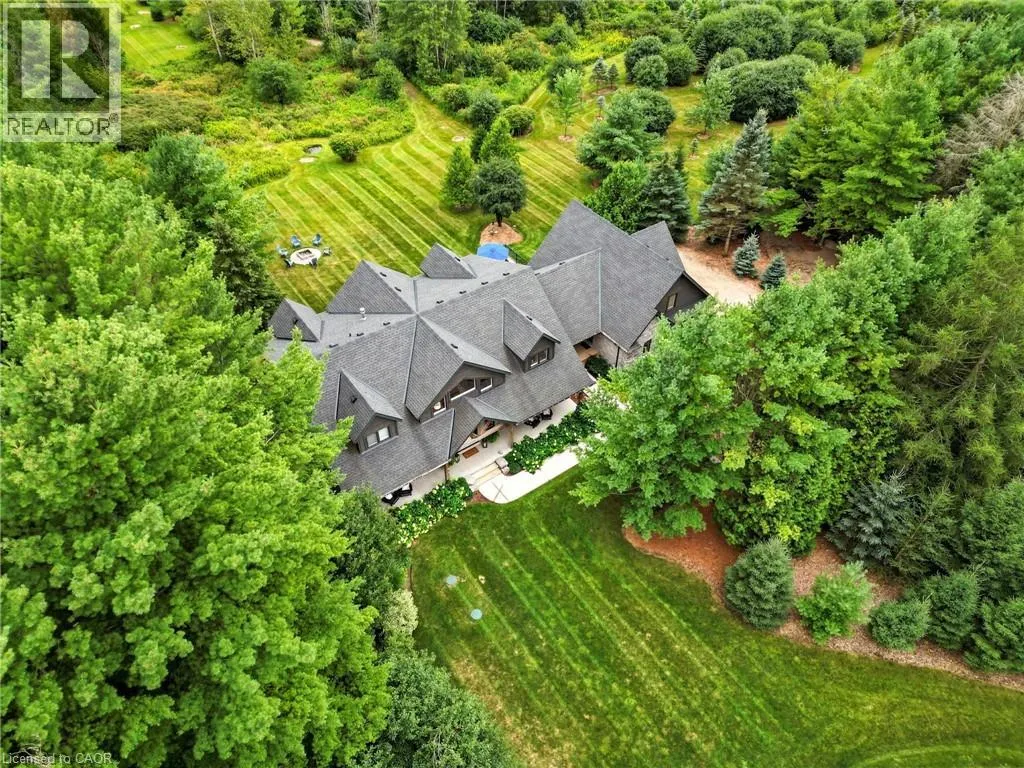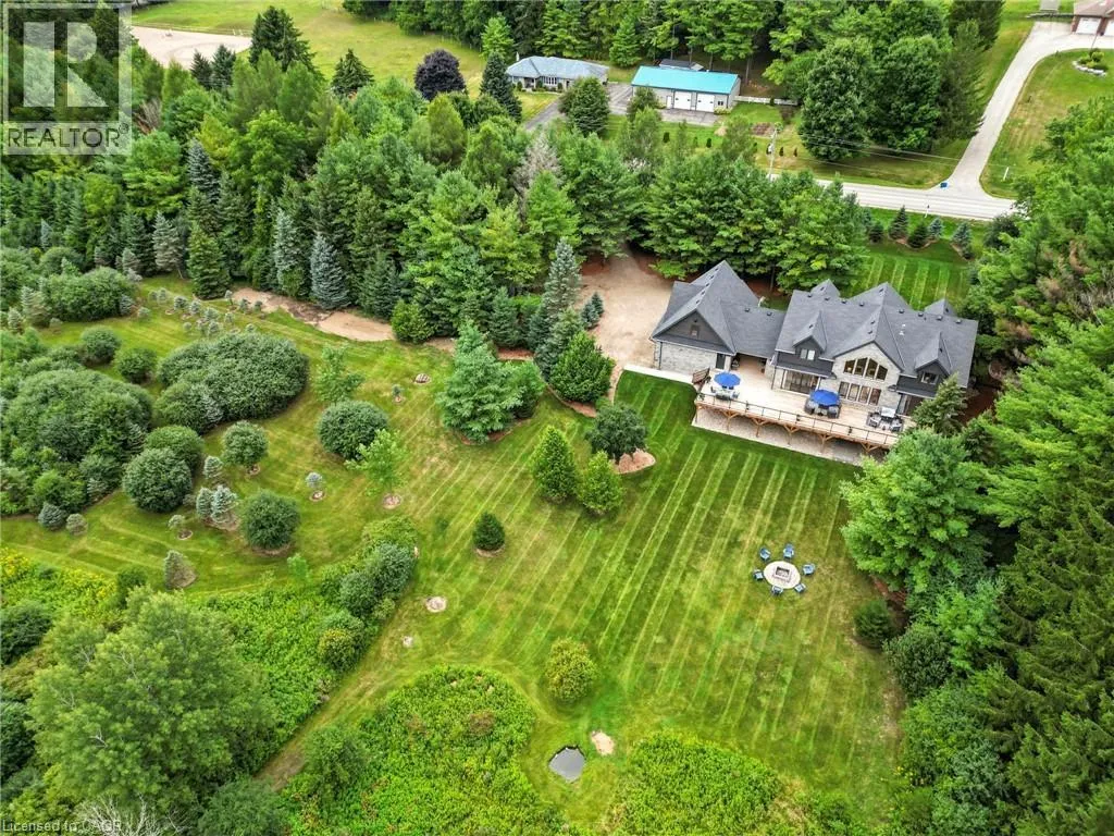 Highway 7 to Side Road 4 Custom-Built Executive Home on 8 Private Acres with Stunning Views â Just 5 Minutes from Historic Elora. Discover the perfect blend of luxury, privacy, and natural beauty in this exceptional custom-built estate, offering over 4,000 sq. ft. of thoughtfully designed finished living space. Set on 8 peaceful acres of scenic countryside, this one-of-a-kind home welcomes you with sweeping views and a true sense of tranquility. Inside, soaring ceilings, oversized windows, and engineered oak flooring fill the home with light and warmth. A handcrafted three-story Douglas Fir staircase adds timeless character, while built-in surround sound brings each space to life. The main floor is designed for connection and comfort, featuring an open-concept layout flowing from the great room to the spacious dining area and a chef-inspired kitchen with a hickory island, Cambria quartz counters, and high-end finishes. A mudroom and laundry area with breezeway access to the garage add daily convenience. The main floor primary suite is a private retreat with a spa-like ensuite including heated floors, a soaker tub, walk-in shower, double vanities, and a large walk-in closet. Upstairs offers two large bedrooms, a well-appointed bathroom, a quiet office, and a cozy reading lounge overlooking the great room and backyard. The bright walk-out lower level features oversized windows, a large bedroom, an inviting rec room, and storage. The fully insulated, heated 3-car garage with 9 ft doors including a loftâideal for a studio or future in-law suite. A separate 18âx33â workshop offers space for tools, toys, or equipment. For added peace of mind, the property is equipped with a whole home automatic generator, ensuring comfort and security in every season. Step outside to enjoy a large back deck, private trails, and a peaceful streamâperfect for nature walks or trail riding. Severance potential offers rare future value without compromising privacy. (id:27476)