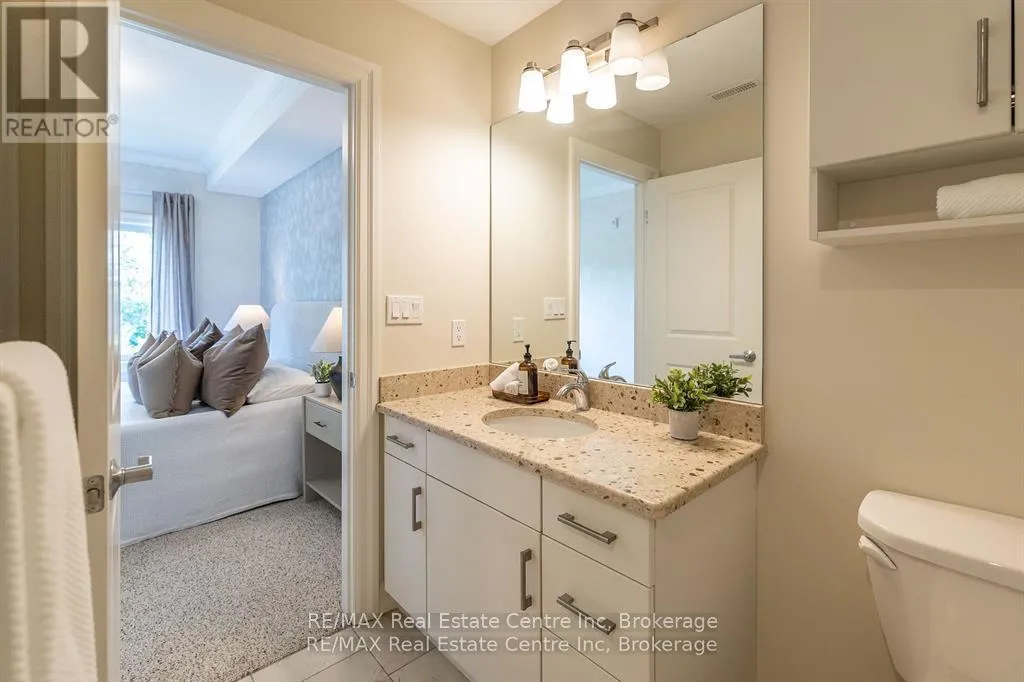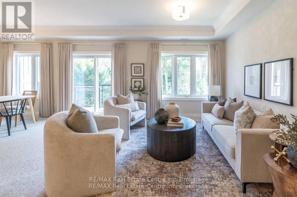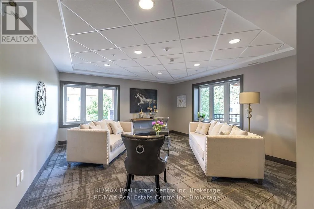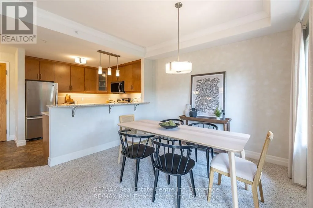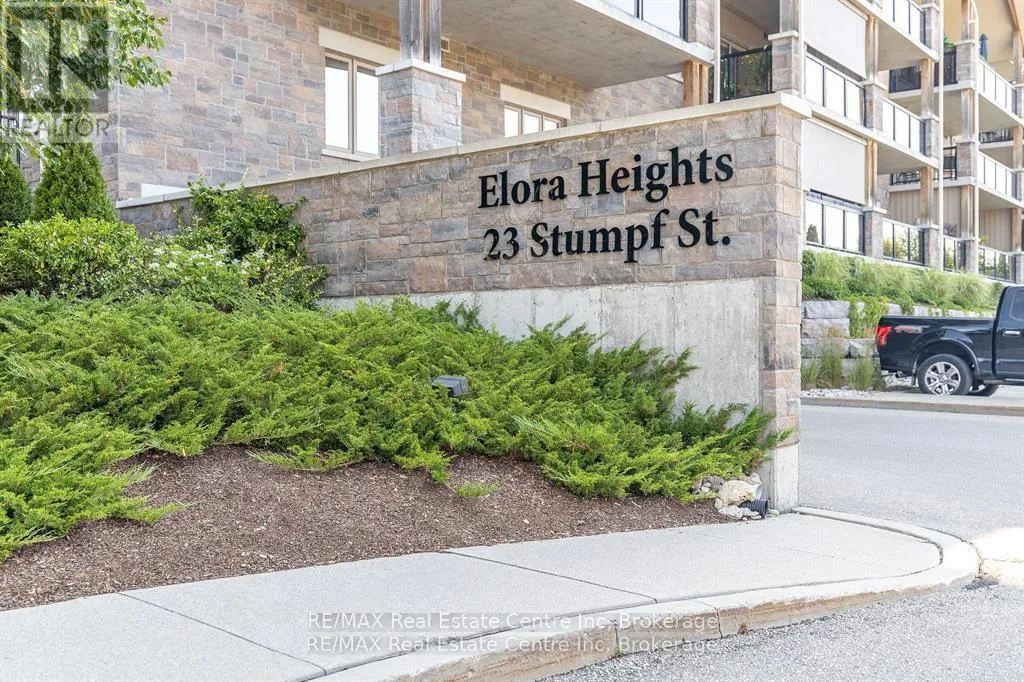Cross Streets: Geddes Street. ** Directions: Geddes to Stumpf Street. Welcome to 310-23 Stumpf Street, Eloraa bright and spacious 2-bedroom, 2-bathroom condo tucked away in a quiet setting with serene greenspace views. Located in one of Eloras most sought-after buildings, this unit combines comfort, community, and convenience.Inside, youll find an open-concept layout designed for everyday living and entertaining. The modern kitchen is a true highlight, featuring cork flooring, quartz countertops, stainless steel appliances, and a functional eat-up bar. It seamlessly connects to the dining area and sunlit living room, where sliding doors open to your private patio overlooking nature.The primary suite boasts its own ensuite, while the second bedroom provides versatile space for guests, a home office, or both. Added conveniences include in-suite laundry, generous storage, and the bonus of an owned underground parking space and locker.Residents also enjoy access to a large party room and a fully equipped fitness centreperfect for social gatherings or staying active.With downtown Elora just a short walk away, scenic trails and parks nearby, and the Grand River right across the street, this move-in-ready condo offers the perfect balance of village charm and natural beauty. Whether youre downsizing, investing, or searching for a peaceful place to call home, this one truly has it all. (id:27476)