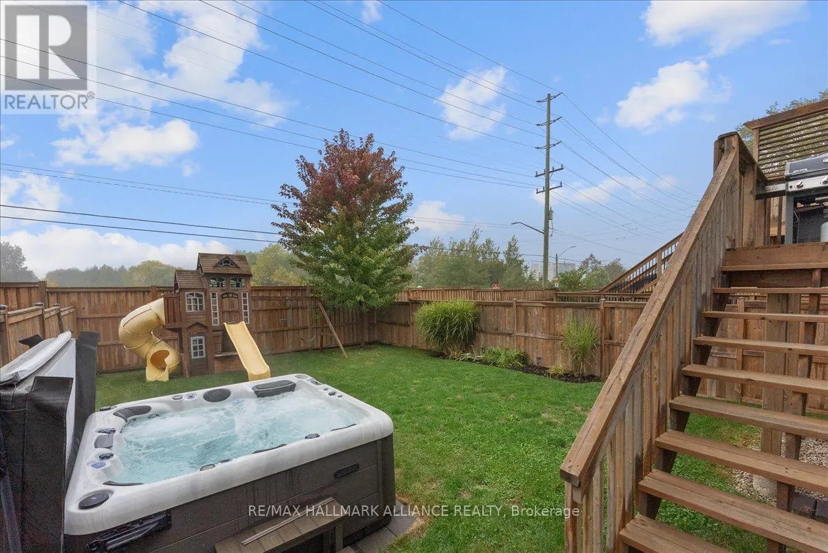 Cross Streets: Gartshore St & Garafraxa St E. ** Directions: Gartshore to Middleton. Left on Kay. Step into comfort and style in this beautifully upgraded 4-bedroom, 3-bath detached home in Fergus. Backing onto the peaceful green space of Forfar Park and just steps from the Elora Cataract Trail, this home offers the perfect blend of nature and modern living.The main floor features an open-concept layout with 9-foot ceilings, rich hardwood flooring, oak staircase and striking custom woodwork throughout. The chefs kitchen stands out with sleek tuxedo-style cabinetry, premium finishes, Wolf Gas Stove, and a functional design ideal for entertaining. Gather in the family room around the cozy gas fireplace, framed by custom built-in's and flooded with natural light. Upstairs, four generously sized bedrooms provide ample closet space and plush broadloom, with the primary suite offering a luxurious 5-piece ensuite with soaker tub, double vanity, and walk-in shower. The unfinished basement offers endless potential - whether you're dreaming of a home gym, recreation space, or in-law suite, it's a blank canvas ready for your personal touch. Step outside to your own backyard retreat, featuring a hot tub, children's play area, and lush green space with no rear neighbours! (id:27476)
