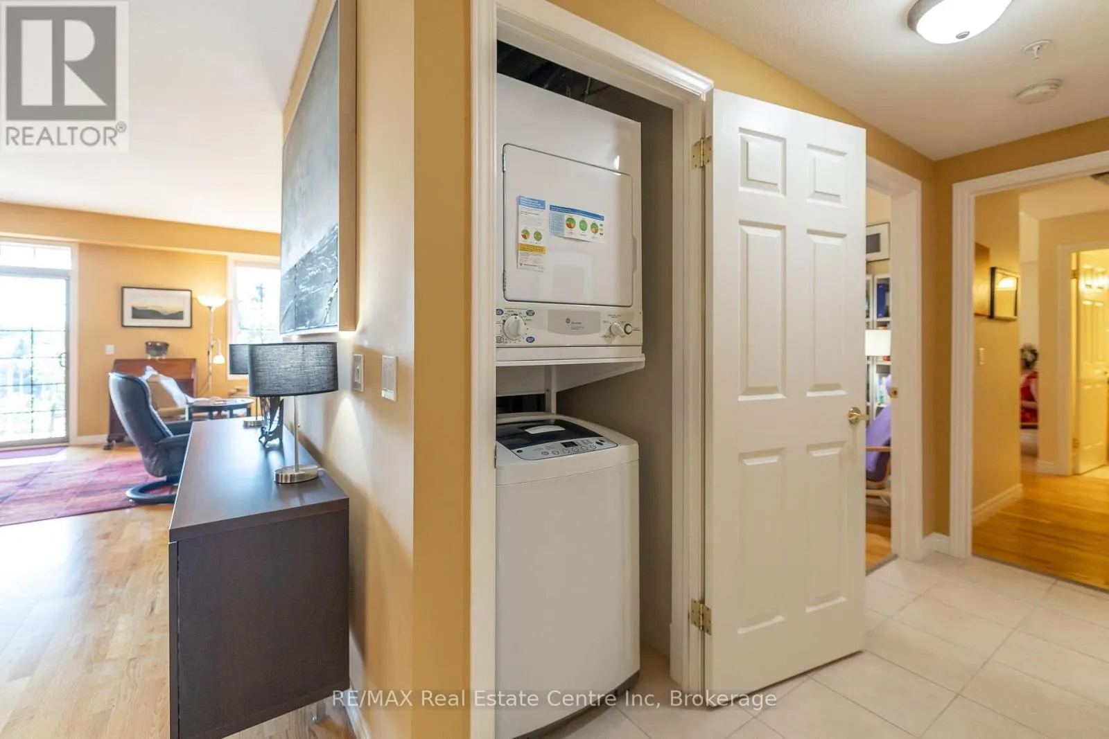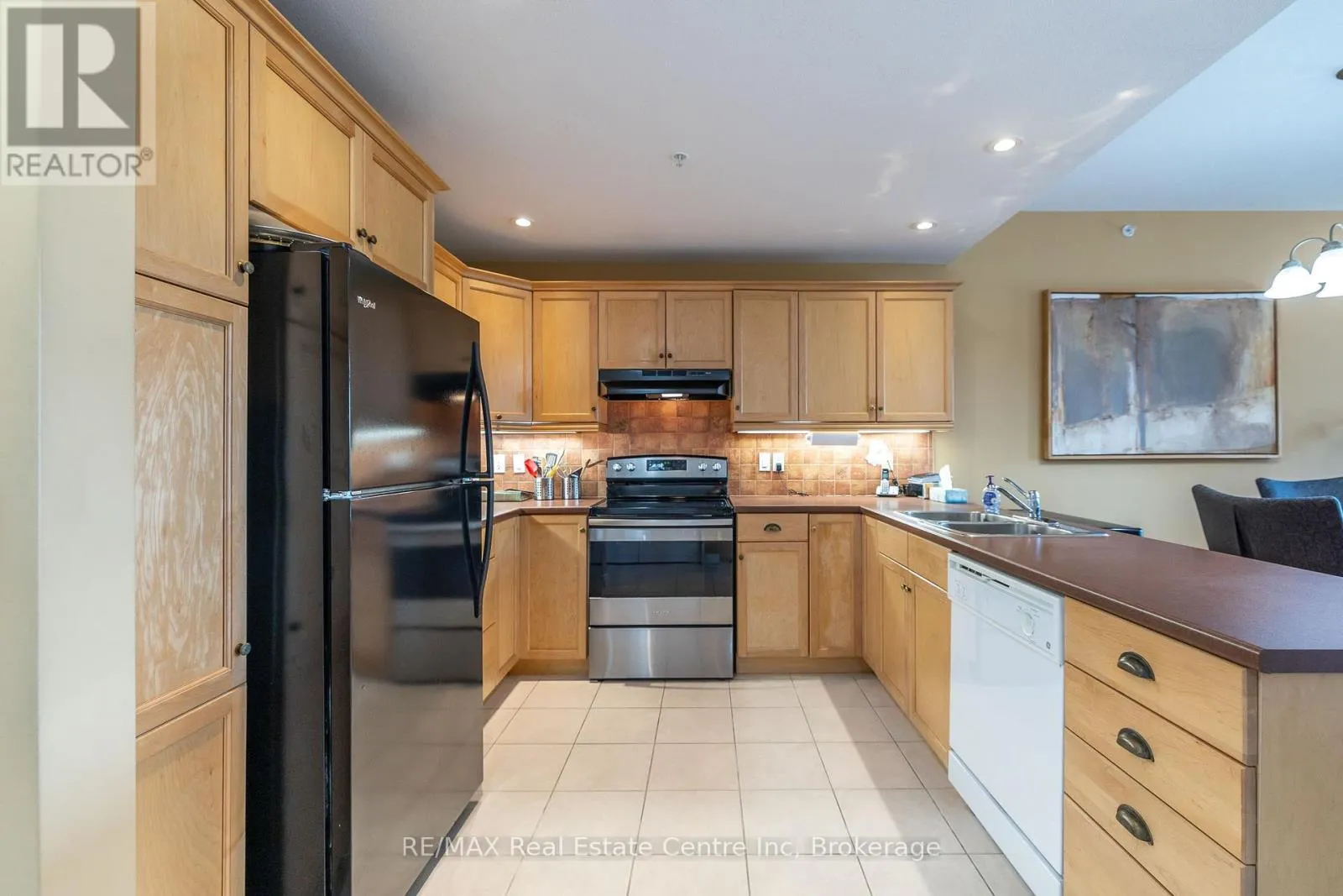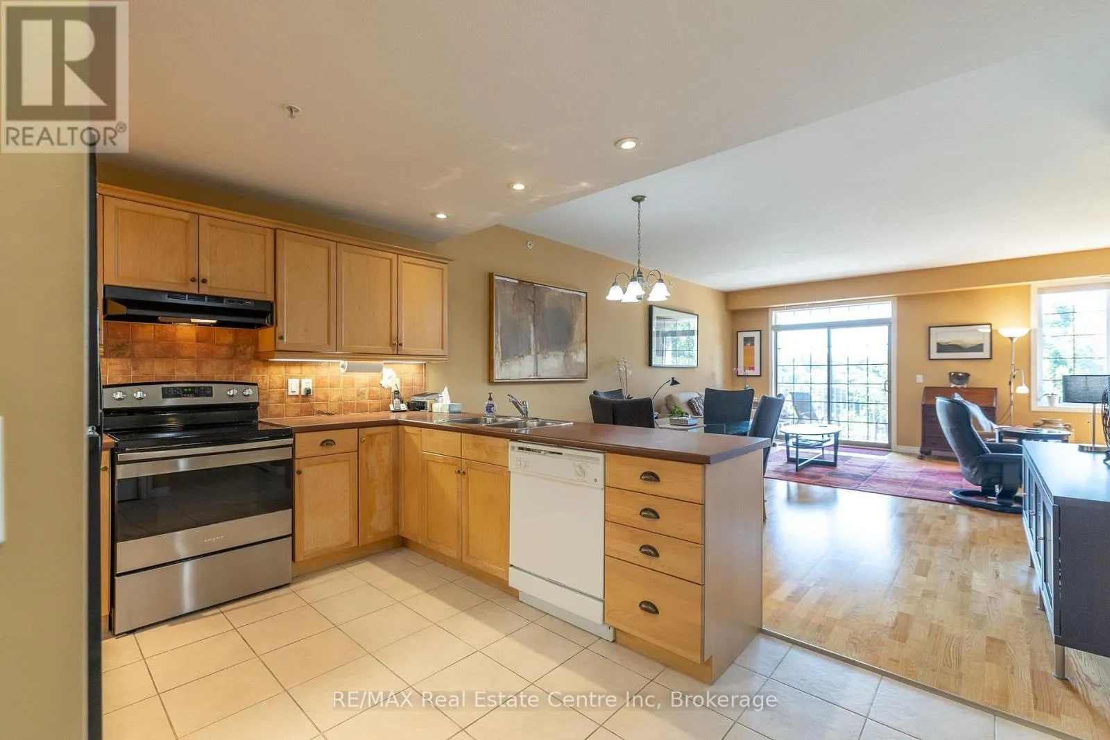 Cross Streets: North Queen & Colborne. ** Directions: Colborne or Geddes to North Queen. Welcome to 303-20 Station Square, perfectly located in the heart of Elora! This bright and inviting 2-bedroom, 2-bathroom condo offers an ideal balance of comfort, convenience, and community. Sunlight pours through the large windows, showcasing private treed views and filling every room with a sense of calm and serenity.The open-concept kitchen blends effortlessly into the dining and living areas, creating a warm, functional space for both everyday living and entertaining. The primary suite is a true retreat with its walk-in closet and private ensuite, while the second bedroompaired with a full bathroom across the hallmakes a perfect guest room or home office.Practical features include in-suite laundry, underground parking directly across from the elevator, and a larger-than-average storage unit. Life at Station Square is enriched by a welcoming community that hosts regular social events, from coffee mornings to card nights. Residents also enjoy access to excellent amenities, including a guest suite, exercise room, and a spacious party/meeting room.All this, just a short stroll to Downtown Elora, Bissell Park, and the scenic walking trails that make this town so special. Dont miss the opportunity to be part of one of Eloras most sought-after condo communities! (id:27476)