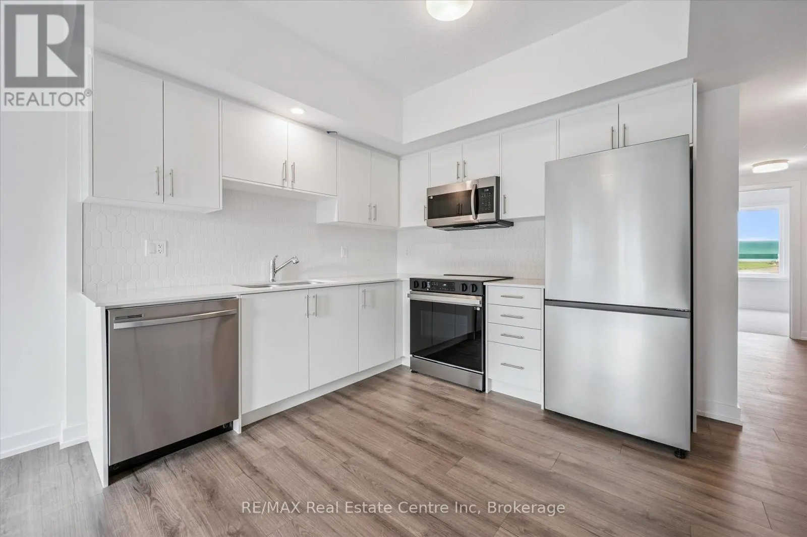Cross Streets: Sideroad 19 & St David St N. ** Directions: Turn at New to You building and the unit is located in the new development behind. Welcome to 62-940 St. David Street North in Fergus, part of Sunrise Grove, Fergus' newest community where modern living meets comfort and convenience. This main floor unit features bright white cabinetry, stainless steel appliances, and an open-concept layout filled with natural light. The kitchen offers ample storage and counter space perfect for cooking and entertaining. Relax on your private terrace that backs onto fields, offering year-round privacy, and enjoy the convenience of a reserved parking spot. Additional features include in-suite laundry, low condo fees, and thoughtfully designed living spaces. The spacious master bedroom includes plenty of closet space, while the second bedroom is perfect for guests, a home office, or growing family needs. Conveniently located in the heart of Fergus, you're minutes from local shops, dining, parks, walking trails, and essentials like Walmart and FreshCo. Top-rated schools, the Elora Gorge, and local conservation areas are also within easy reach. A move-in-ready opportunity for first-time buyers, downsizers, or investors looking for modern living in a thriving community. (id:27476)