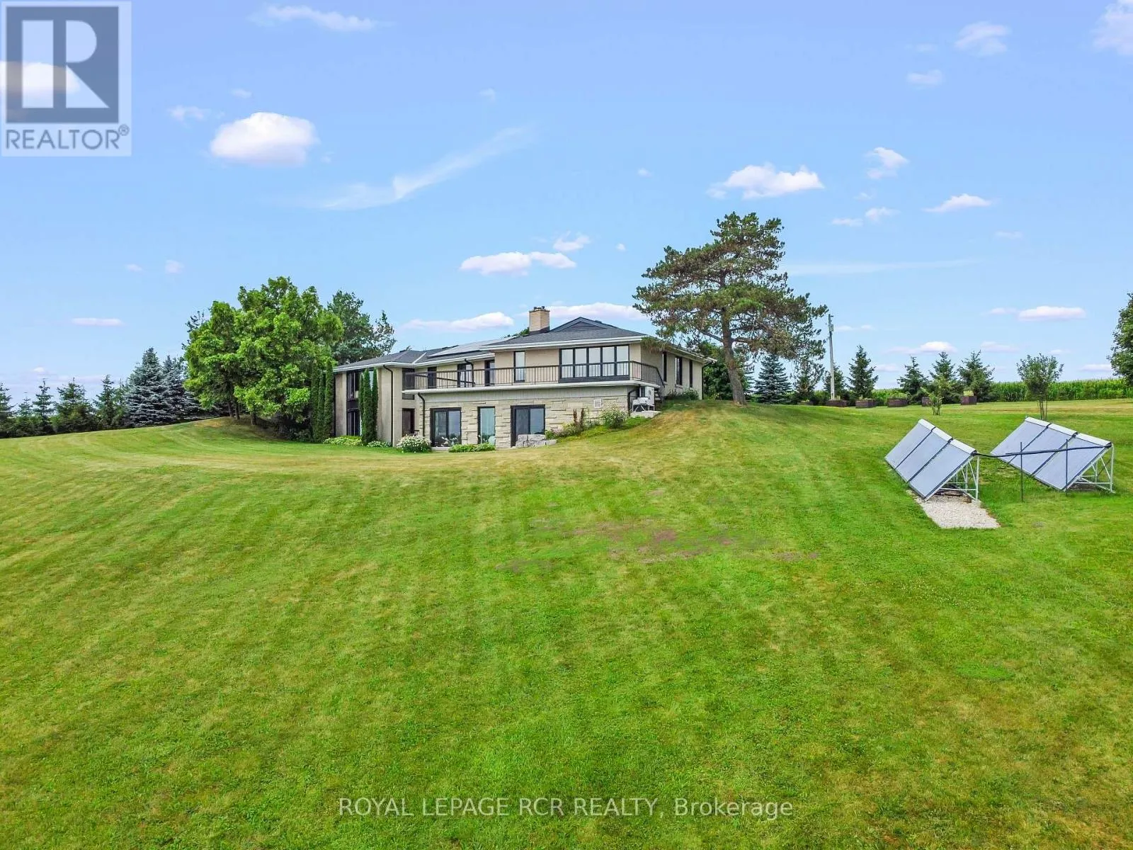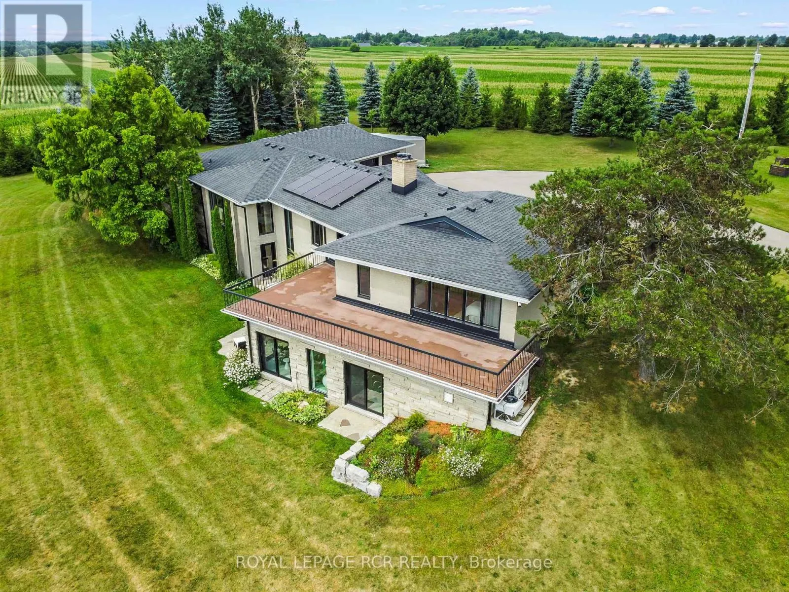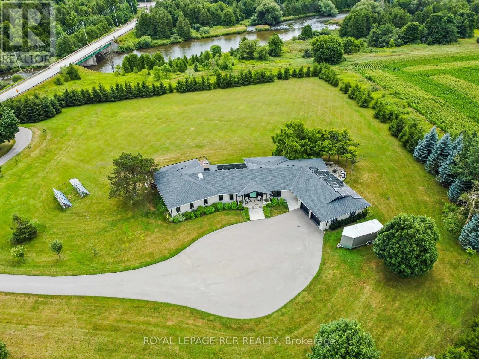 Cross Streets: Second Line/Wellington Road 18. ** Directions: NW on Second Line from Wellington Road 18. A winding driveway draws you toward The Riverlands, a spectacular top-of-the-line modern estate offering over 7,000 sq ft of total space. Nestled on 3.67 acres with commanding views of the Grand River, this architectural gem underwent an extraordinary full-scale renovation from '20 to '22. Today, it stands as a seamless fusion of timeless design and forward-thinking sustainability, boasting carbon-neutral, net-zero-ready systems. The main level features a stunning chef-inspired kitchen with quartz countertops, custom cabinetry, and an impressive suite of appliances. Sliding doors lead to a stone patio with a fireplace and BBQ, perfectly positioned to enjoy the sights and sounds of one of Ontario's premier fly fishing destinations. The open-concept living and dining area is enhanced by natural light, bespoke walnut built-ins, and sweeping river views. The primary suite is a private retreat, complete with a five-piece ensuite, custom dressing room with integrated laundry, and access to a versatile den or office with a wood-burning fireplace and access to the rooftop terrace. Two more bedrooms offer walk-in closets and share a beautifully updated bath. A curved staircase leads to the lower level featuring a second kitchen with an indoor charcoal grill, a family room with fireplace, a billiards room, a guest suite, a wine room, and a walk-in fridge. Thoughtfully designed to function seamlessly as a multi-generational home, this level offers independent yet connected living spaces ideal for extended family or guests. The showstopping indoor saltwater pool has dedicated HVAC and solar-powered heating, plus a sauna, change room, and adjoining sunroom with walkout to the backyard. Rooftop solar panels, geothermal systems, upgraded electrical, smart home features, and plans for a detached 3-car garage complete this one-of-a-kind package. Just minutes from Belwood Lake and downtown Elora, The Riverlands is a rare blend of modern luxury, natural beauty, and sustainable living. (id:27476)