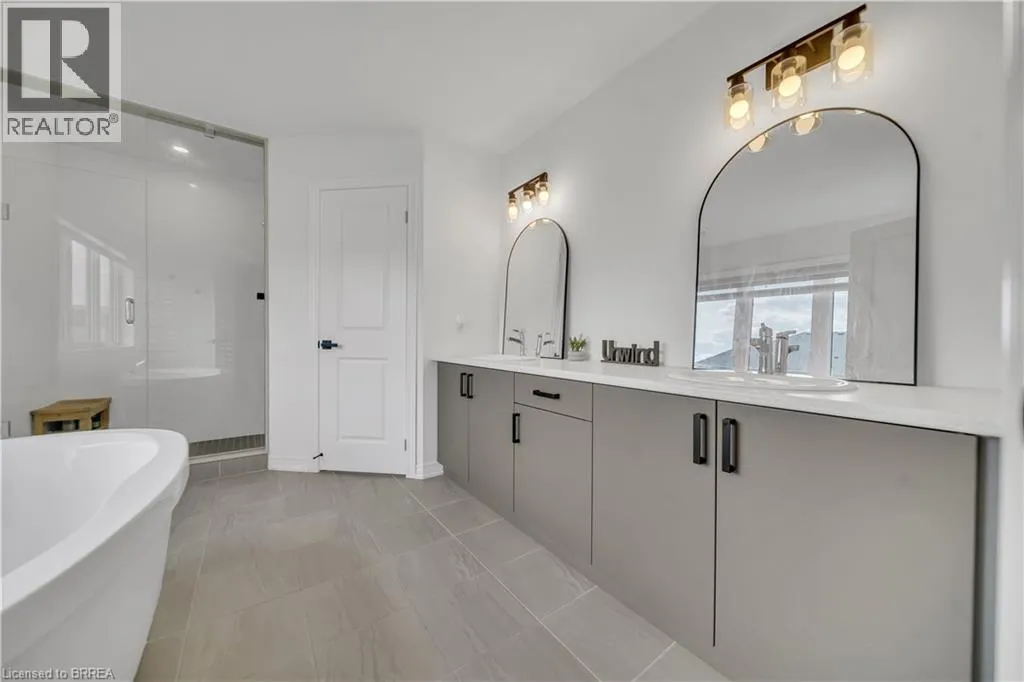 Farley Rd & Rea Dr Welcome to 175 Rea Drive, a beautifully designed 4-bedroom, 4-bathroom family home located in Fergus's newest family friendly neighbourhood. Built for both comfort and style, this residence showcases modern finishes, thoughtful upgrades, and a functional layout perfect for todays lifestyle. Step inside to find hardwood flooring throughout the main and upper levels, creating a seamless flow from room to room. The open-concept main floor offers a bright and spacious living area, while the stunning kitchen features quartz countertops, an extended island, sleek white cabinetry, and upgraded fixtures--perfect for entertaining and family gatherings. Upstairs, the primary suite is a true retreat with a luxurious upgraded ensuite, including a walk-in shower completed in 2024. Three additional bedrooms provide plenty of space for family, guests, or a home office, with bathrooms conveniently designed to accommodate busy households. With four bathrooms in total, including a stylish main-floor powder room, functionality is never compromised. The unfinished basement offers endless potential for customization, whether you envision a recreation area, home gym, or additional living space. Enjoy the convenience of a double garage, a private backyard ready to be transformed, and proximity to schools, parks, trails, and all of Fergus's amenities. This move-in ready home combines elegance, space, and modern upgrades--perfect for families looking for their next chapter. (id:27476)