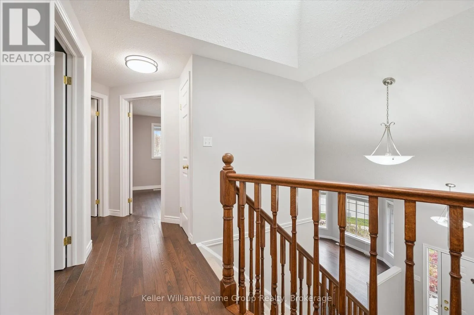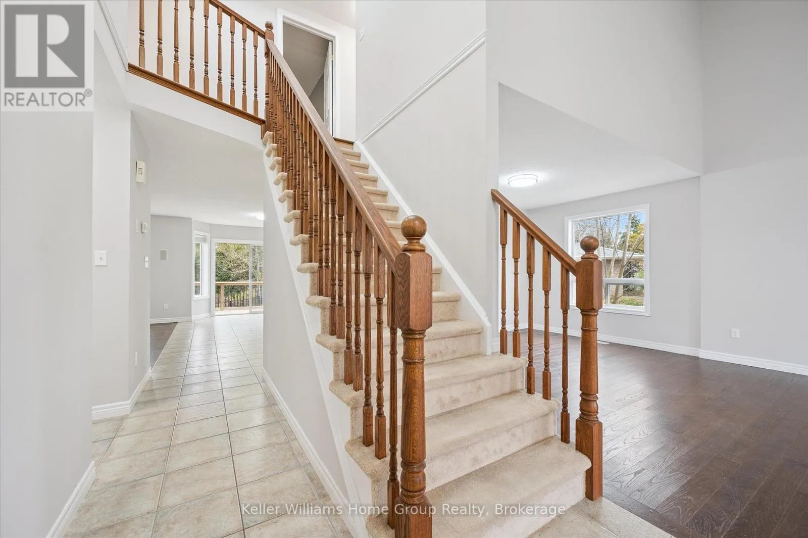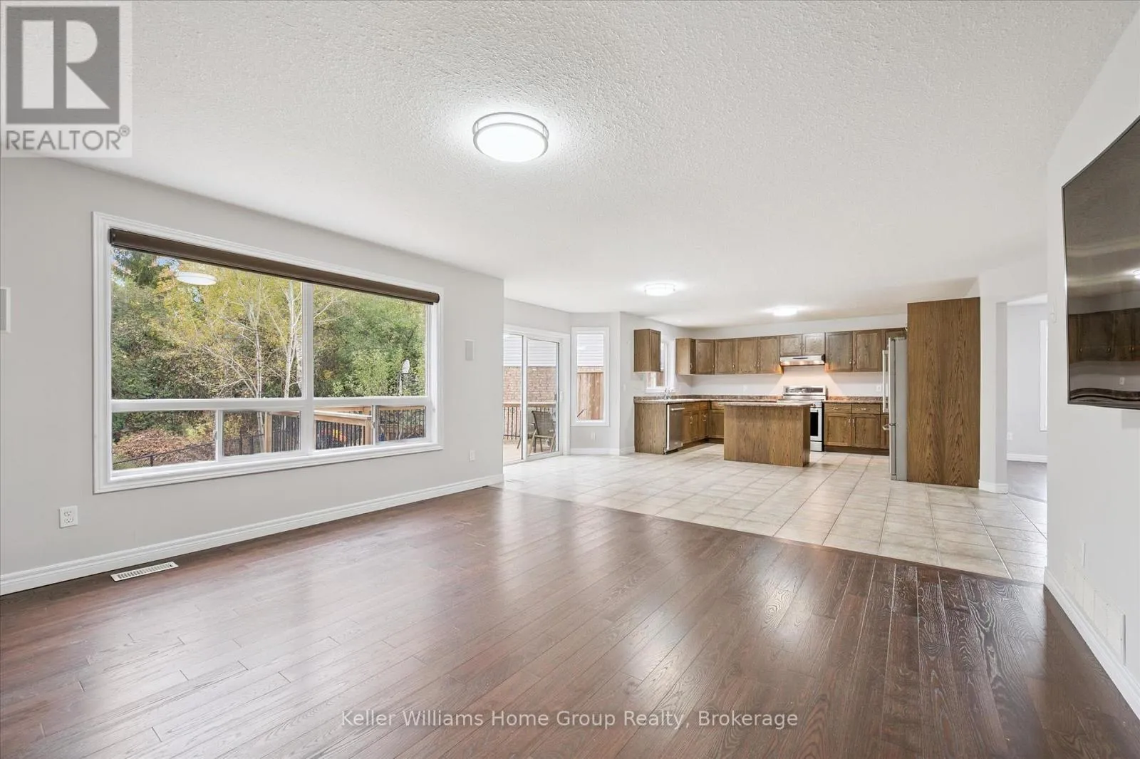 Cross Streets: Elizabeth St. ** Directions: Hwy 6 N left on Woodhill Dr, right onto Elizabeth Cres which runs into Black St. Exceptional 4-Bedroom Family Home Backing Onto Green Space in Fergus. Welcome to this beautifully maintained 2,480 sq ft two-storey home, ideally situated on a premium lot backing onto green space for added privacy and serene views. The fully fenced backyard features a deck prepped for a hot tub, along with a garden shed for convenient outdoor storage. Inside, you'll find a well-designed layout offering formal living and dining areas, along with a spacious open-concept kitchen, breakfast area, and family room. The family room includes a cozy gas fireplace and walkout to the backyard deck, perfect for entertaining or relaxing year-round. Upstairs, the home boasts four generous bedrooms and hardwood and tile flooring throughout - with carpet only on the staircase for added comfort and safety. The lower level is a true entertainer's space, featuring a custom bar, built-ins, bookshelves, and projector setup - ideal for movie nights or game day gatherings. (Basement photos to be added soon - you won't want to miss this space!)Additional features include a double car attached garage with heat and extra storage, main floor laundry and a great location close to parks, trails, schools, and amenities. (id:27476)