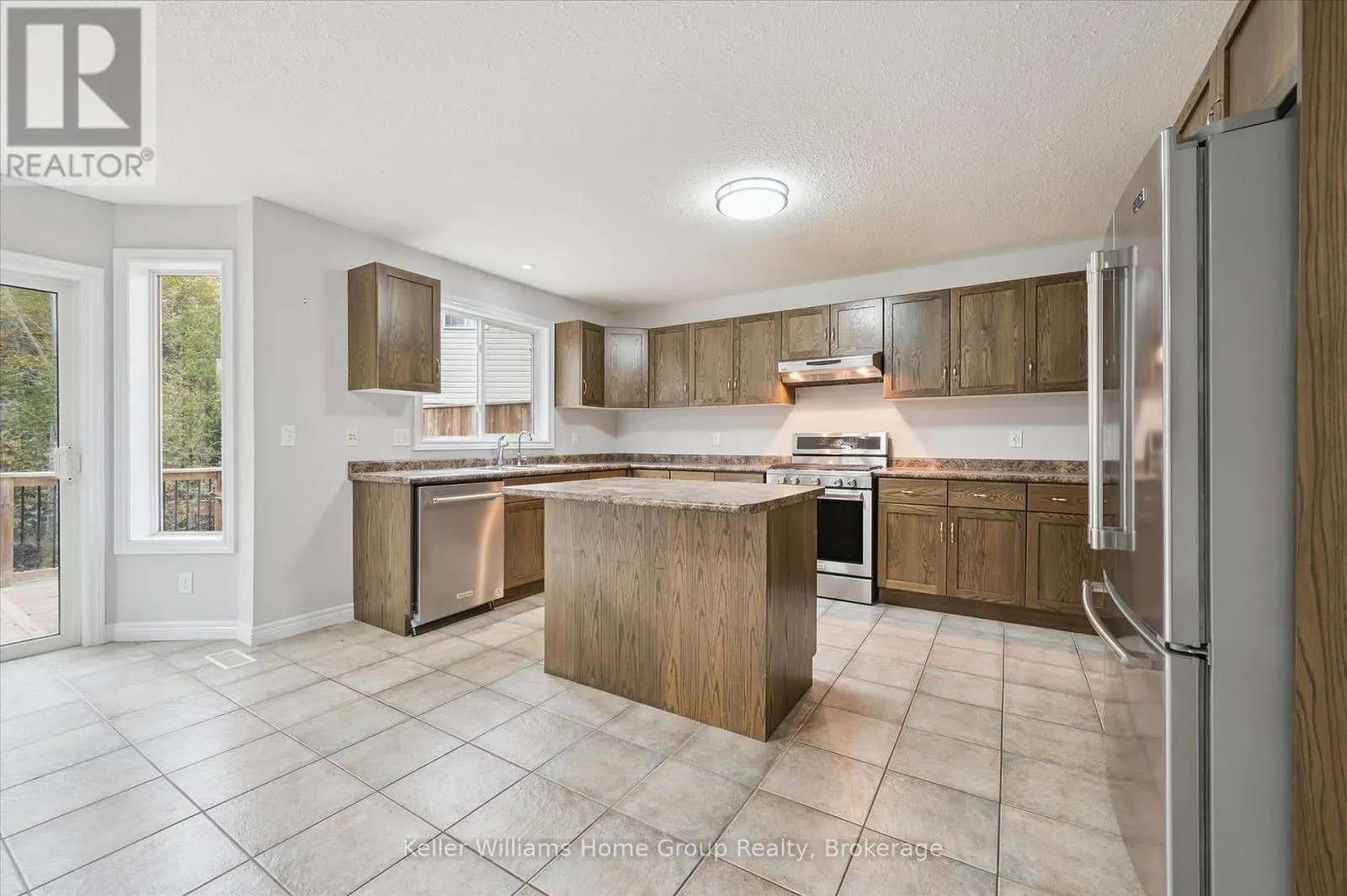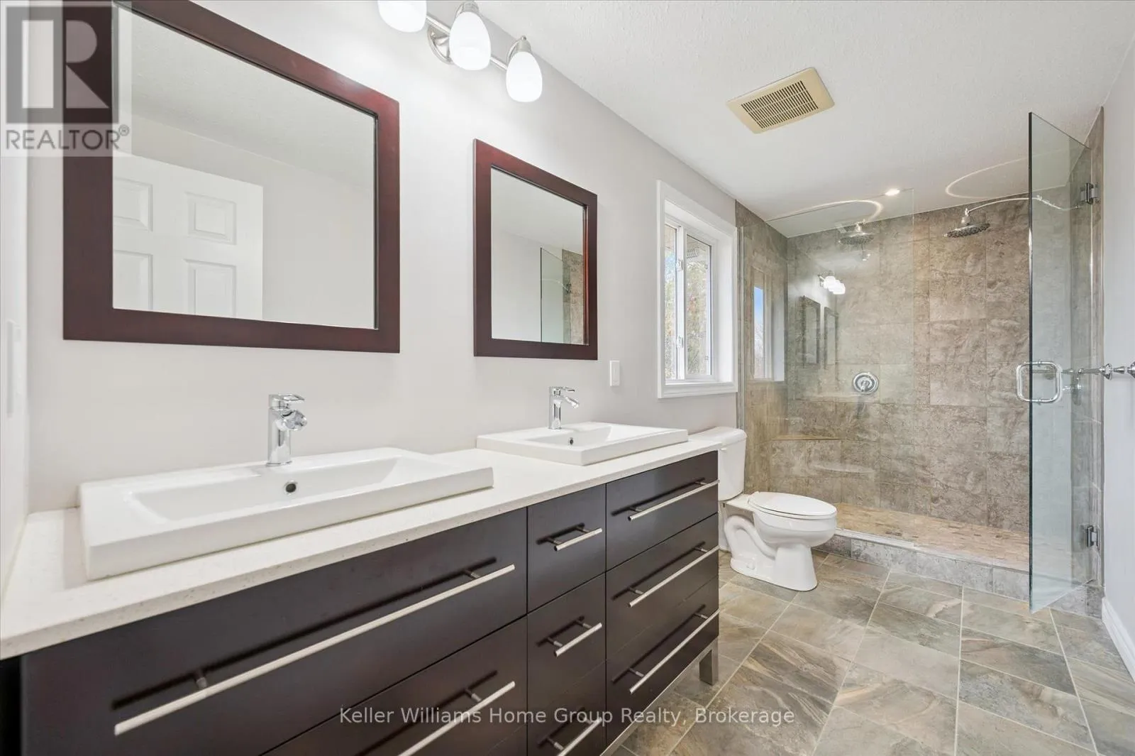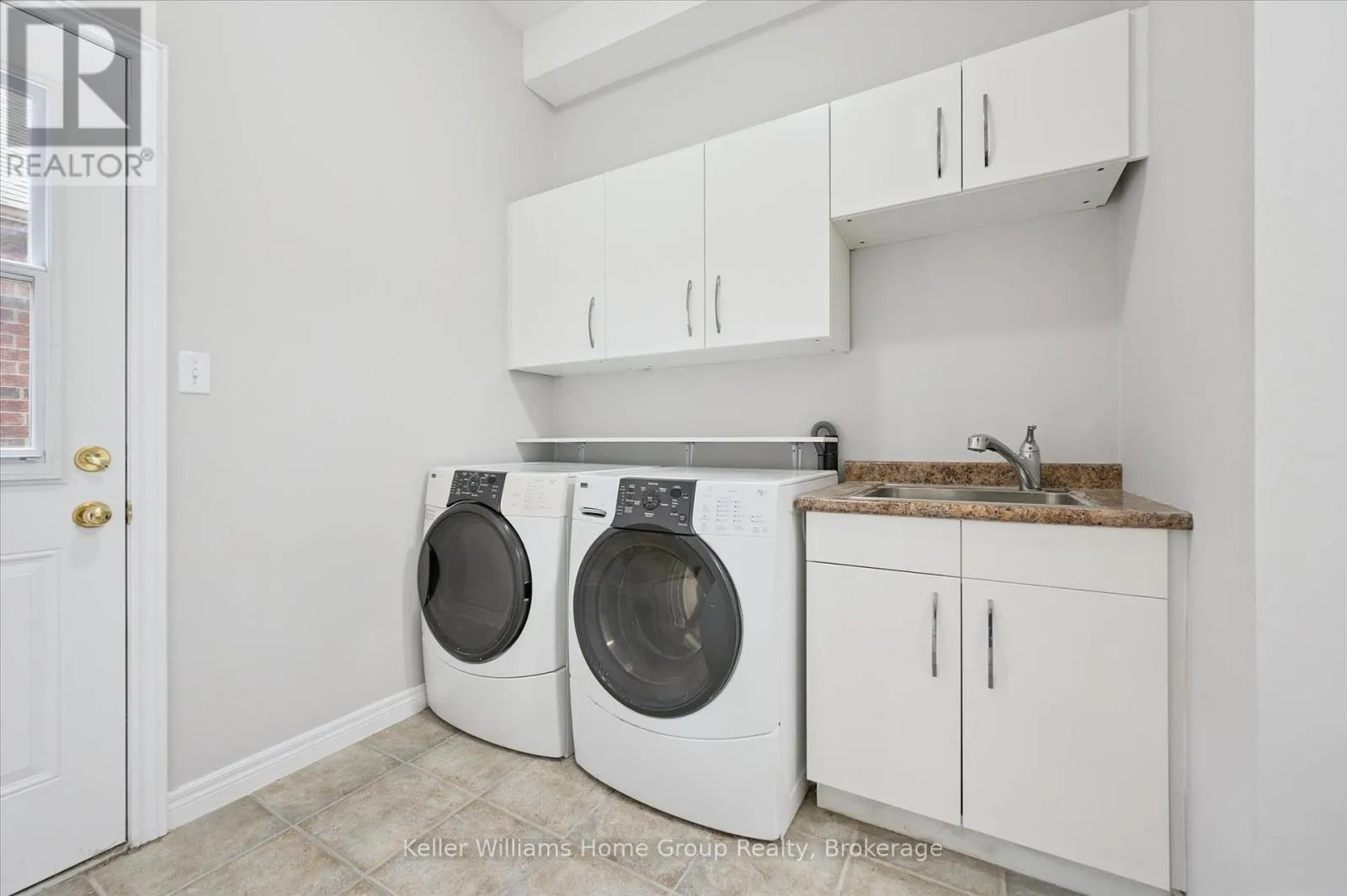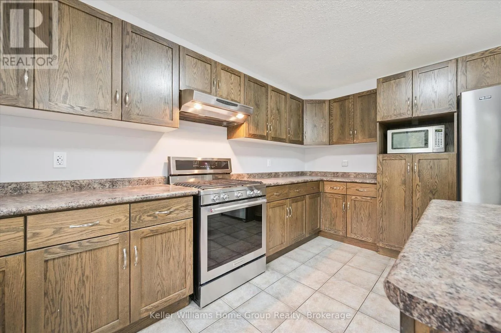 Cross Streets: Elizabeth St. ** Directions: Hwy 6 N left on Woodhill Dr, right onto Elizabeth Cres which runs into Black St. Exceptional 4-Bedroom Family Home Backing Onto Green Space in Fergus. Welcome to this beautifully maintained 2,480 sq ft two-storey home, ideally situated on a premium lot backing onto green space for added privacy and serene views. The fully fenced backyard features a deck prepped for a hot tub, along with a garden shed for convenient outdoor storage. Inside, you'll find a well-designed layout offering formal living and dining areas, along with a spacious open-concept kitchen, breakfast area, and family room. The family room includes a cozy gas fireplace and walkout to the backyard deck, perfect for entertaining or relaxing year-round. Upstairs, the home boasts four generous bedrooms and hardwood and tile flooring throughout - with carpet only on the staircase for added comfort and safety. The lower level is a true entertainer's space, featuring a custom bar, built-ins, bookshelves, and projector setup - ideal for movie nights or game day gatherings. (Basement photos to be added soon - you won't want to miss this space!)Additional features include a double car attached garage with heat and extra storage, main floor laundry and a great location close to parks, trails, schools, and amenities. (id:27476)