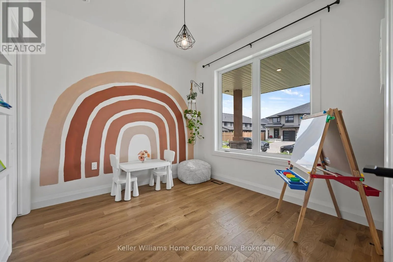 Cross Streets: Farley & Beatty. ** Directions: From Beatty Line turn onto Farley Rd, turn right onto Rea Dr and the property is on the right. Stunning Keating Built 2 Storey home with lots of upgrades - you don't want to miss this one with over 3100sq ft of living space all finished by the builder. The main floor is bright and spacious open concept with gleaming hardwood flooring, living room with a feature gas fireplace and large windows, dining area with patio doors out to the composite deck over looking farmland, amazing custom kitchen with large centre island, quartz counter tops and backsplash, stainless appliances, there is a good sized mudroom off the kitchen with a walk in pantry, walk in closet, a built in bench and storage cabinetry, entrance into the 2 car garage. On the main floor you will also find a 2 piece washroom and a large home office/guest bedroom. Head up the hardwood staircase to the upper level where you will find hardwood flooring throughout all bedrooms and hallways, a large primary bedroom, with a walk in closet and a huge bright nicely upgraded 5 piece ensuite with in floor heat. There are 2 more good sized bedrooms, a 4 piece main bathroom and a large well equipped laundry room. The finished walkout basement is an amazing space to relax and entertain, with its large rec room, 3 piece bathroom, guest bedroom and fitness studio. The walkout from the basement leads out to a concrete patio and the amazing backyard with a large storage shed and open view of the farmland in behind. (id:27476)