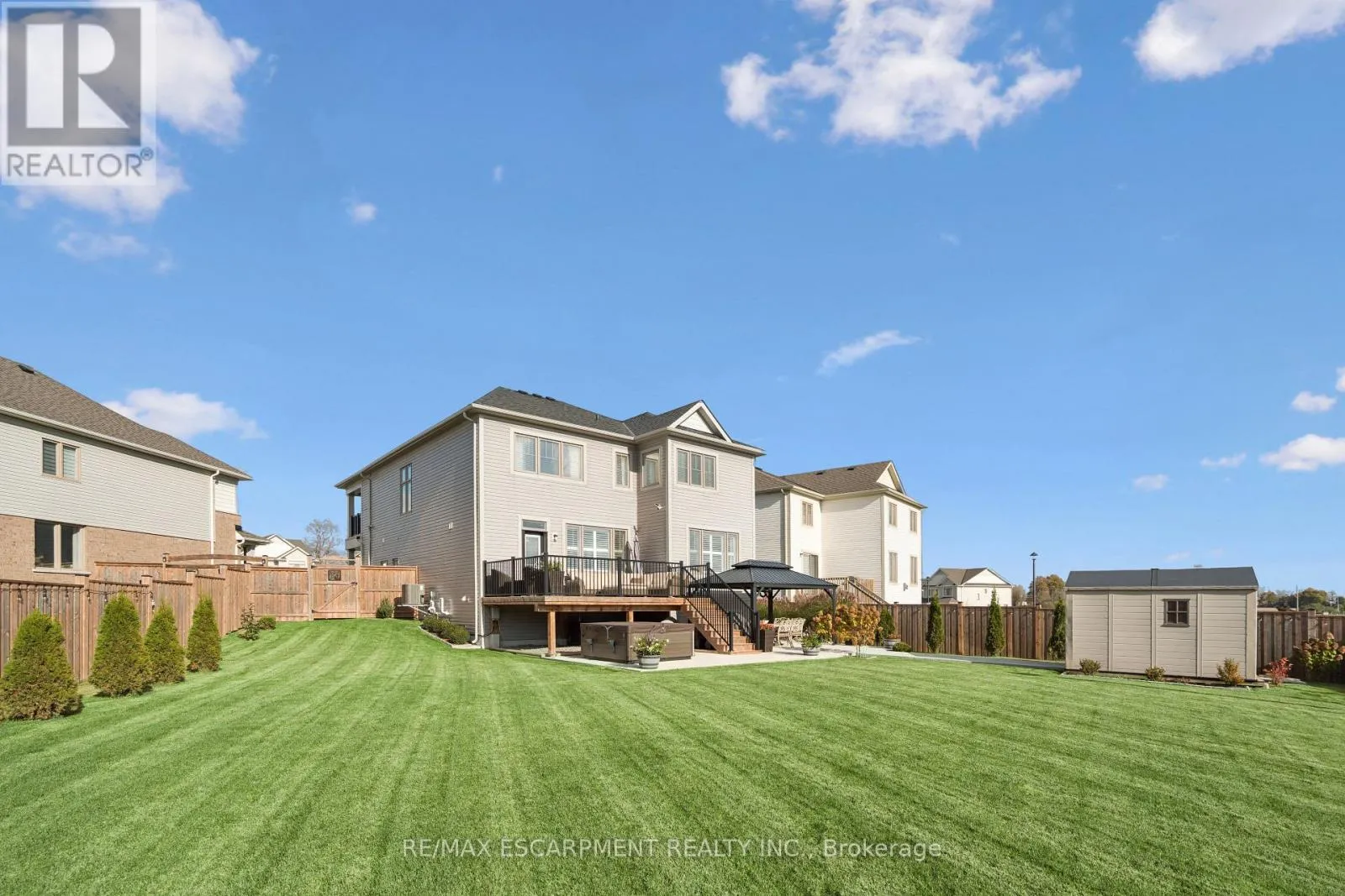Cross Streets: Beatty Line N & Eilliot Ave E. ** Directions: Elliot Ave/ Cudney Str/ Harpin Way. 4 BEDROOMS! 4 BATHROOMS! PIE-SHAPED LOT! FINISHED BASEMENT! Welcome to 220 Harpin Way E - a beautifully appointed 4-bed, 4-bath detached home on a premium pie-shaped lot in the sought-after Storybrook subdivision of Fergus. Built in 2021 and designed with family comfort in mind, this home blends style and function across three spacious levels. Inside, 9-ft ceilings, wide-plank flooring, and California shutters set the tone. The gourmet kitchen features a large quartz island, gas stove, pot-filler, extended cabinetry, and walkout to a deck with gas BBQ hookup - perfect for entertaining. The living room includes a cozy gas fireplace and custom built-ins, complemented by a formal dining room and practical mudroom with inside garage entry. Upstairs, the luxurious primary suite boasts a walk-in closet and spa-like ensuite with a soaker tub and glass shower. Three additional spacious bedrooms, a 4-pc bath, and laundry room round out the second floor - including one room with its own private balcony, ideal for a home office. The finished basement adds a rec room with fireplace, bonus room for an office or gym, plus storage. Mechanical systems are near-new, offering peace of mind. Outside, enjoy a fully fenced, landscaped yard with room to roam - ideal for kids, pets, or future pool plans. The double garage and 4-car driveway make daily life easy. Located on a quiet cul-de-sac, you're close to parks, trails, the Grand River, brand-new Grand River Public School, and Groves Hospital. It's everything a growing family needs - in one move-in ready home. (id:27476)