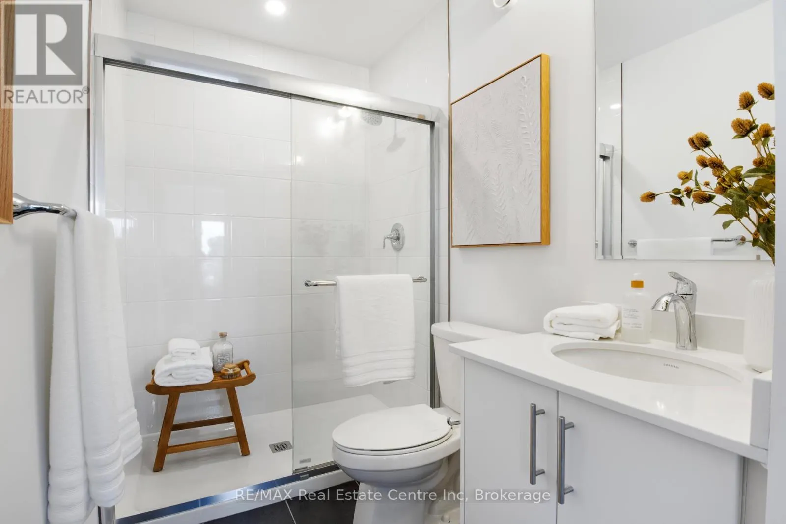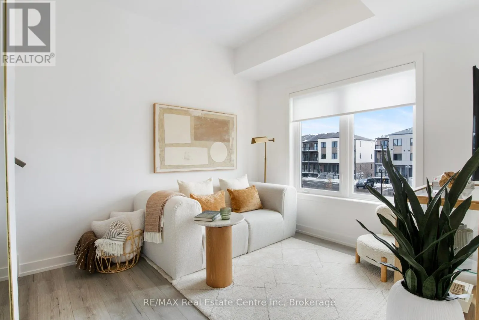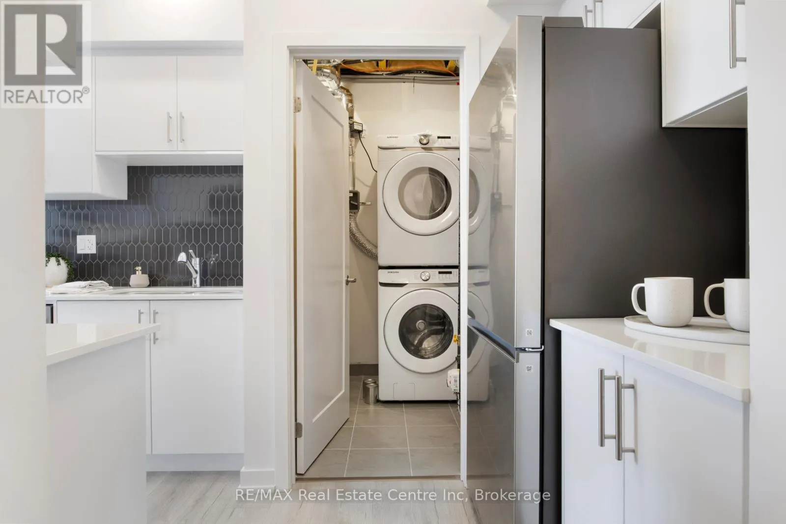 Cross Streets: Sideroad 19 & St David St N. ** Directions: Turn at New to You building Off Hwy 6/St.David Street N. 2 CAR PARKING | Welcome Home to 63-940 St David Street N at Fergus's newest development - Sunrise Grove! This beautifully designed 2-bedroom, 2-bath, 2 balcony and 2 car parking stacked townhouse FOR LEASE offers 1,050 sq. ft. of bright, contemporary living space. The open-concept main floor features sleek laminate flooring and a modern kitchen with quartz countertops, an upgraded backsplash, stainless steel appliances, and generous cabinetry - plus a kitchen window with a peaceful greenspace view. Enjoy the outdoors with two private balconies - one off the living room and another off the primary bedroom - ideal for relaxing or enjoying your morning coffee. Upstairs, you'll find two spacious bedrooms, including a primary suite with its own ensuite bathroom and double closets, as well as a nearby second full bath for added convenience. Additional highlights include in-suite laundry with dedicated storage space, upgraded finishes throughout, and thoughtful design details that make daily living easy. Located in a well-planned community with quick access to local amenities and Highway 6, this home blends modern comfort, style, and convenience perfectly. (id:27476)