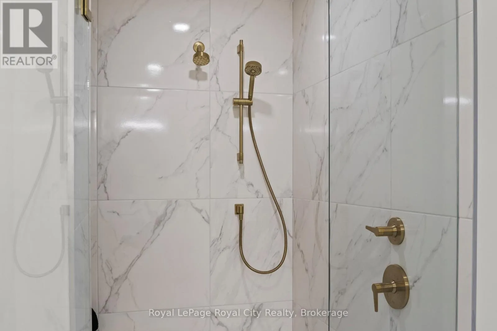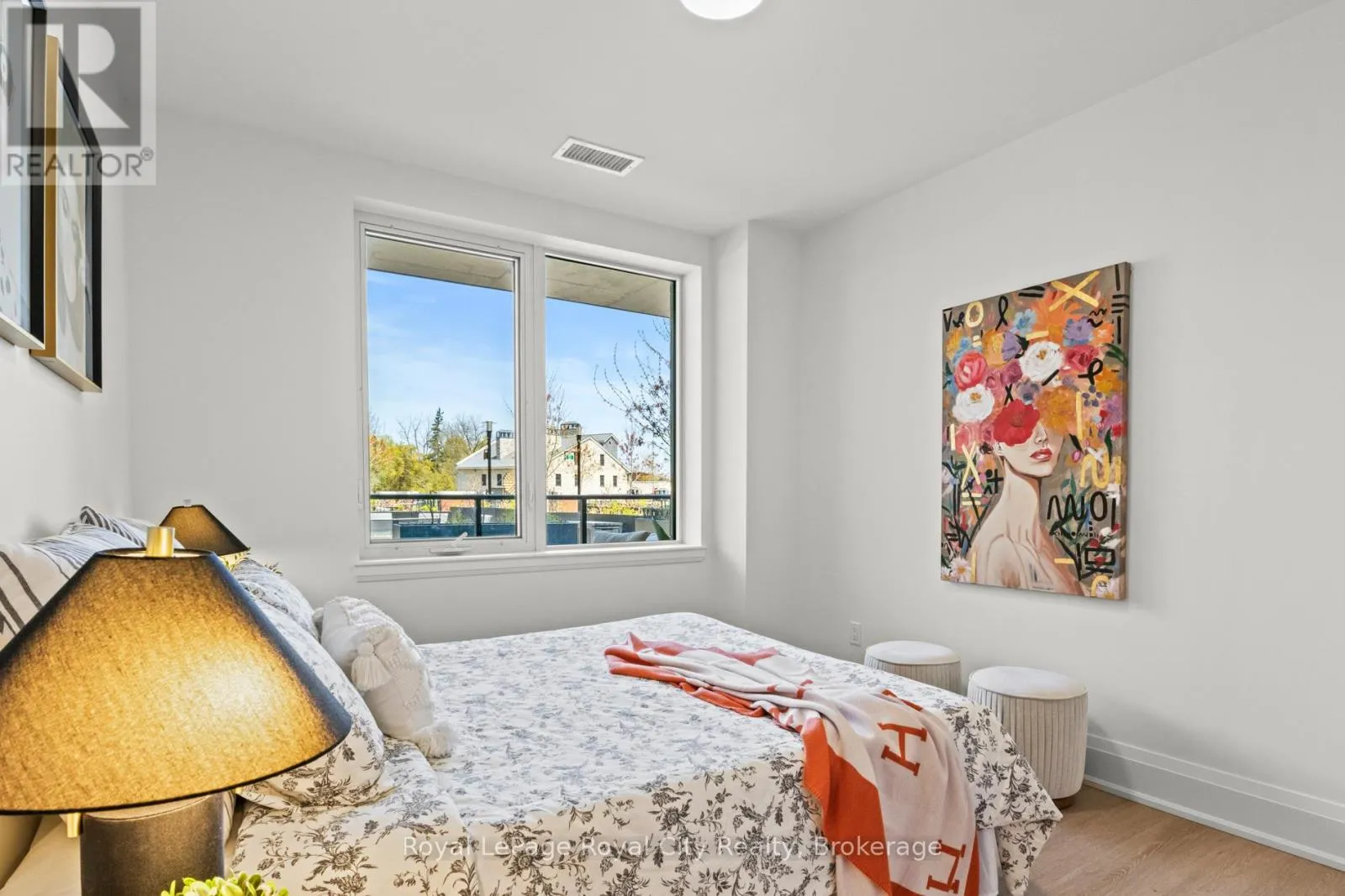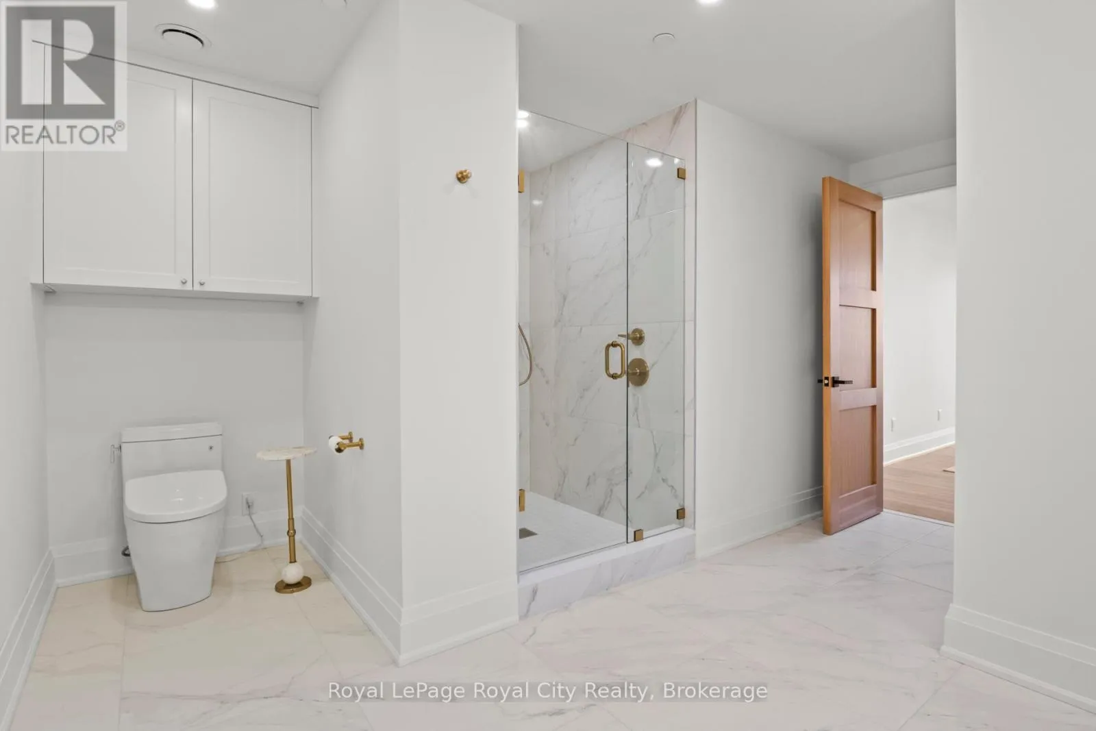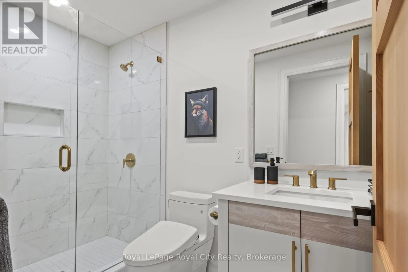 Cross Streets: McNab and Wellington Rd7. ** Directions: Wellington County Road 7, cross lights at Water Street, head north, property entrance is on the right before the Grand River Bridge. Riverside Condo with Expansive Patio, brimming with riverside sounds and entertaining space. This stunning 2-bedroom plus den condo offers a unique blend of luxury, comfort, and natural beauty. One of the standout features is the spacious 400+ sq ft patio, which serves as an exceptional outdoor living space. With a large covered area perfect for entertaining and a sunlit private corner, its the ideal spot to relax and enjoy the soothing sounds of the river. Inside, the condo is filled with natural light and designed with a functional, open-concept layout. The kitchen features a large island, seamlessly connecting the living and dining areas. Even with a full-sized dining table and sectional, the space remains airy and open.The primary bedroom offers direct access to the covered patio and includes an ample 4-piece ensuite, complete with a large walk-in shower, heated floors, and upgraded toilet with luxury features. The second bathroom is a 3-piece layout, walk-in shower, heated flooring, and similar high-end finishes. A private den/office is thoughtfully tucked away from the main living areas, making it perfect for remote work or quiet study. The walk-in laundry room provides ample space for storage and organization. (id:27476)