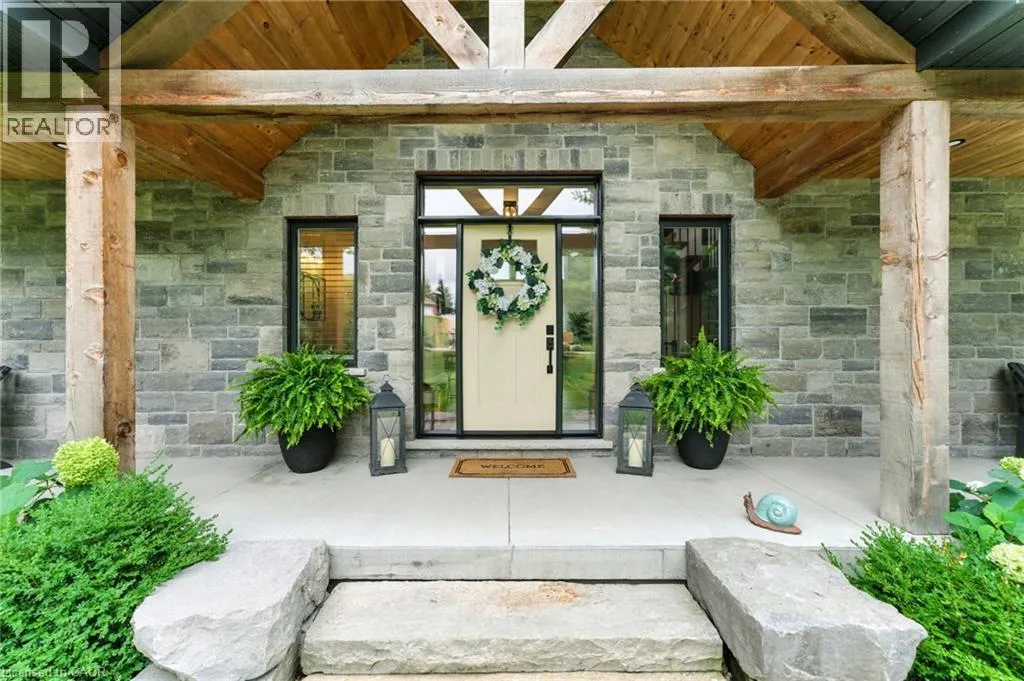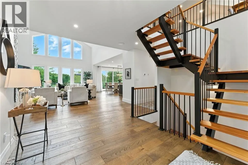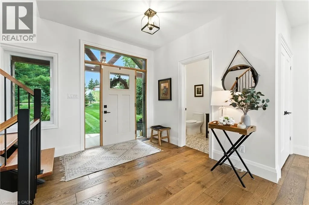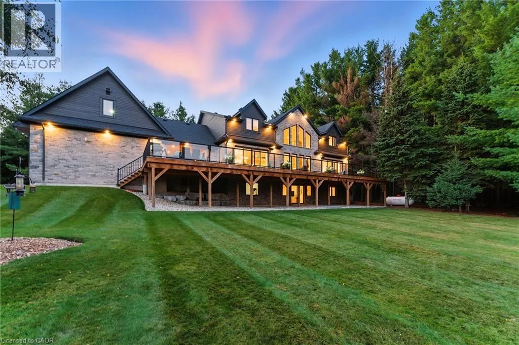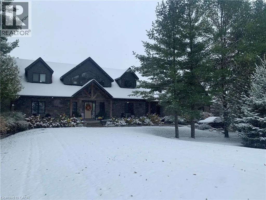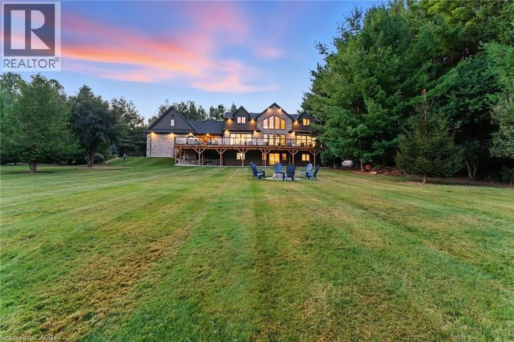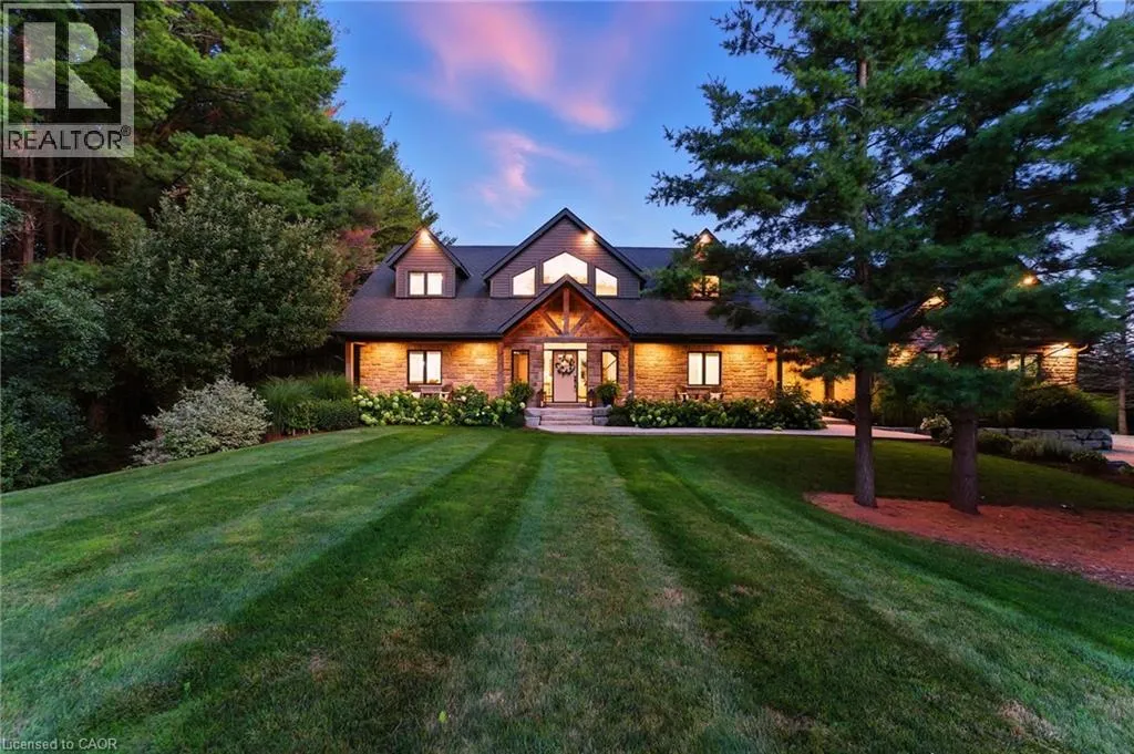 Highway 7 to Side Road 4 Custom-Built Executive Home on 8 Private Acres with Stunning Views â Just 5 Minutes from Historic Elora. Discover the perfect blend of luxury, privacy, and natural beauty in this exceptional custom-built estate, offering over 4,000 sq. ft. of thoughtfully designed finished living space. Set on 8 peaceful acres of scenic countryside, this one-of-a-kind home welcomes you with sweeping views and a true sense of tranquility. Inside, soaring ceilings, oversized windows, and engineered oak flooring fill the home with light and warmth. A handcrafted three-story Douglas Fir staircase adds timeless character, while built-in surround sound brings each space to life. The main floor is designed for connection and comfort, featuring an open-concept layout flowing from the great room to the spacious dining area and a chef-inspired kitchen with a hickory island, Cambria quartz counters, and high-end finishes. A mudroom and laundry area with breezeway access to the garage add daily convenience. The main floor primary suite is a private retreat with a spa-like ensuite including heated floors, a soaker tub, walk-in shower, double vanities, and a large walk-in closet. Upstairs offers two large bedrooms, a well-appointed bathroom, a quiet office, and a cozy reading lounge overlooking the great room and backyard. The bright walk-out lower level features oversized windows, a large bedroom, an inviting rec room, and storage. The fully insulated, heated 3-car garage with 9 ft doors including a loftâideal for a studio or future in-law suite. A separate 18âx33â workshop offers space for tools, toys, or equipment. For added peace of mind, the property is equipped with a whole home automatic generator, ensuring comfort and security in every season. Step outside to enjoy a large back deck, private trails, and a peaceful streamâperfect for nature walks or trail riding. Severance potential offers rare future value without compromising privacy. (id:27476)