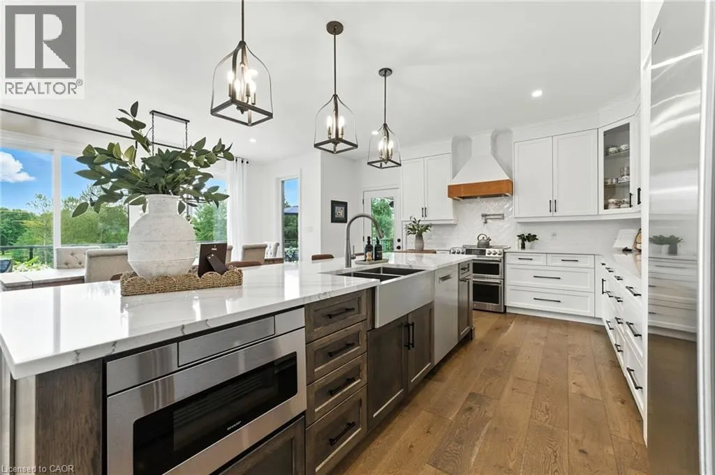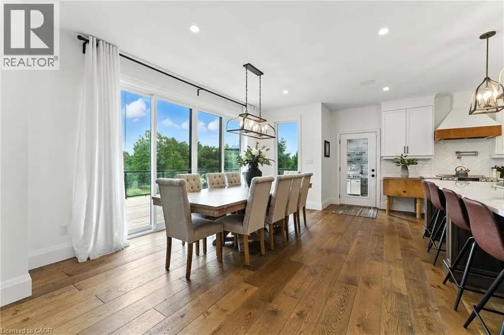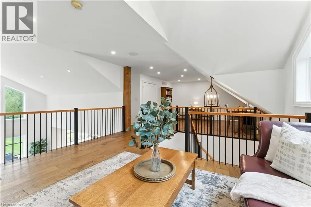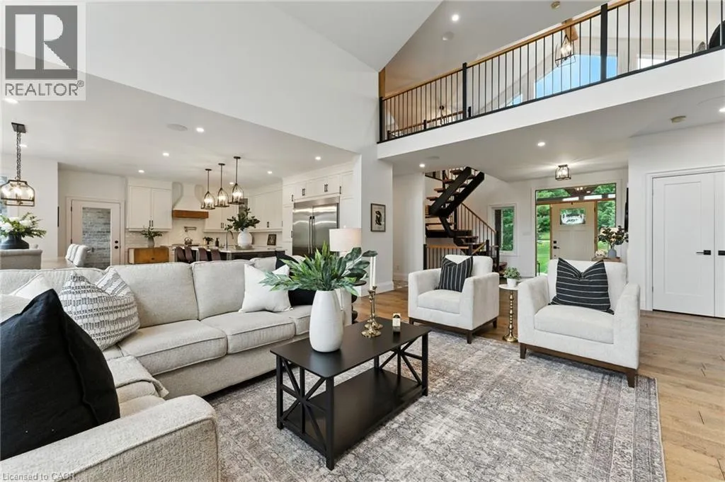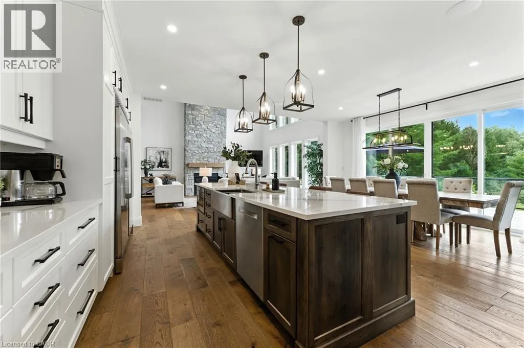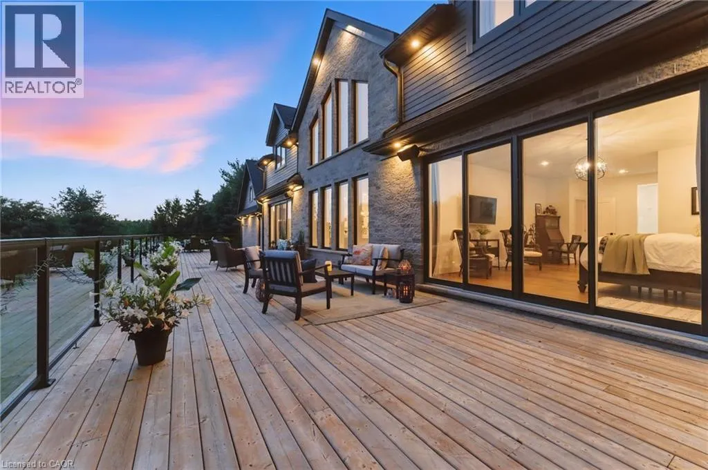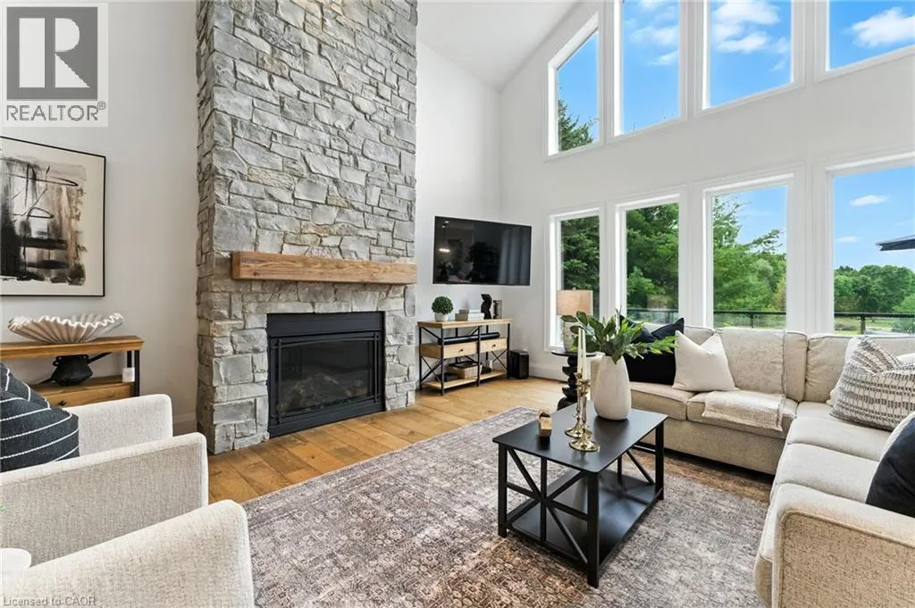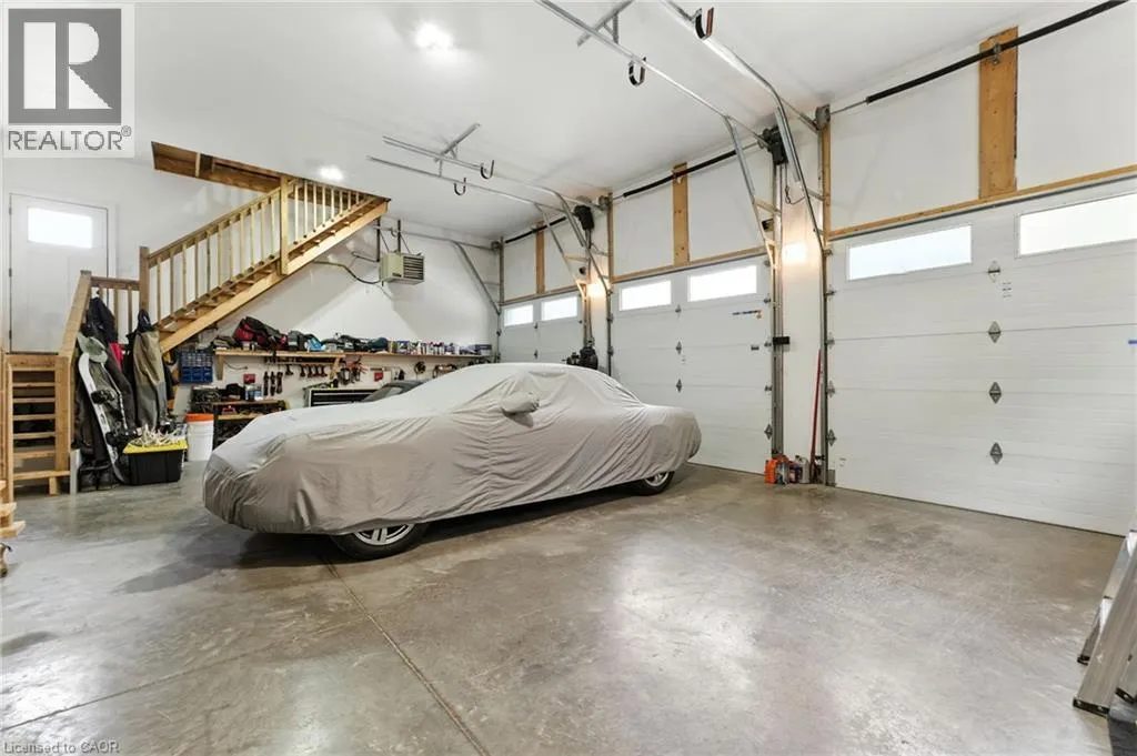 Highway 7 to Side Road 4 Custom-Built Executive Home on 8 Private Acres with Stunning Views â Just 5 Minutes from Historic Elora. Discover the perfect blend of luxury, privacy, and natural beauty in this exceptional custom-built estate, offering over 4,000 sq. ft. of thoughtfully designed finished living space. Set on 8 peaceful acres of scenic countryside, this one-of-a-kind home welcomes you with sweeping views and a true sense of tranquility. Inside, soaring ceilings, oversized windows, and engineered oak flooring fill the home with light and warmth. A handcrafted three-story Douglas Fir staircase adds timeless character, while built-in surround sound brings each space to life. The main floor is designed for connection and comfort, featuring an open-concept layout flowing from the great room to the spacious dining area and a chef-inspired kitchen with a hickory island, Cambria quartz counters, and high-end finishes. A mudroom and laundry area with breezeway access to the garage add daily convenience. The main floor primary suite is a private retreat with a spa-like ensuite including heated floors, a soaker tub, walk-in shower, double vanities, and a large walk-in closet. Upstairs offers two large bedrooms, a well-appointed bathroom, a quiet office, and a cozy reading lounge overlooking the great room and backyard. The bright walk-out lower level features oversized windows, a large bedroom, an inviting rec room, and storage. The fully insulated, heated 3-car garage with 9 ft doors including a loftâideal for a studio or future in-law suite. A separate 18âx33â workshop offers space for tools, toys, or equipment. For added peace of mind, the property is equipped with a whole home automatic generator, ensuring comfort and security in every season. Step outside to enjoy a large back deck, private trails, and a peaceful streamâperfect for nature walks or trail riding. Severance potential offers rare future value without compromising privacy. (id:27476)