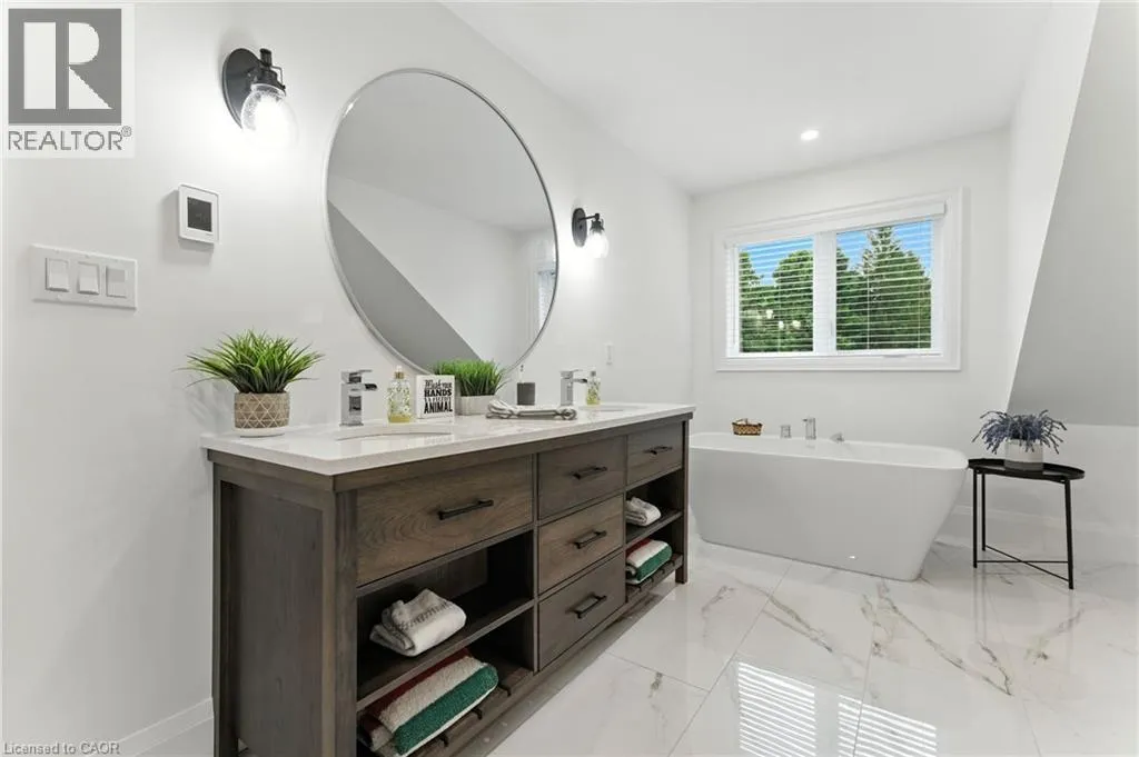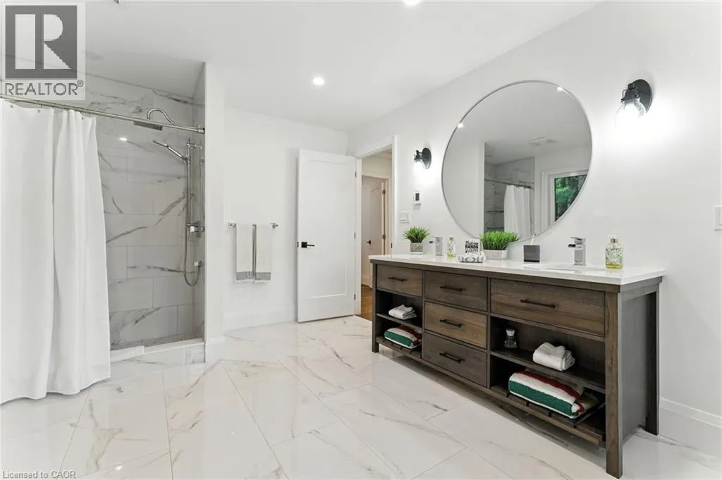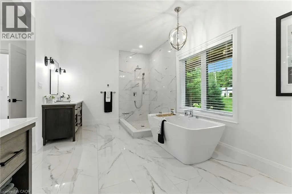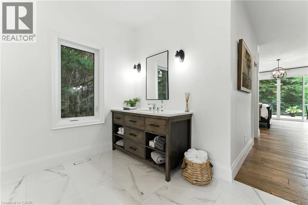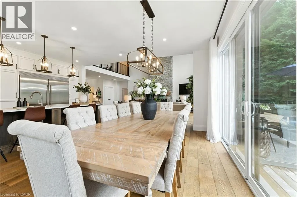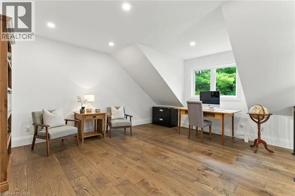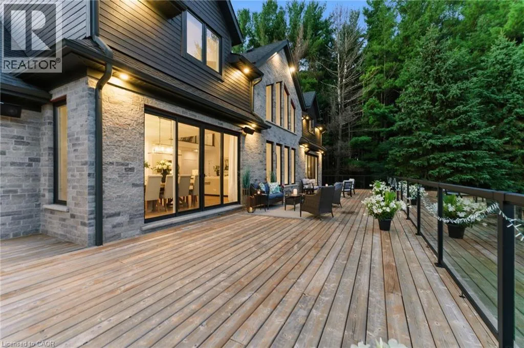 Highway 7 to Side Road 4 Custom-Built Executive Home on 8 Private Acres with Stunning Views â Just 5 Minutes from Historic Elora. Discover the perfect blend of luxury, privacy, and natural beauty in this exceptional custom-built estate, offering over 4,000 sq. ft. of thoughtfully designed finished living space. Set on 8 peaceful acres of scenic countryside, this one-of-a-kind home welcomes you with sweeping views and a true sense of tranquility. Inside, soaring ceilings, oversized windows, and engineered oak flooring fill the home with light and warmth. A handcrafted three-story Douglas Fir staircase adds timeless character, while built-in surround sound brings each space to life. The main floor is designed for connection and comfort, featuring an open-concept layout flowing from the great room to the spacious dining area and a chef-inspired kitchen with a hickory island, Cambria quartz counters, and high-end finishes. A mudroom and laundry area with breezeway access to the garage add daily convenience. The main floor primary suite is a private retreat with a spa-like ensuite including heated floors, a soaker tub, walk-in shower, double vanities, and a large walk-in closet. Upstairs offers two large bedrooms, a well-appointed bathroom, a quiet office, and a cozy reading lounge overlooking the great room and backyard. The bright walk-out lower level features oversized windows, a large bedroom, an inviting rec room, and storage. The fully insulated, heated 3-car garage with 9 ft doors including a loftâideal for a studio or future in-law suite. A separate 18âx33â workshop offers space for tools, toys, or equipment. For added peace of mind, the property is equipped with a whole home automatic generator, ensuring comfort and security in every season. Step outside to enjoy a large back deck, private trails, and a peaceful streamâperfect for nature walks or trail riding. Severance potential offers rare future value without compromising privacy. (id:27476)