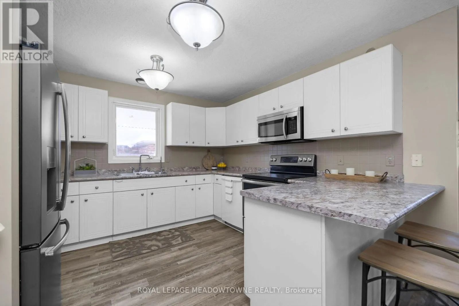 Cross Streets: Water St E / Cutting Dr. ** Directions: Water St E to Cutting Dr Dickenson Crt to the right. Regardless of whether you are young or young at heart, this wonderful home offers far more than a place to live, it offers a truly exceptional lifestyle in Elora. Situated on a quiet, child and pet friendly cul-de-sac, this well-maintained backsplit is within walking distance to Elora's historic downtown, renowned art studios and artisan shops, restaurants, and scenic trails. The home welcomes you with a large covered front porch, ideal for relaxing and greeting guests. A 4+ car driveway leads to a 1.5-car garage with access into the house. The open-concept main floor features durable laminate flooring and an inviting layout designed for both everyday living and entertaining. The upper level offers 2 bedrooms, including a spacious principal bedroom with double-door entry, a walk-in closet, and semi-ensuite access to a 4 piece bathroom with a soaker tub and separate shower. The lower level features a large alternative principal 3rd bedroom with a 3 piece bathroom and a comfortable family room with a walkout to the covered sideyard. The separate side entrance is ideal for a future in-law suite or teen suite or using the lower area for a home-based business uses. The fully fenced backyard provides ample space for children, pets and outdoor entertaining. The part-finished basement awaits the new owner's vision and offers excellent storage, along with additional living space suitable for a recreation room or home office. Recent updates include most windows, the garage and exterior doors, and many appliances. Elora is home to the iconic Elora Gorge, limestone quarry, Gorge Falls, and an extensive network of trails both within and beyond the Gorge Conservation Area. The village remains lively year-round, offering fine and casual dining, cultural events, and attractions such as the Grand River Raceway and Casino. The Seller offers a flexible closing, allowing you to immediately begin enjoying this exceptional Elora lifestyle. (id:27476)