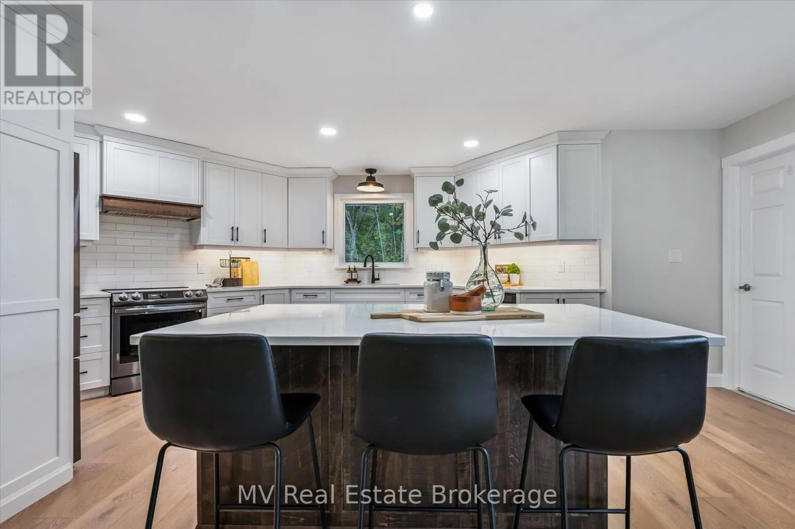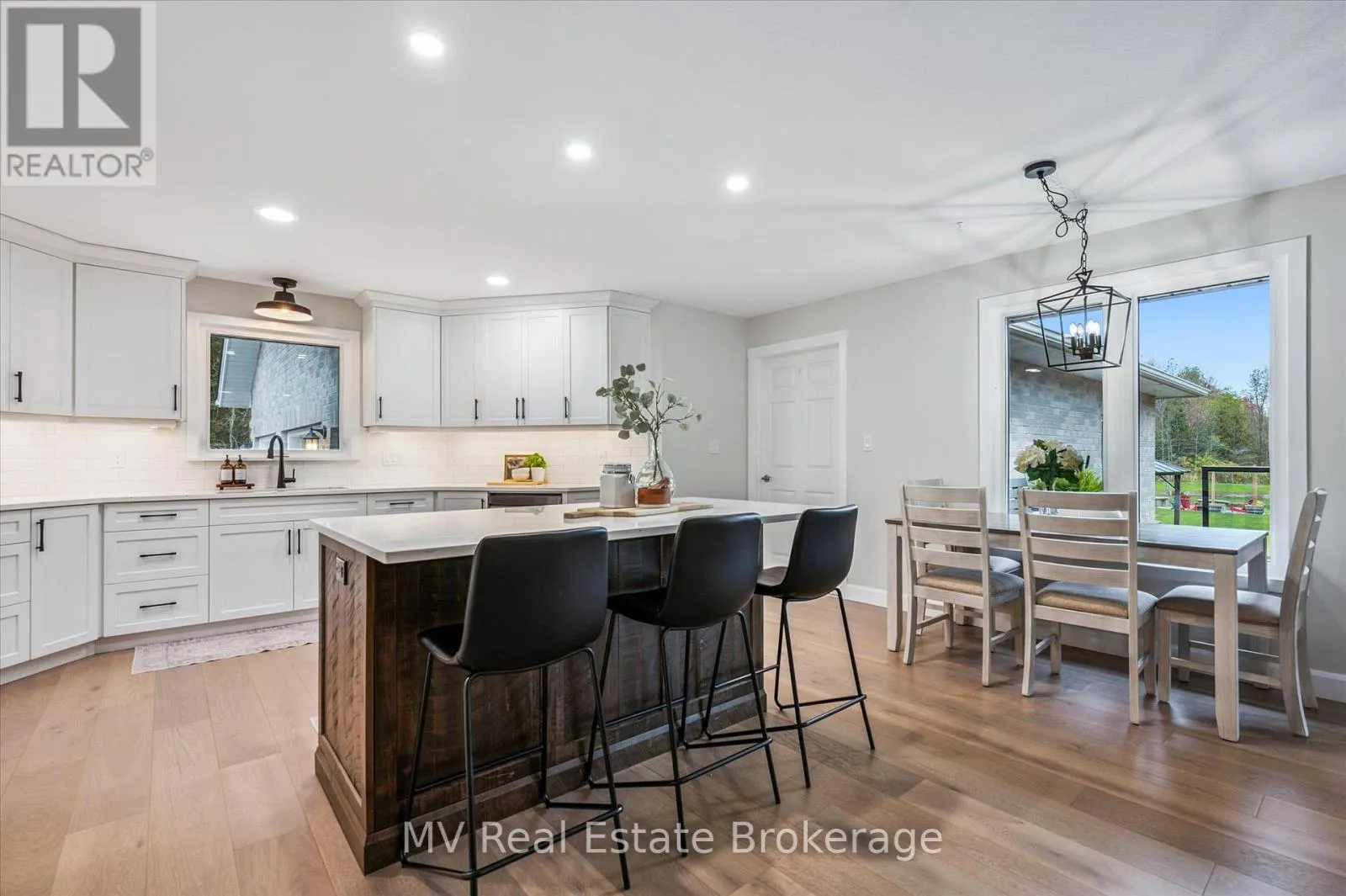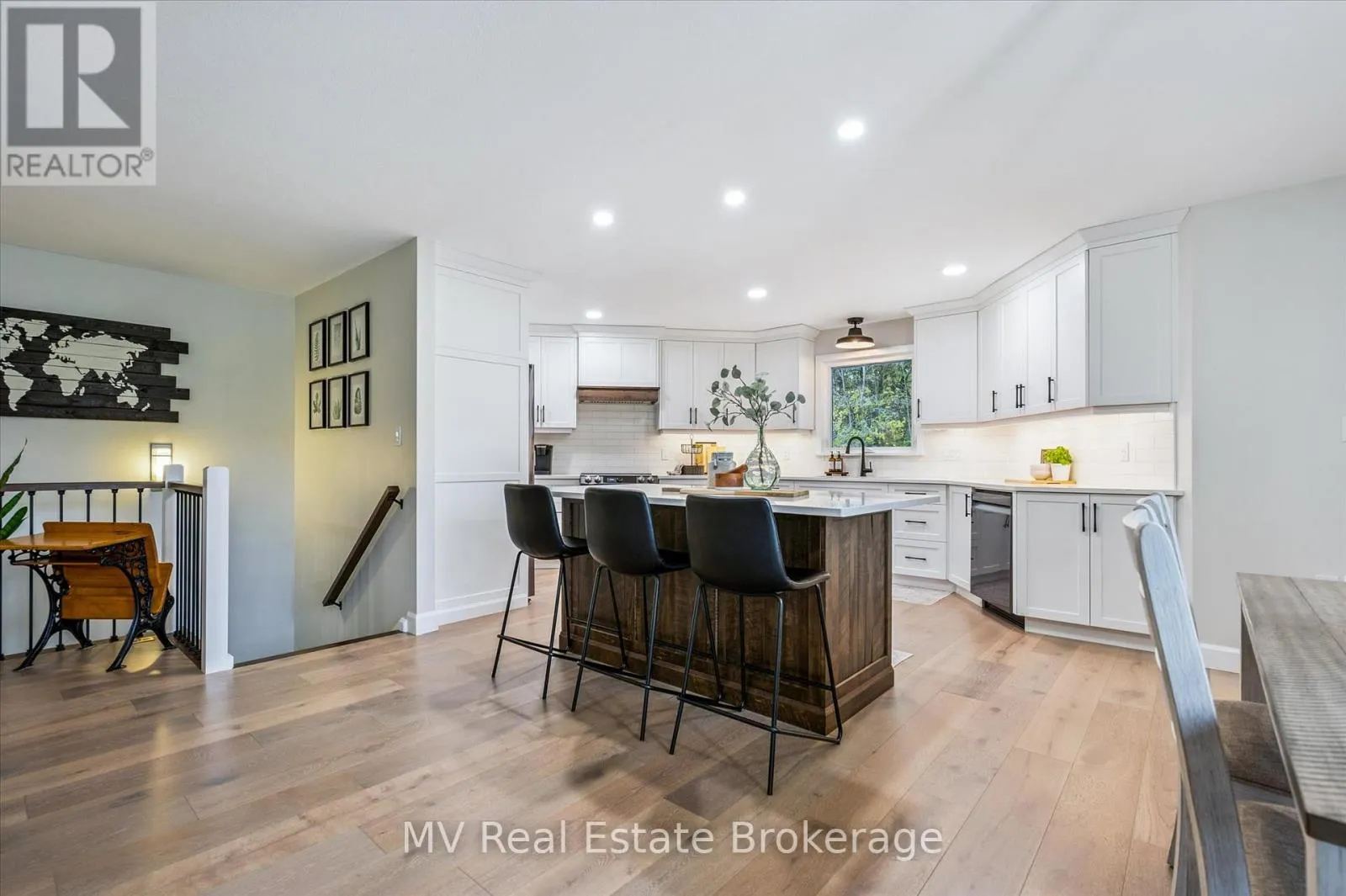Cross Streets: Beatty Line and Peel St (Sideroad 17). ** Directions: Turn south on Beatty Line N off of 17. Tucked among mature trees, trails, and a spring-fed pond, this beautifully renovated bungalow on 3.35 acres offers rare privacy and exceptional living just minutes from Fergus and Elora. Thoughtfully updated throughout-with a custom Mennonite kitchen (2021), wide-plank flooring (2021), newer windows and doors (2022), and refreshed bathrooms (2024). The 2200 sq ft main level is bright, inviting, and designed for effortless everyday living. Four bedrooms and 3.5 baths provide generous space, while the walk-out lower level adds a cozy woodstove, games area, custom bar, and a separate living space with its own entrance-ideal for guests, extended family, or multi-generational needs. Outside, enjoy a multi-level deck, flagstone firepit (2023), and private dock overlooking the spring-fed pond. The oversized 3+ car garage with workshop and direct basement access is a standout for hobbyists or those needing extra storage. With fibre optic internet, major mechanical updates already completed, and an accessory apartment offering flexibility and value, this property delivers a rare blend of nature, space, and modern comfort. A truly exceptional offering on sought-after Beatty Line. (id:27476)