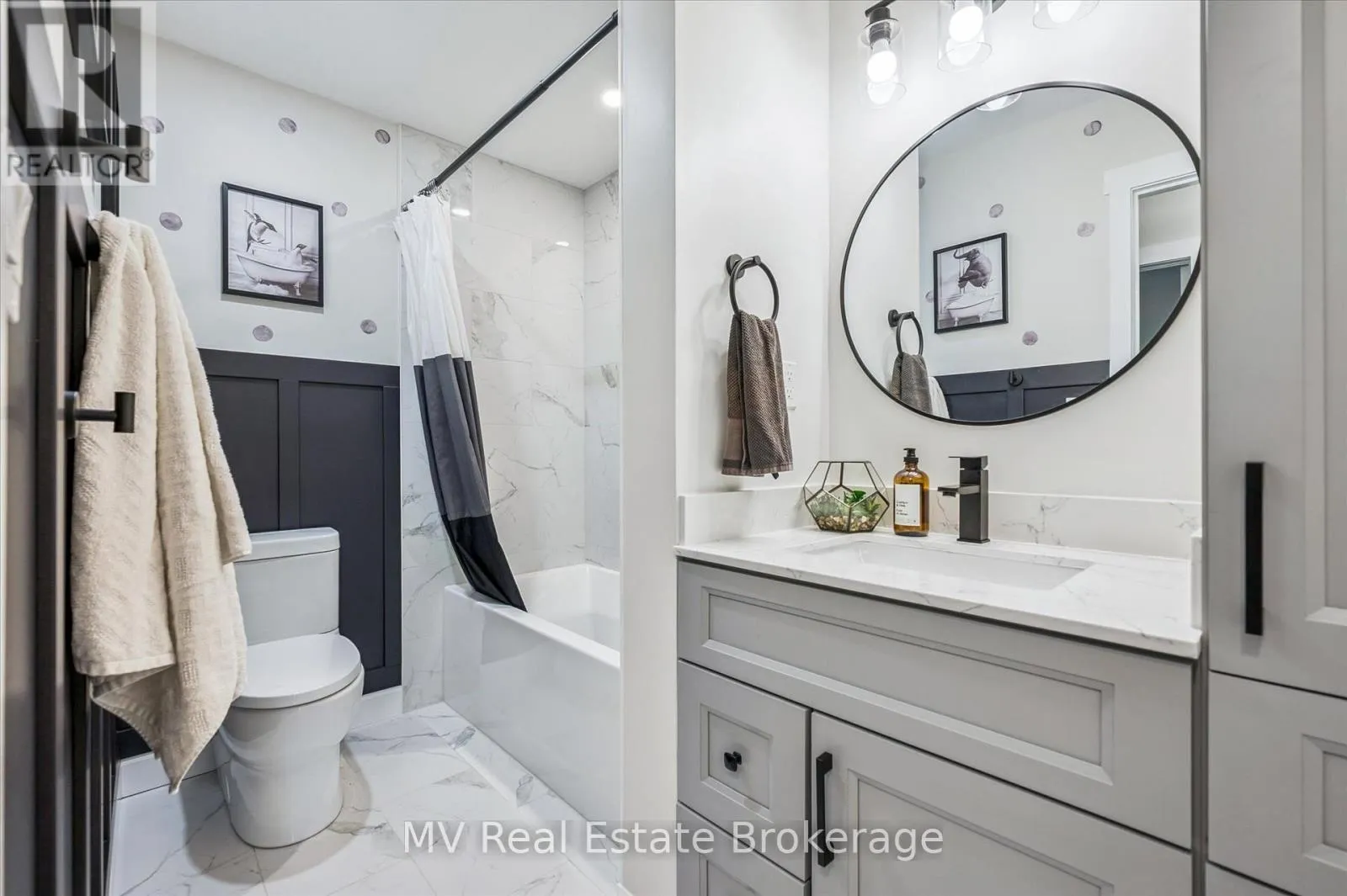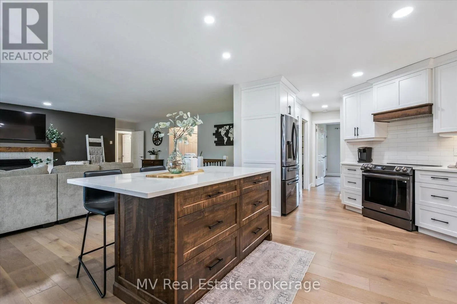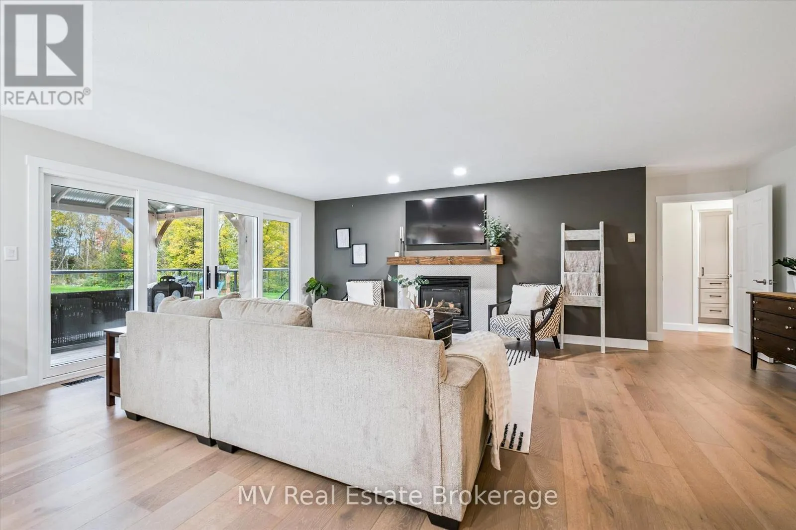 Cross Streets: Beatty Line and Peel St (Sideroad 17). ** Directions: Turn south on Beatty Line N off of 17. Tucked among mature trees, trails, and a spring-fed pond, this beautifully renovated bungalow on 3.35 acres offers rare privacy and exceptional living just minutes from Fergus and Elora. Thoughtfully updated throughout-with a custom Mennonite kitchen (2021), wide-plank flooring (2021), newer windows and doors (2022), and refreshed bathrooms (2024). The 2200 sq ft main level is bright, inviting, and designed for effortless everyday living. Four bedrooms and 3.5 baths provide generous space, while the walk-out lower level adds a cozy woodstove, games area, custom bar, and a separate living space with its own entrance-ideal for guests, extended family, or multi-generational needs. Outside, enjoy a multi-level deck, flagstone firepit (2023), and private dock overlooking the spring-fed pond. The oversized 3+ car garage with workshop and direct basement access is a standout for hobbyists or those needing extra storage. With fibre optic internet, major mechanical updates already completed, and an accessory apartment offering flexibility and value, this property delivers a rare blend of nature, space, and modern comfort. A truly exceptional offering on sought-after Beatty Line. (id:27476)