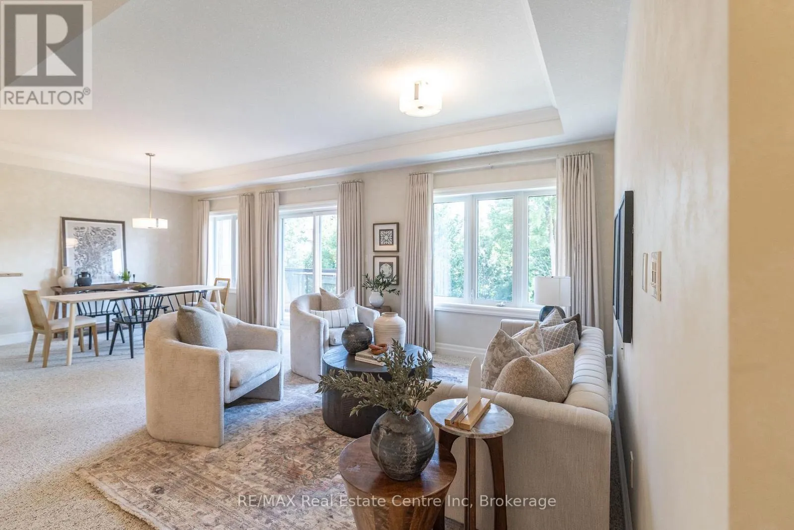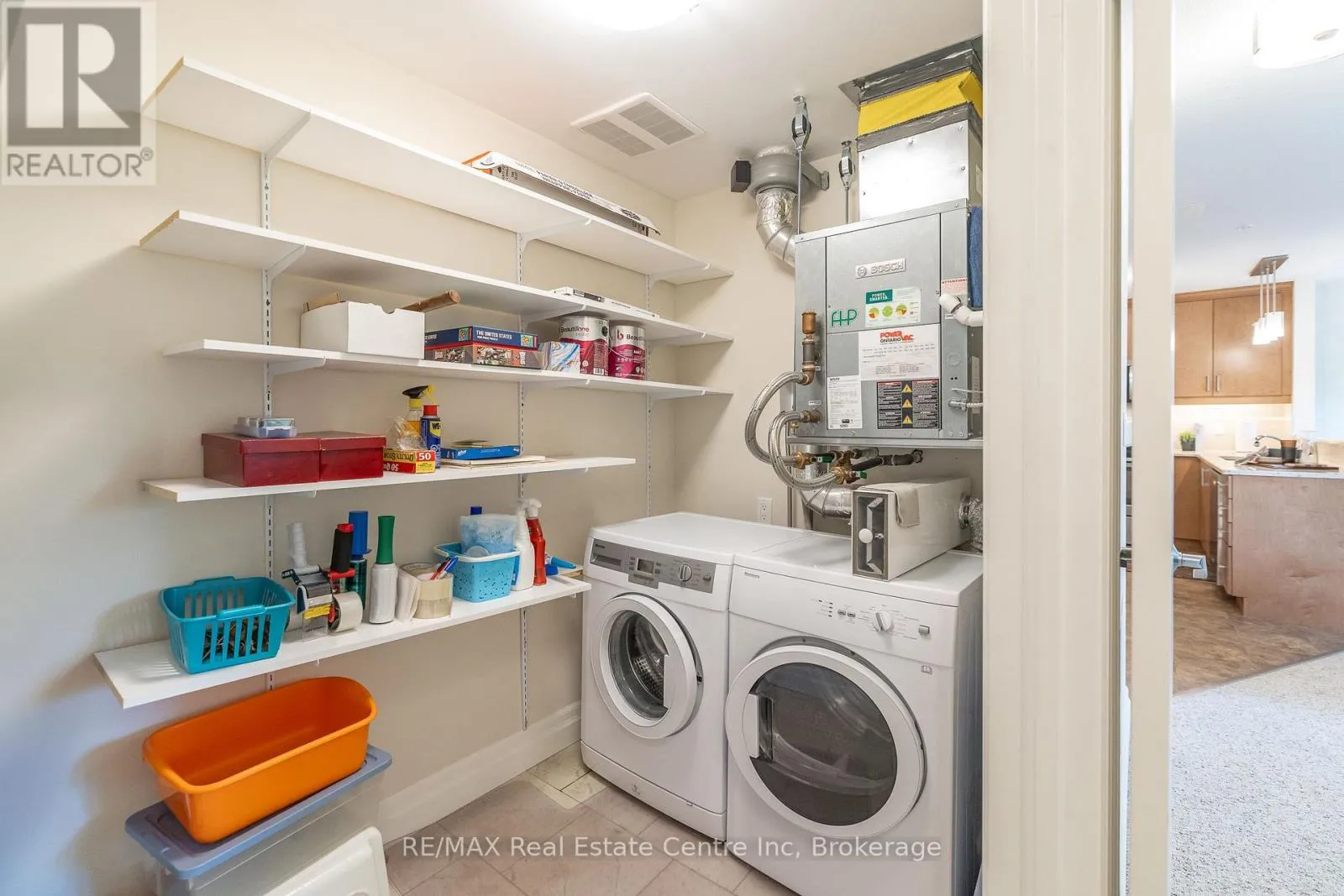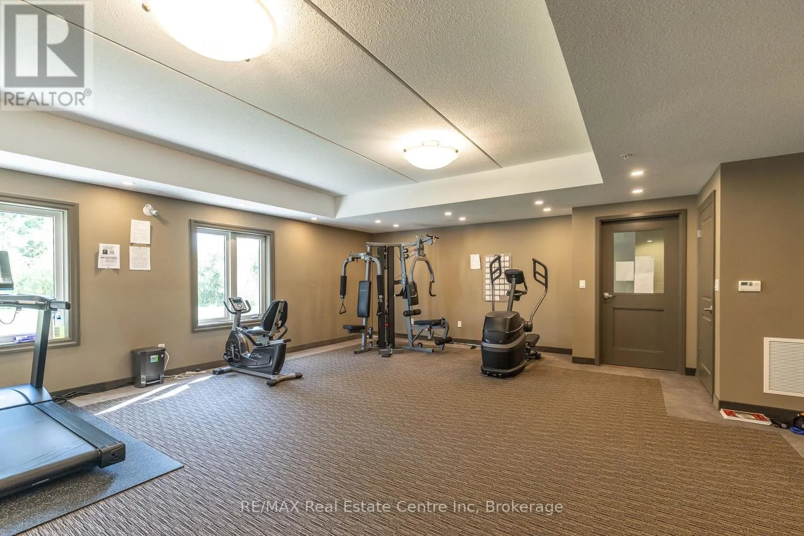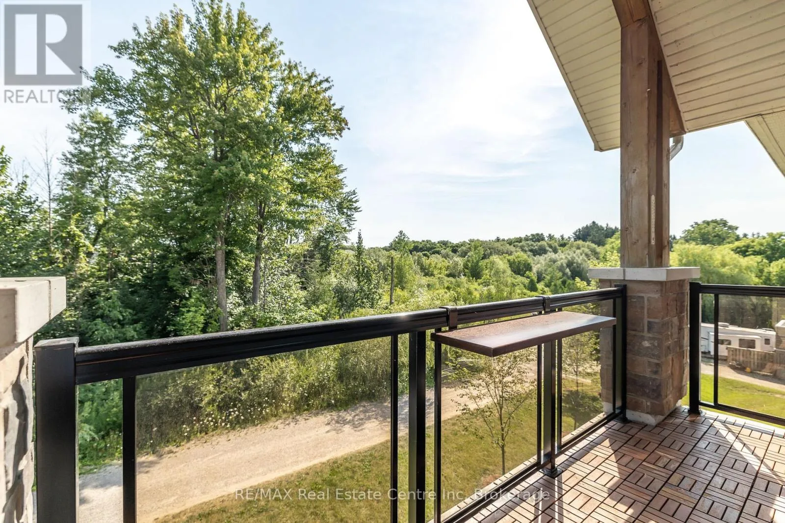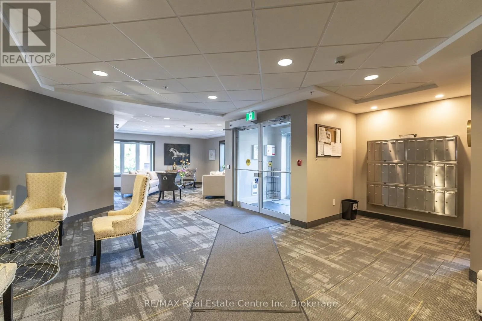 Cross Streets: Geddes Street. ** Directions: Geddes to Stumpf Street. Welcome to Unit 310 at 23 Stumpf Street in Elora-a beautifully maintained two-bedroom, two-bathroom condo set in a peaceful, private location with tranquil views of surrounding greenspace. Situated in one of Elora's most desirable buildings, this residence offers an ideal blend of comfort, lifestyle, and convenience. The thoughtfully designed open-concept layout is perfect for both daily living and hosting. The contemporary kitchen stands out with cork flooring, quartz countertops, stainless steel appliances, and a practical breakfast bar, flowing effortlessly into the dining space and bright living area. From here, sliding doors lead to your own patio, where you can unwind while overlooking the natural setting. The spacious primary bedroom features a private ensuite, while the second bedroom offers flexible use as a guest room, home office, or a combination of both. Additional highlights include in-suite laundry, ample storage, and the added value of an underground parking space and locker. Residents have access to excellent amenities, including a large party room and a fully equipped fitness centre-ideal for entertaining or maintaining an active lifestyle. Just steps from downtown Elora, with nearby trails, parks, and the Grand River across the street, this move-in-ready condo delivers the best of village living surrounded by nature. Whether you're downsizing, investing, or looking for a quiet place to settle into, this property offers exceptional value and lifestyle appeal. (id:27476)