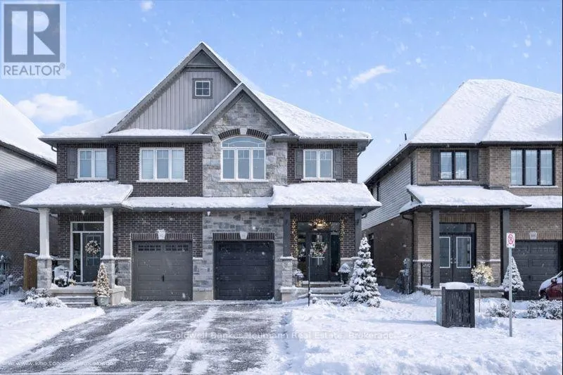 Cutting X Water. Cutting X Murray Welcome to 84 Cutting Drive: an upgraded semi-detached home just steps from the Cataract Trail and walking distance to downtown Elora's historic shops and restaurants. Built by award-winning Finoro Homes, this property's main floor features 9ft+ crown-moulding ceilings, carpet-free flooring, upgraded lighting, granite countertops, and a custom-built-in fireplace. Additional features include upgraded exterior lighting, hardwired security cameras, upgraded checkered garage flooring, a reverse osmosis system, and direct garage access from the main floor. Sliding doors lead to a spacious walkout deck overlooking a fully-fenced, landscaped backyard with low-maintenance turf. Upstairs offers an impressive primary suite with a cathedral ceiling, walk-in closet and ensuite, plus two additional bedrooms, a guest bath, and upper-level laundry. The open unfinished lower level offers great potential, featuring an existing rough-in ready for a future basement apartment or simply additional finished space. Only minutes to downtown Elora and a 7-minute drive from Fergus, this home is an excellent turn-key opportunity for first-time buyers or families seeking a newer build in a beautiful neighbourhood. (id:27476)